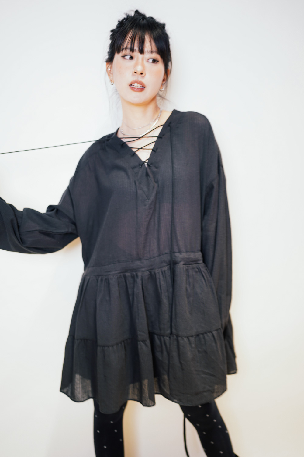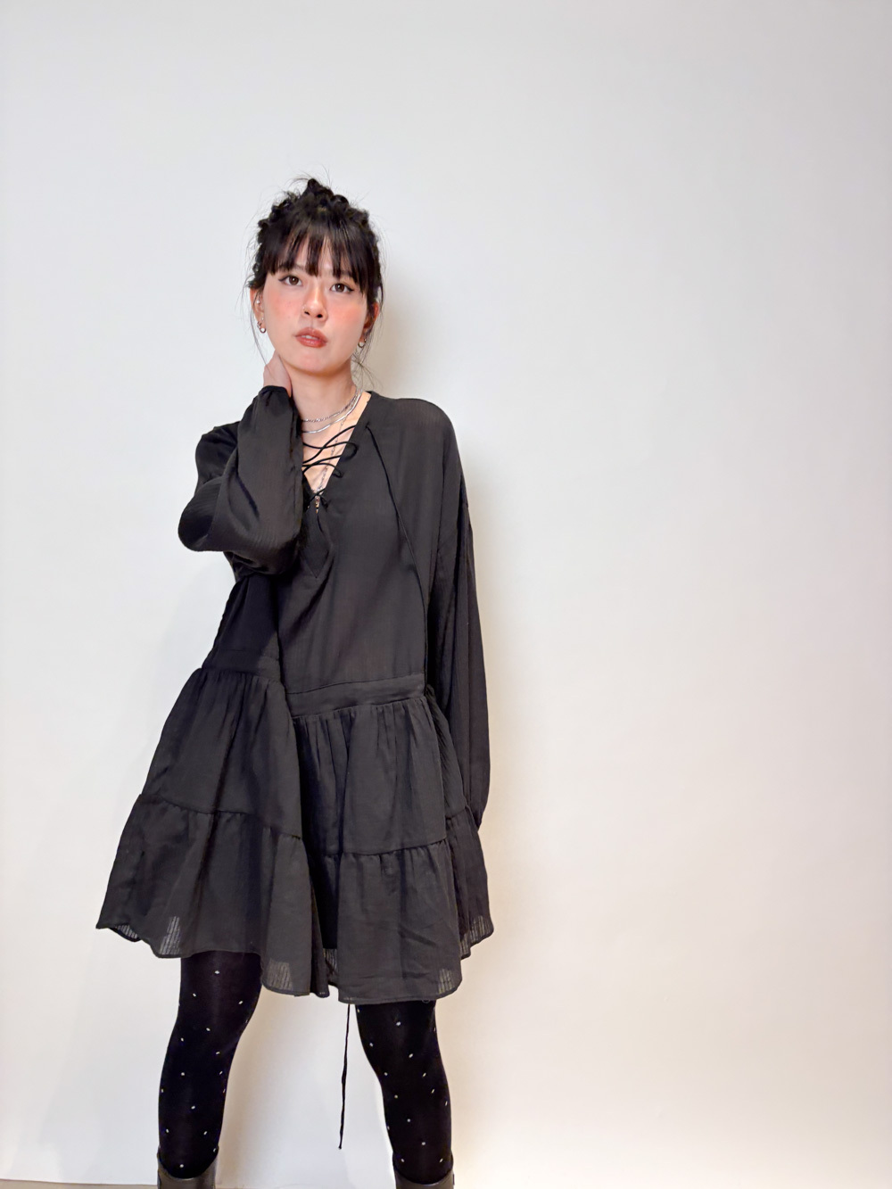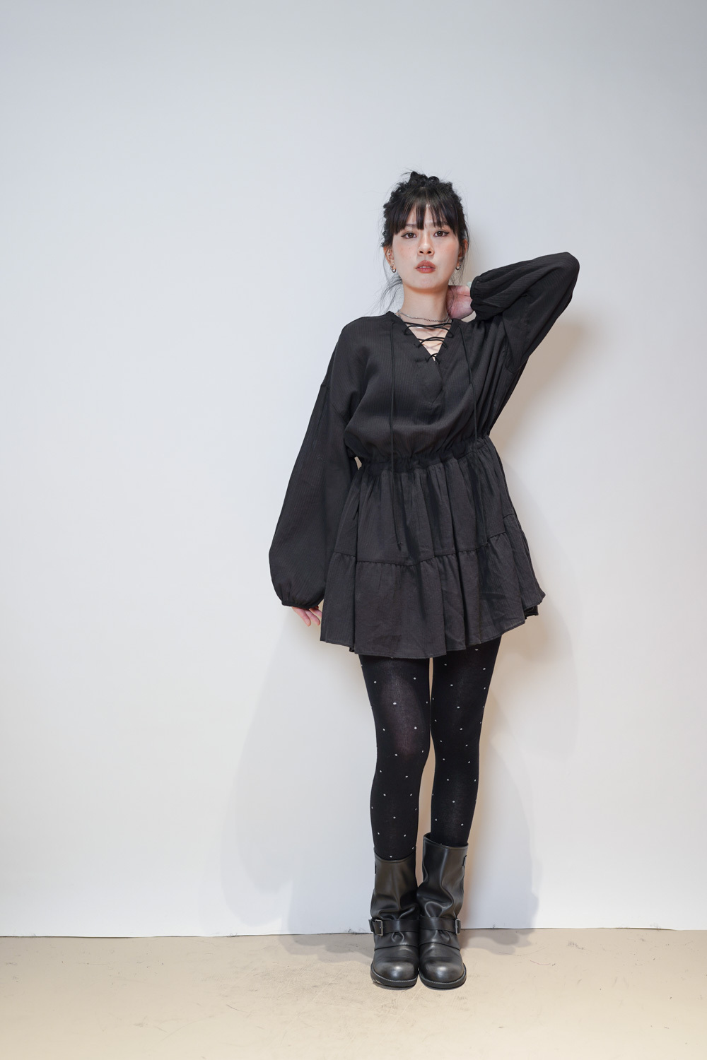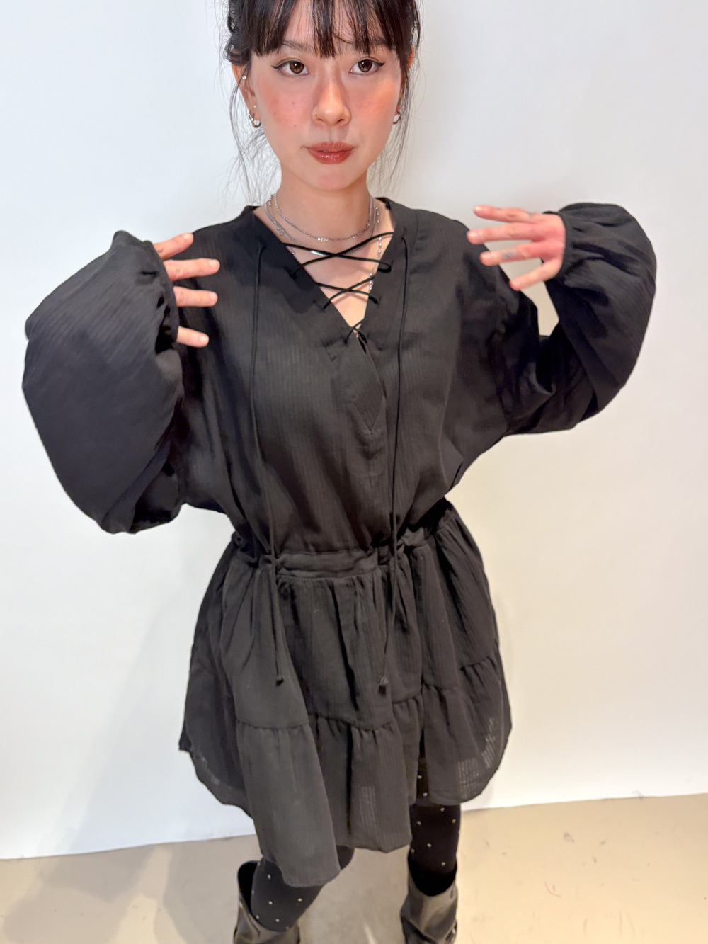 Happy price~ cross string boho dress (IVORY/ BLACK)