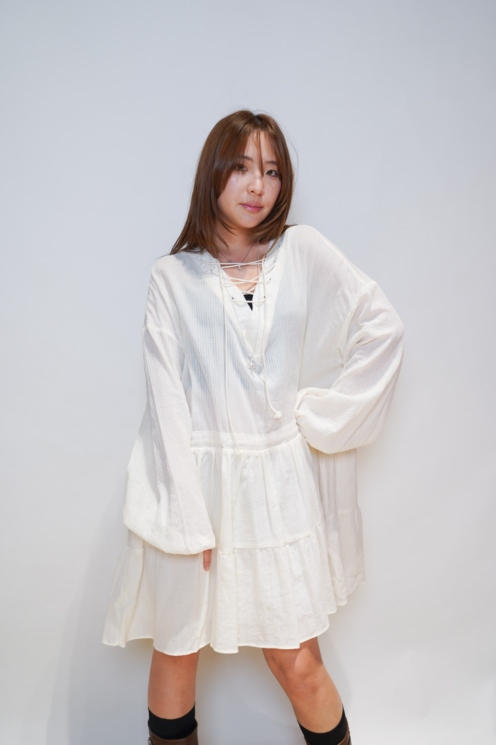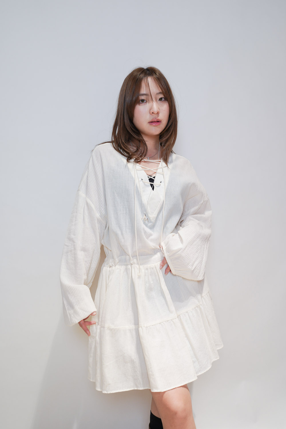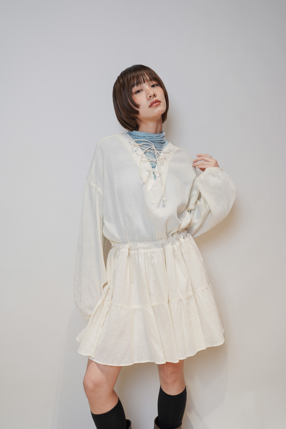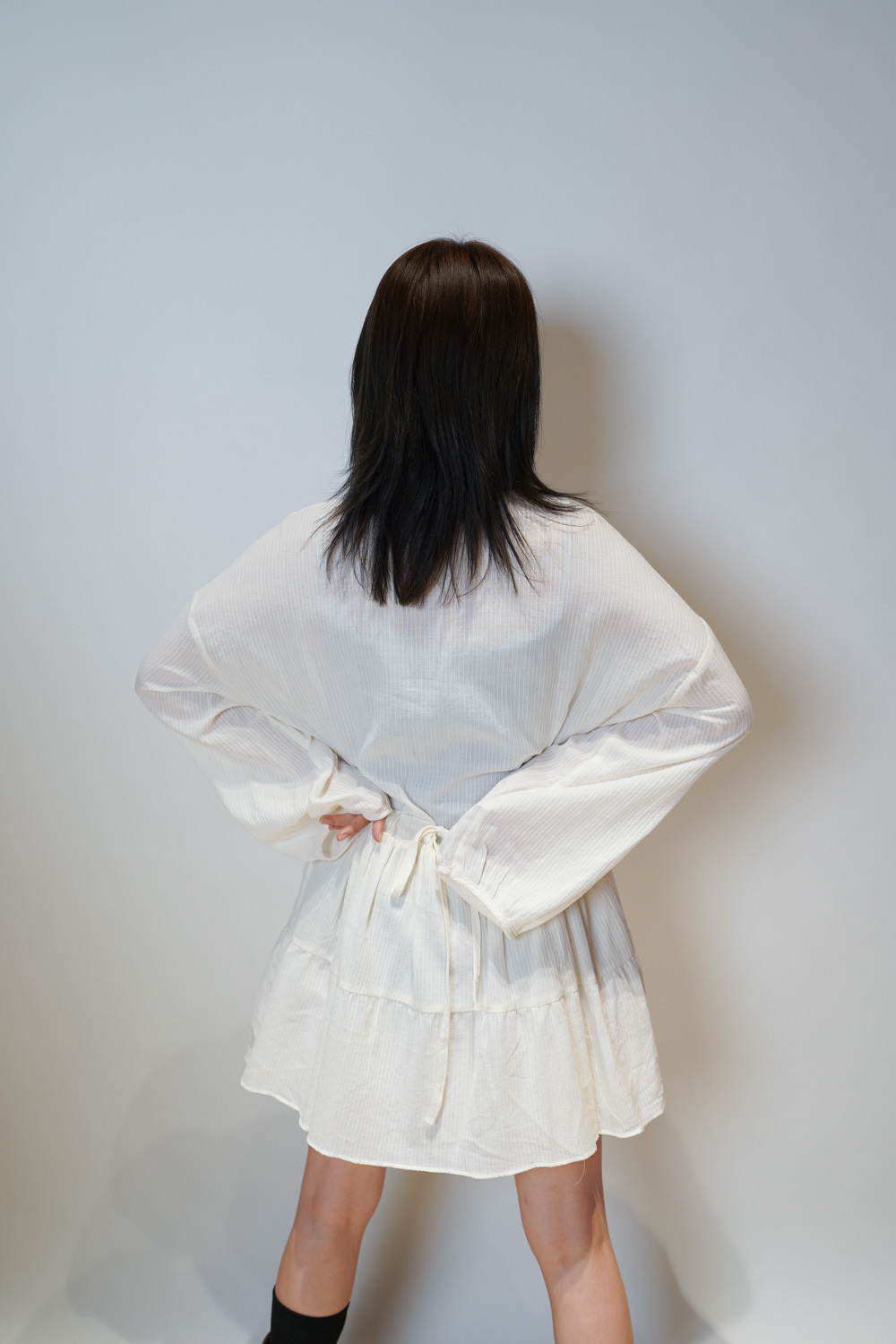 彈性:低 / 透膚程度:透 / 內里:下身有 / 口袋:沒有