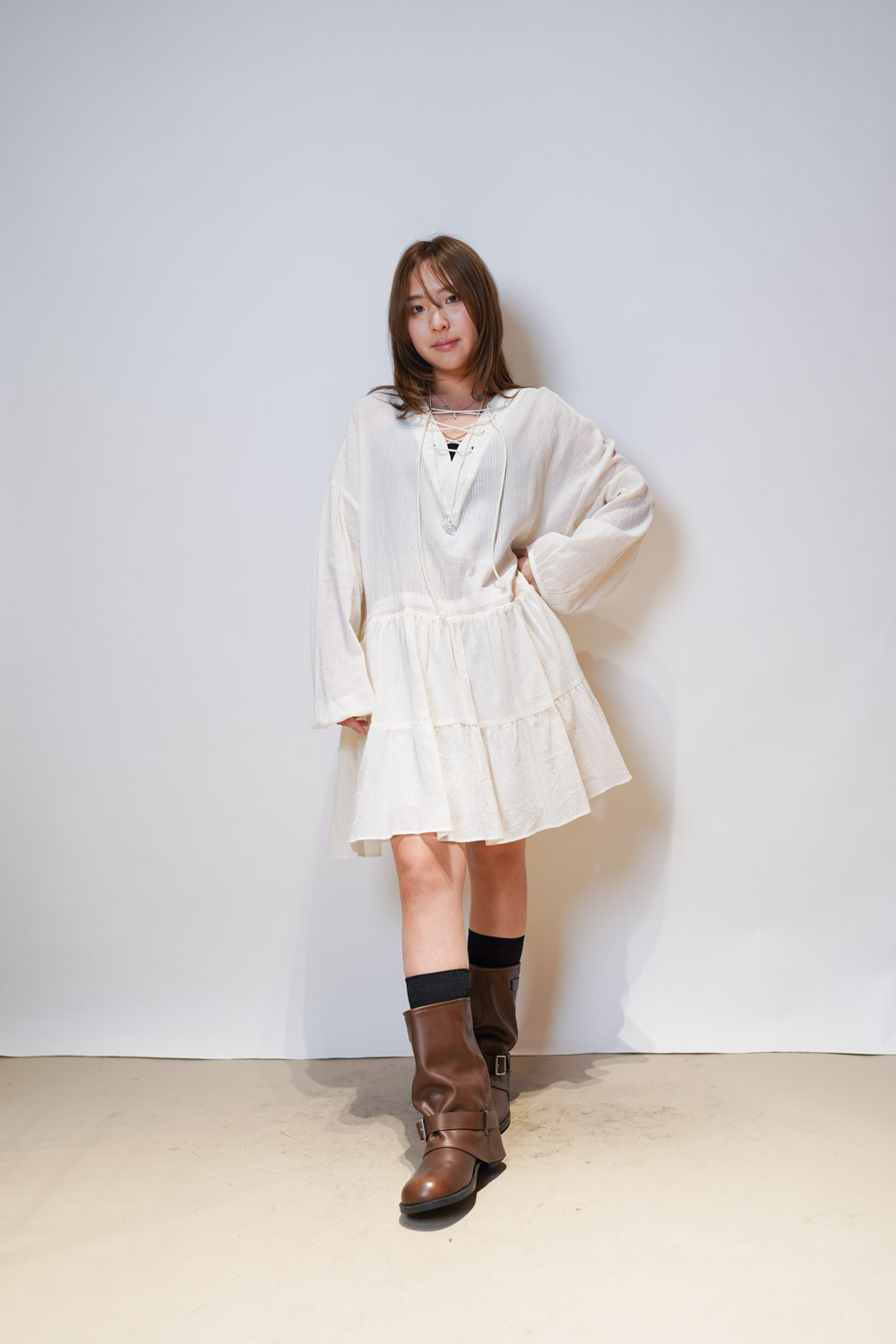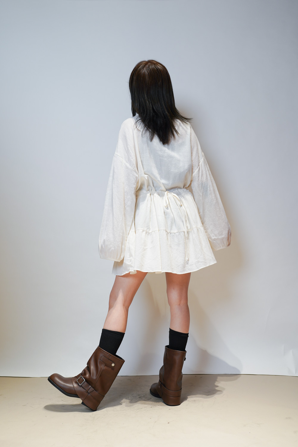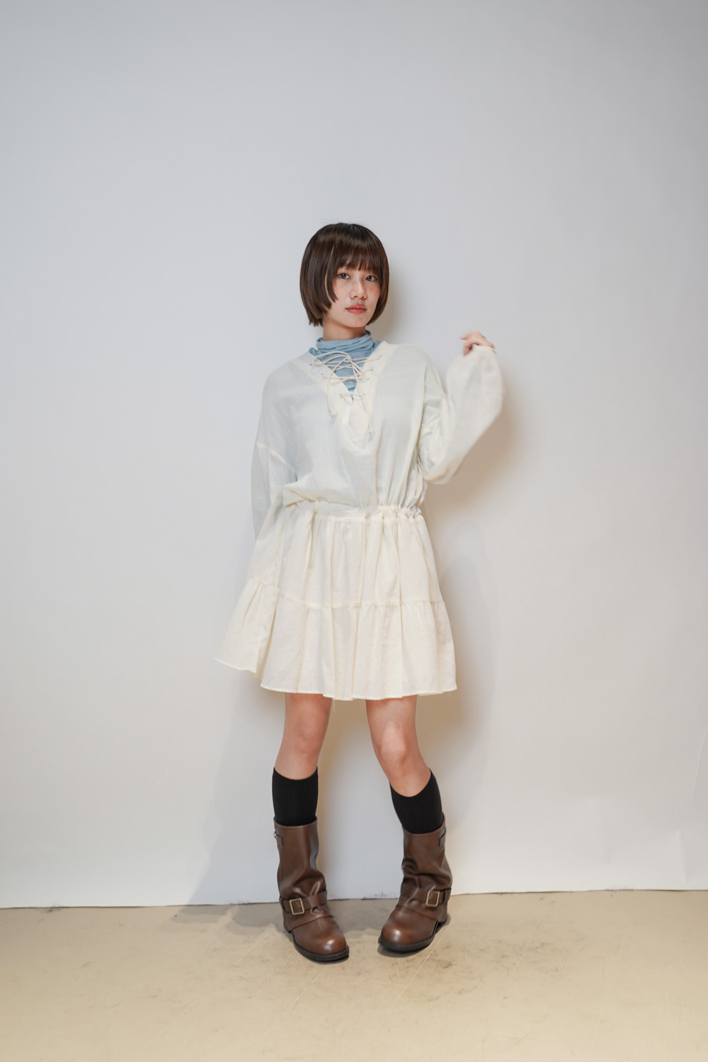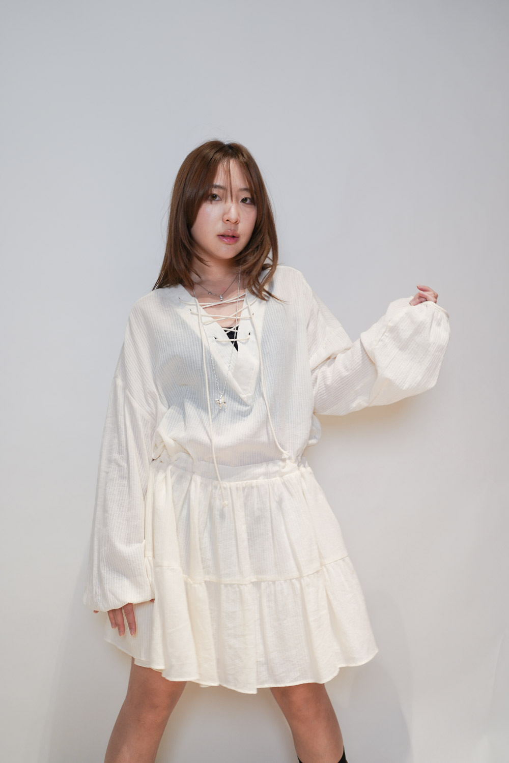 彈性:低 / 透膚程度:透 / 內里:下身有 / 口袋:沒有