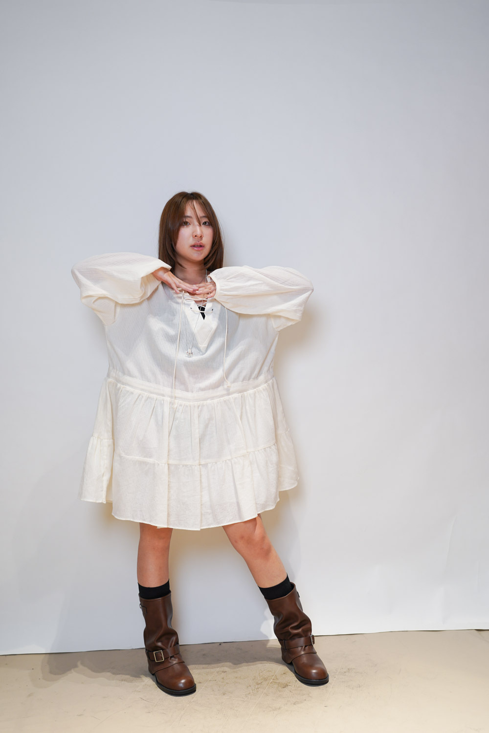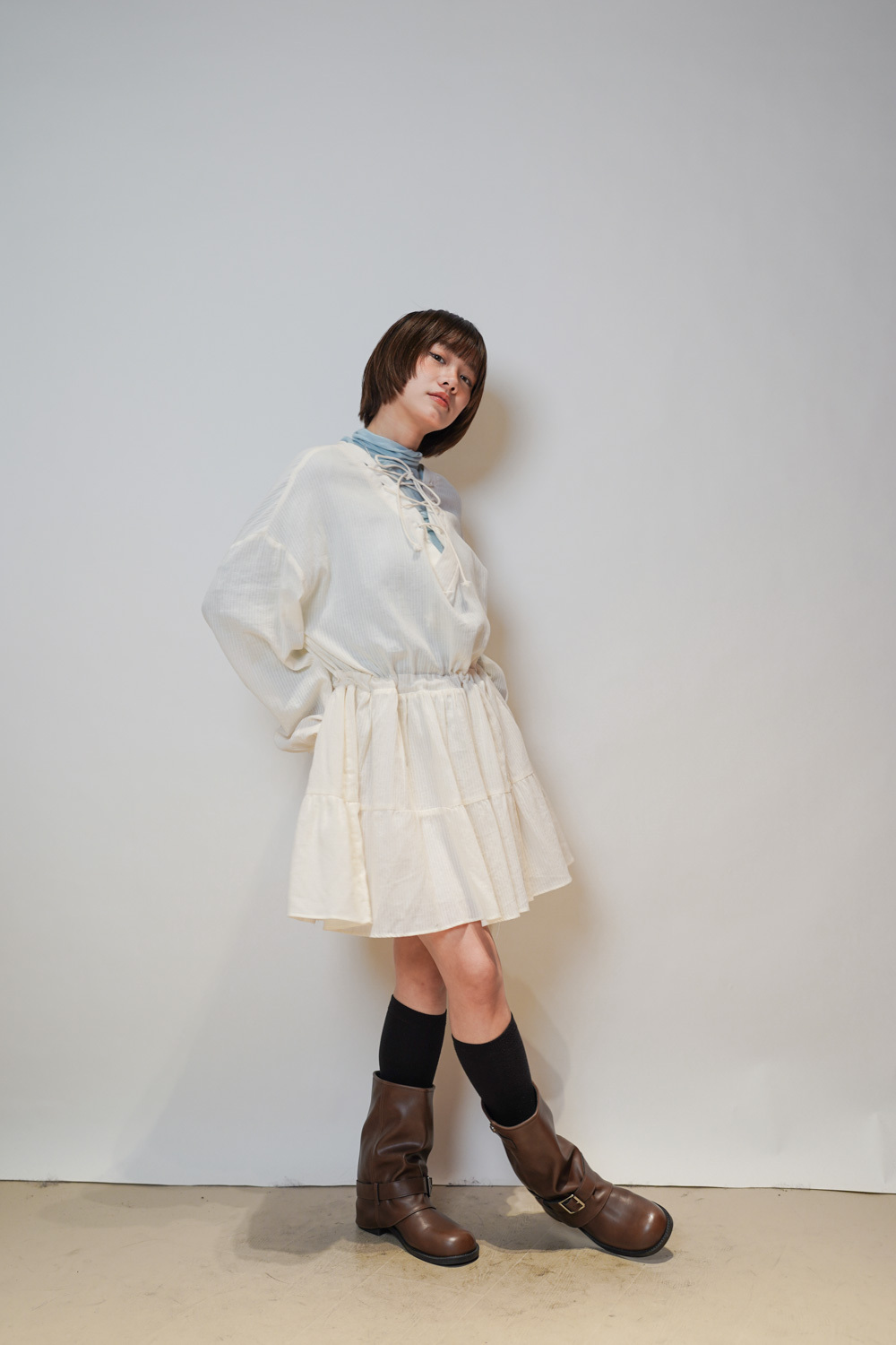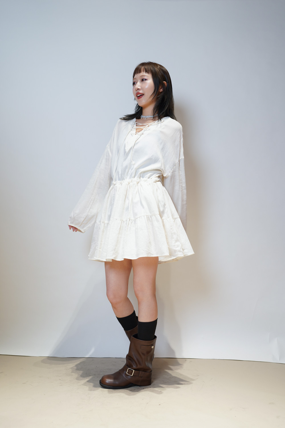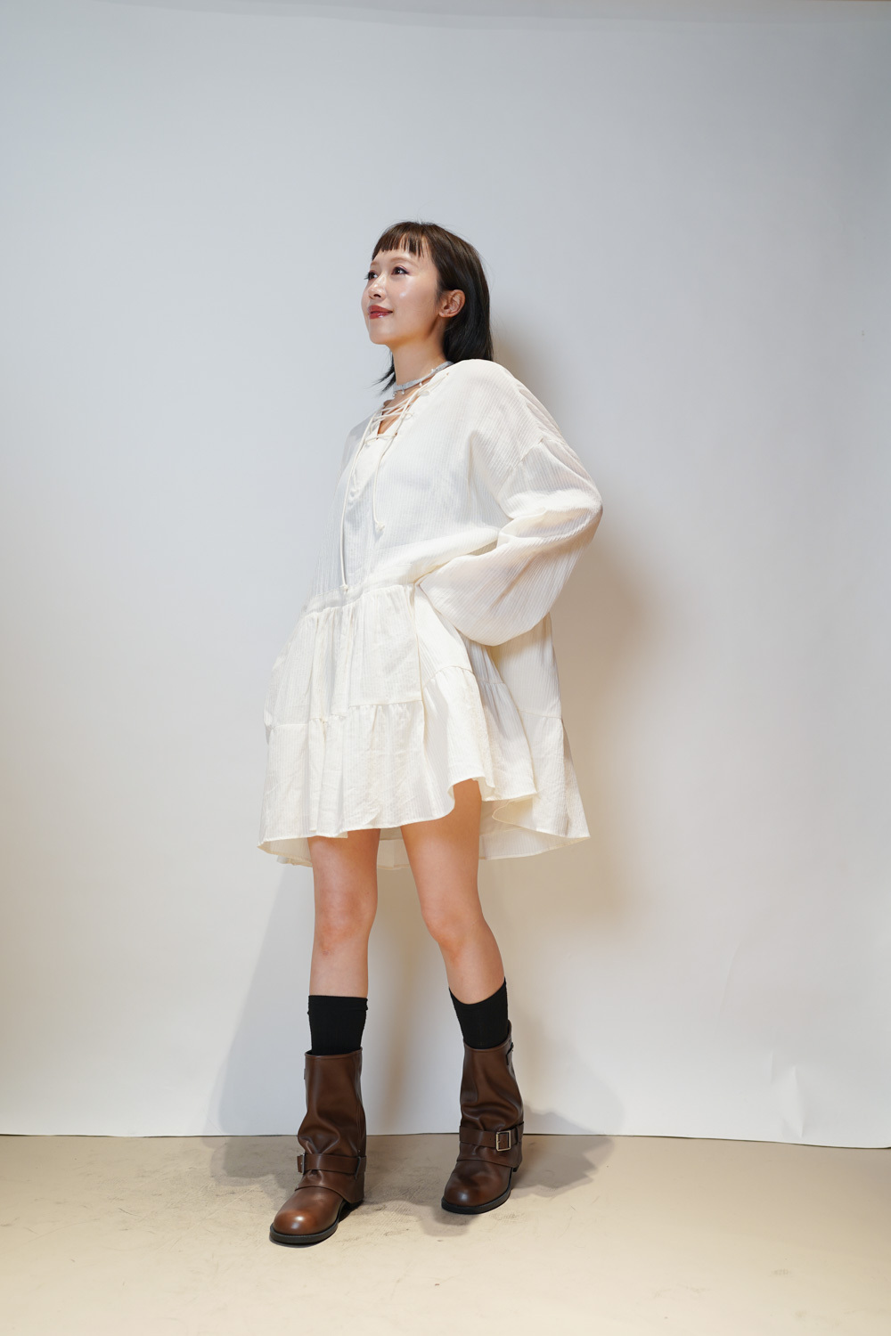 彈性:低 / 透膚程度:透 / 內里:下身有 / 口袋:沒有