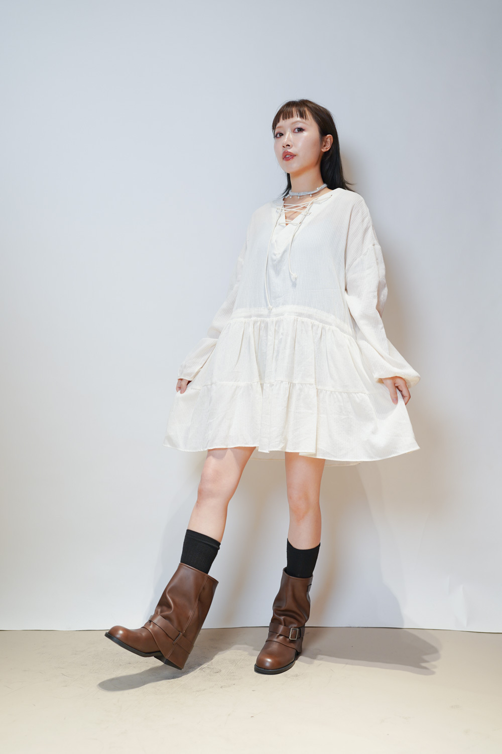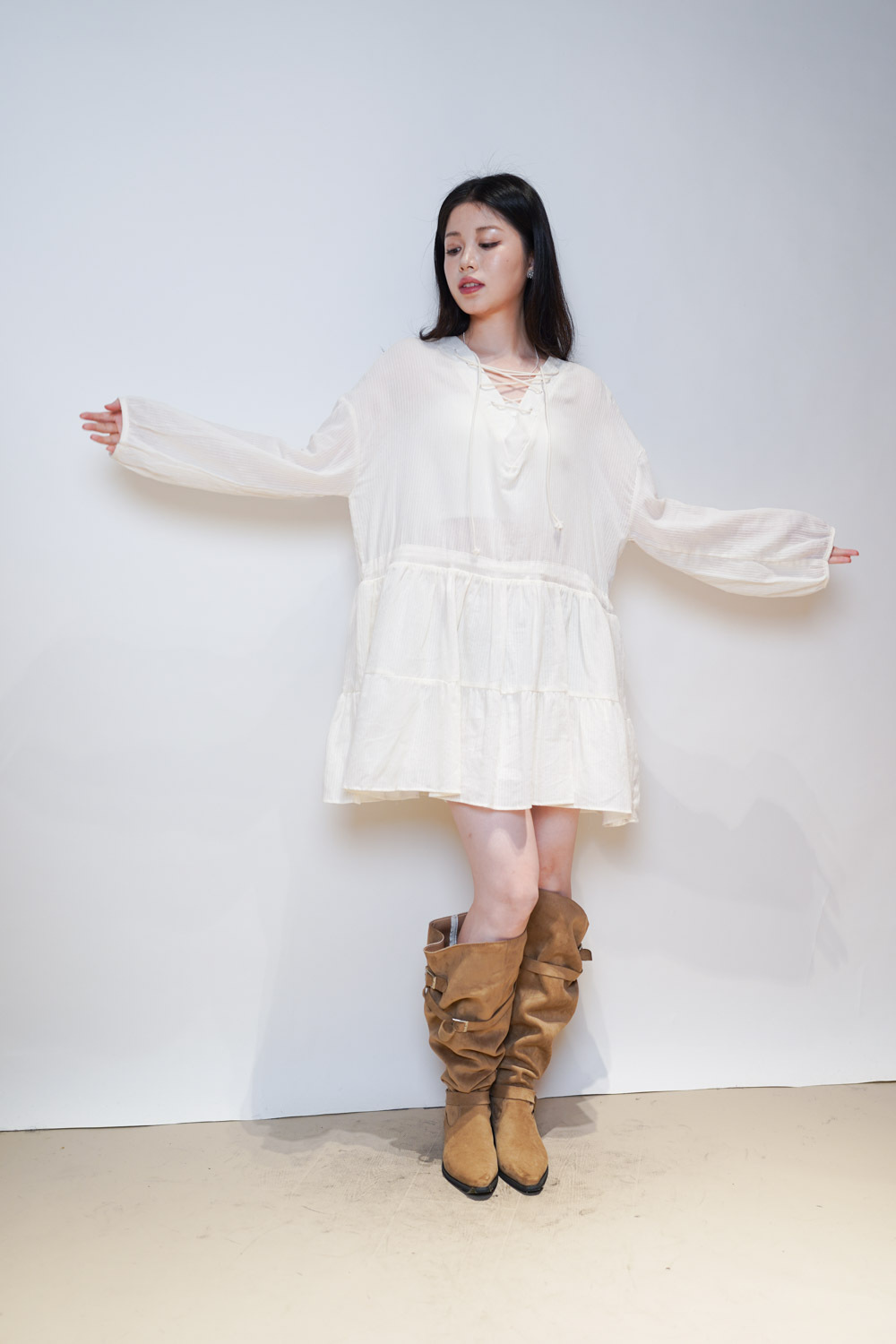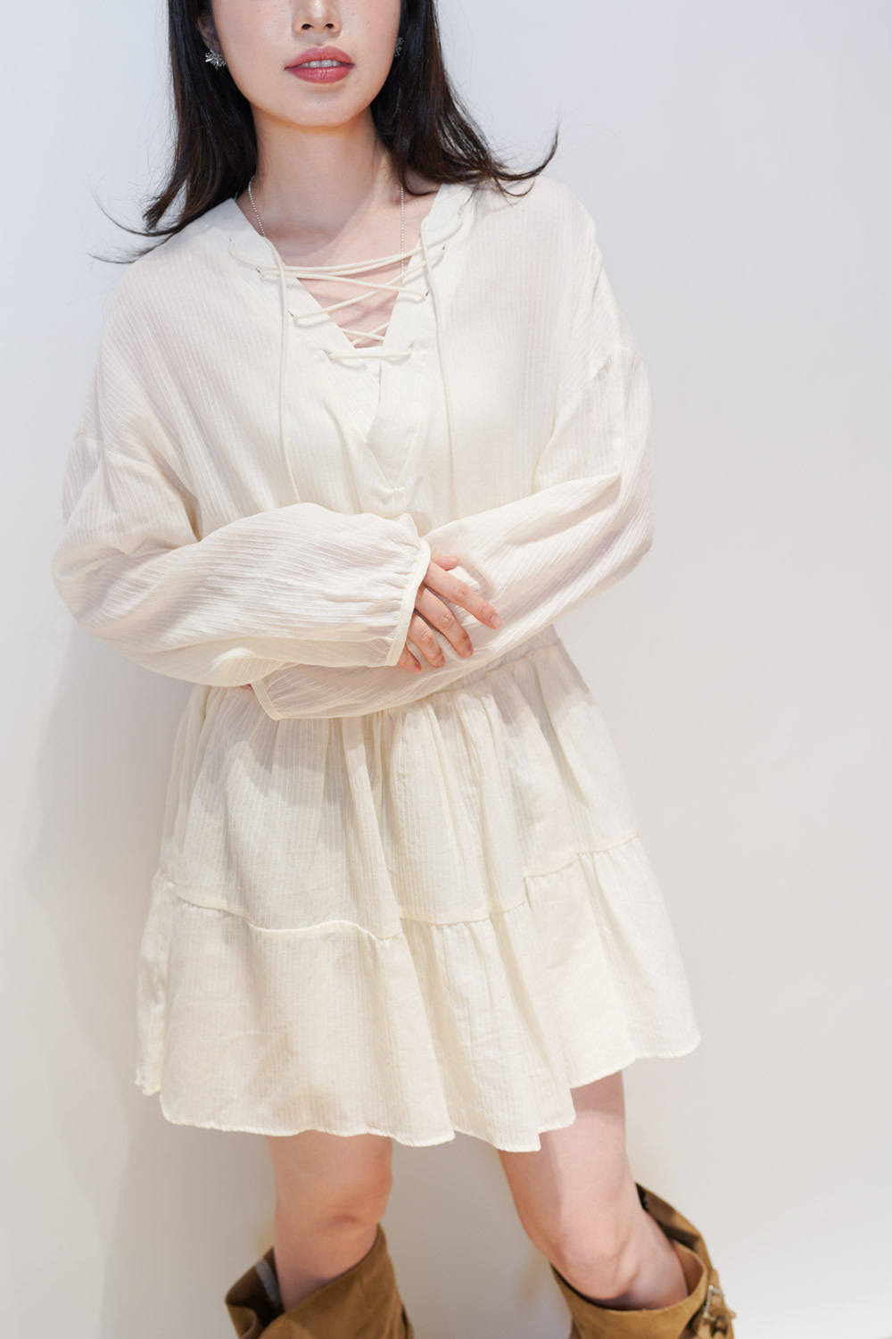 Happy price~ cross string boho dress (IVORY/ BLACK)