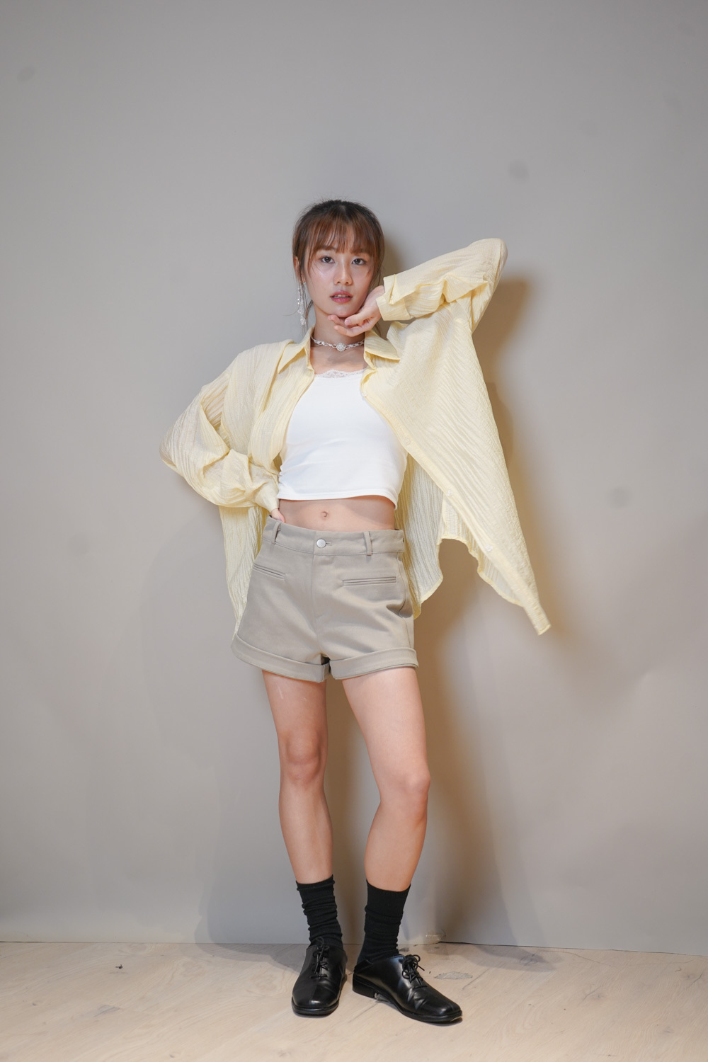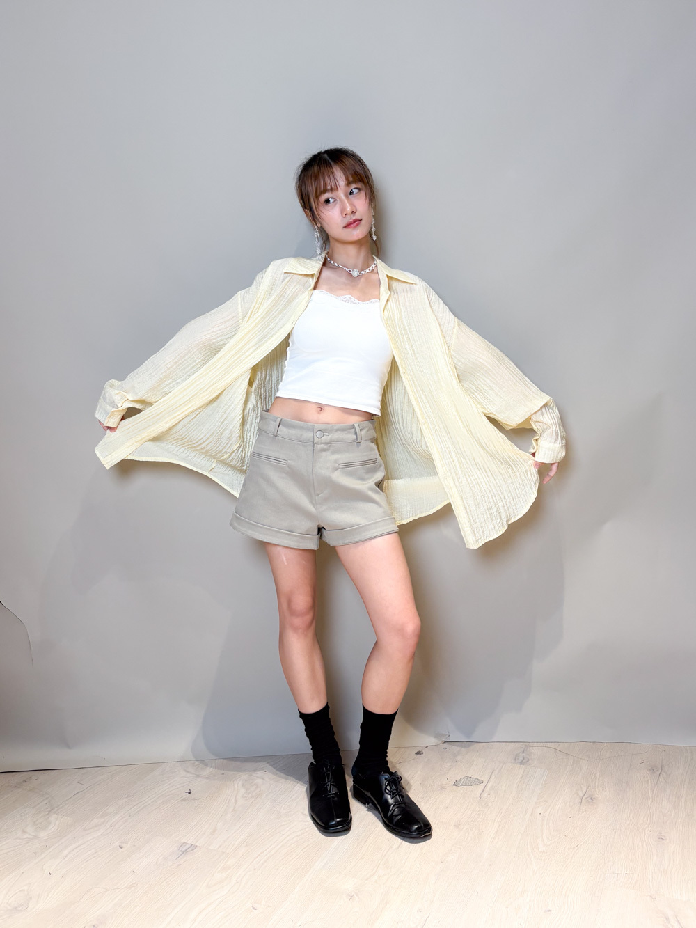 Happy price~ elastic jungle roll up shorts (WHITE / BEIGE)- (S/M)