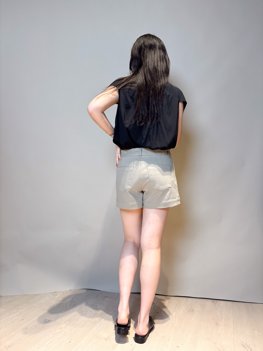 S: Waist: 70cm (28”) / Hip: 96cm (38”) / Rise: 26cm / Length: 31cm / Thigh: 55cm / Hem: 56cm