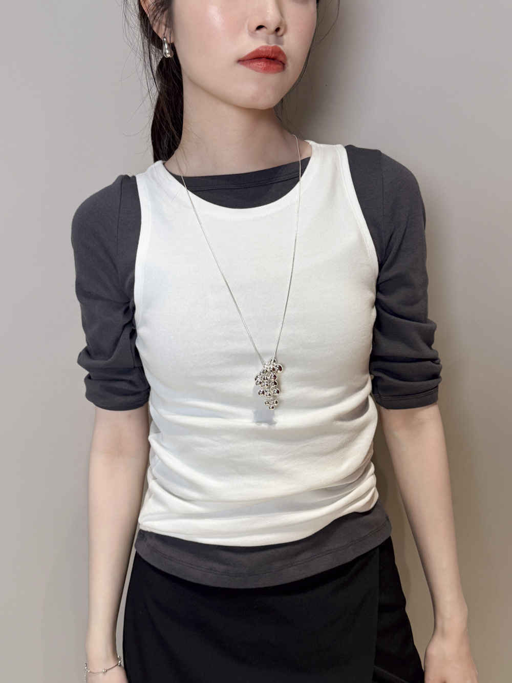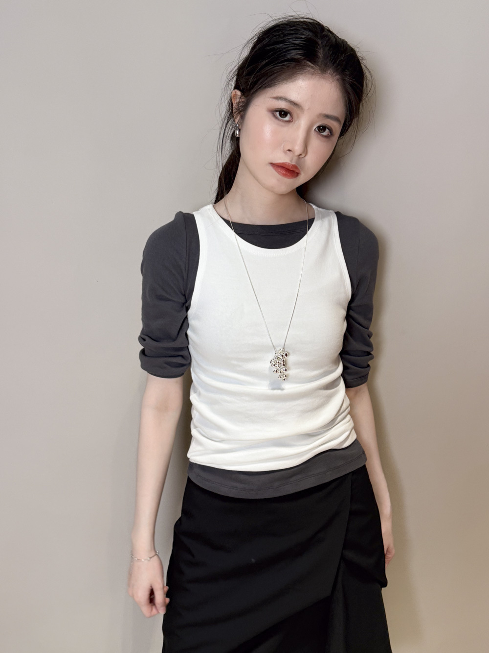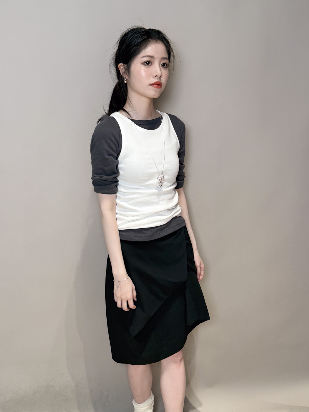 單穿好睇 襯牛仔褲/ 也可內搭中袖T-shirt 簡單韓妹疊穿感
