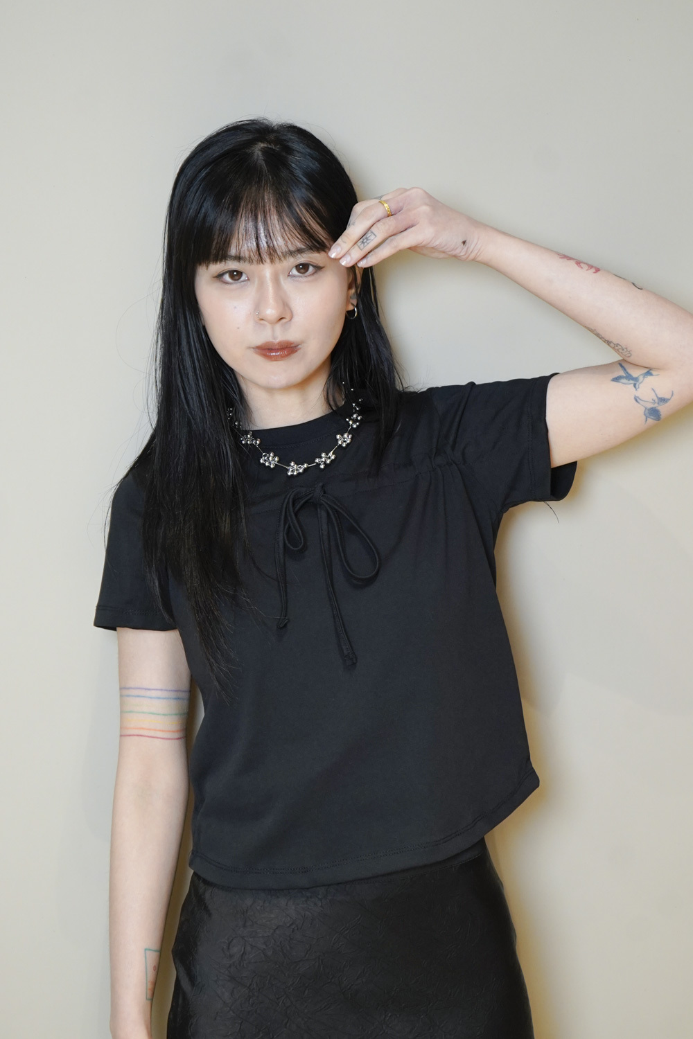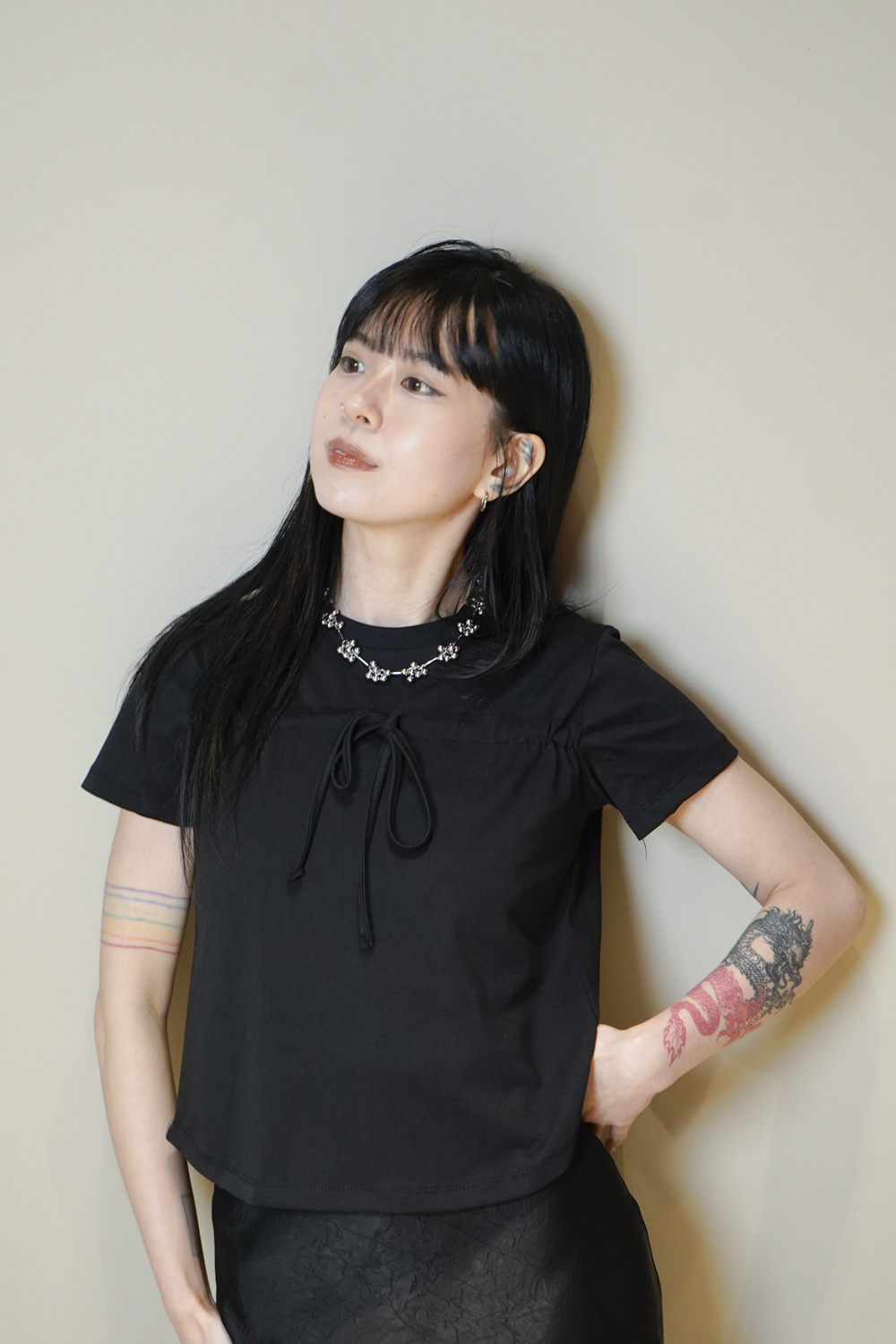 胸前可調節鬆緊/也可綁成蝴蝶結/