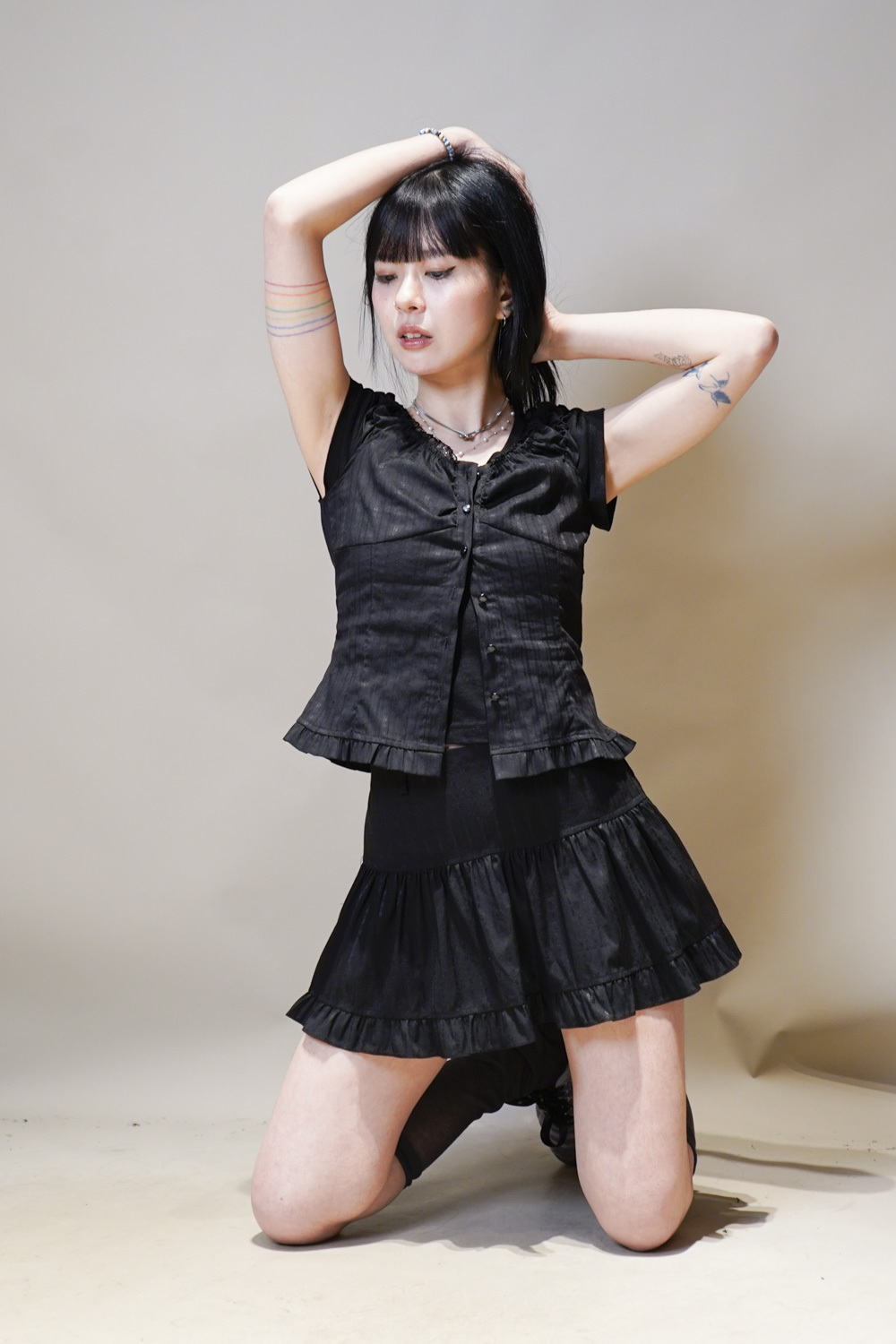 Happy Price~ Glossy Lace Mini Shorts (WHITE/ BLACK)