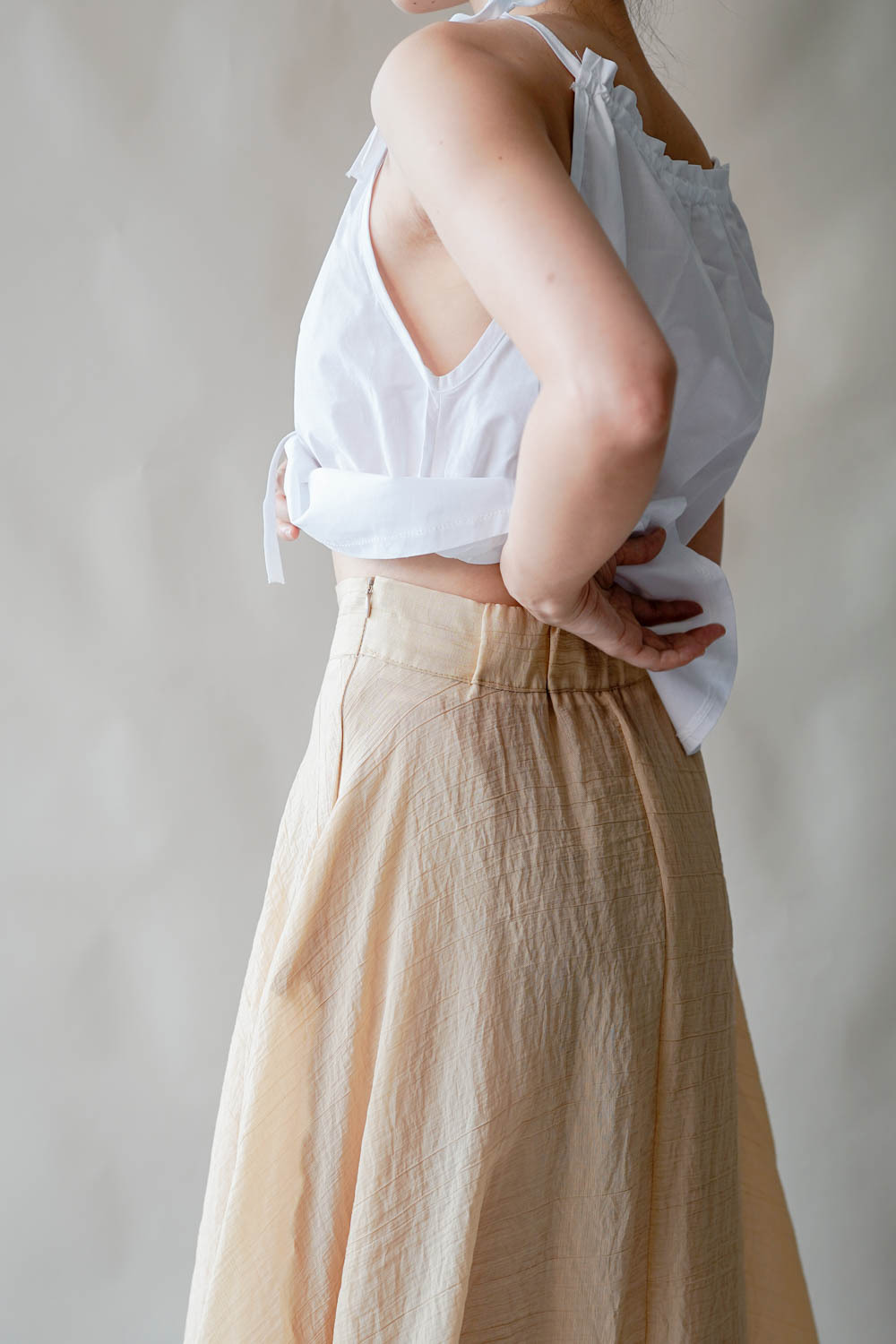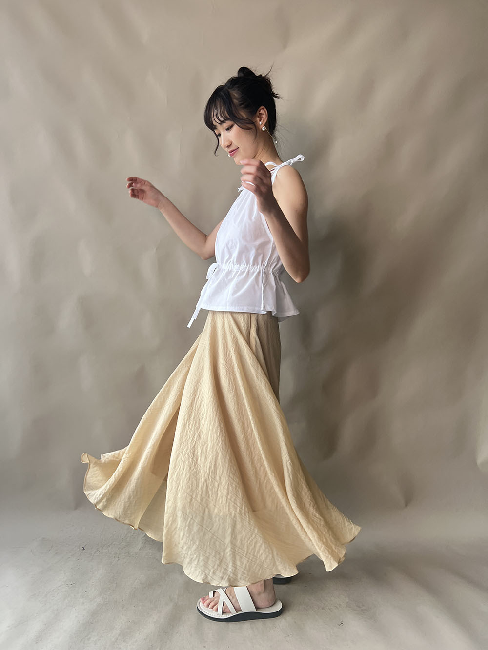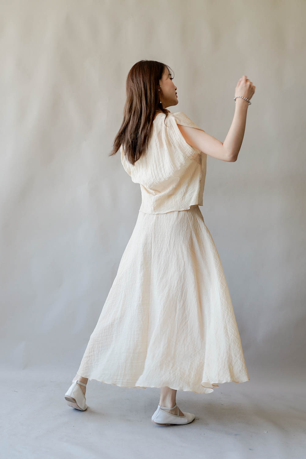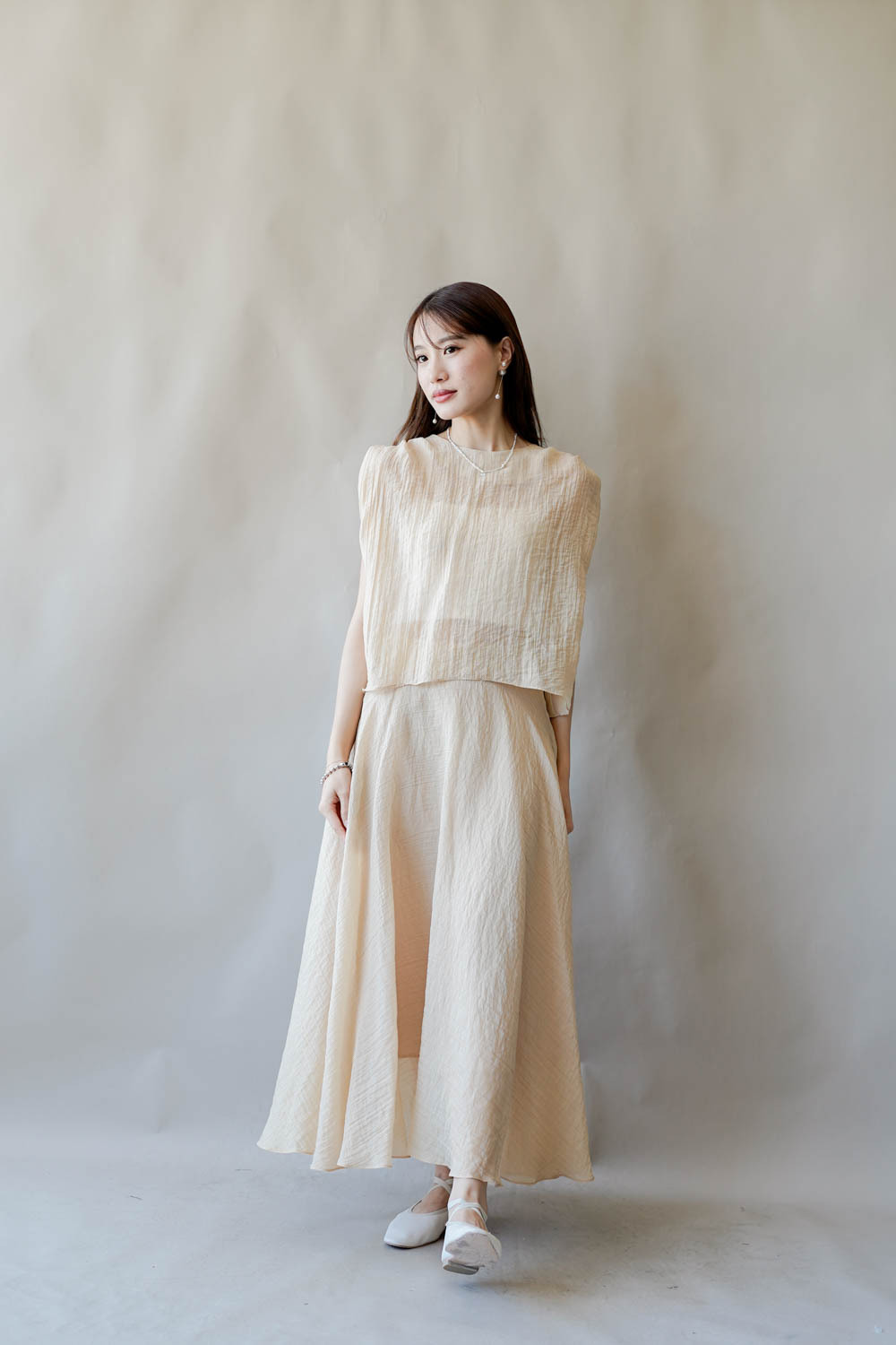 超大弧度下擺/垂墜布料不顯臀部大 /小木耳邊裙尾增添女性輕盈魅力/
