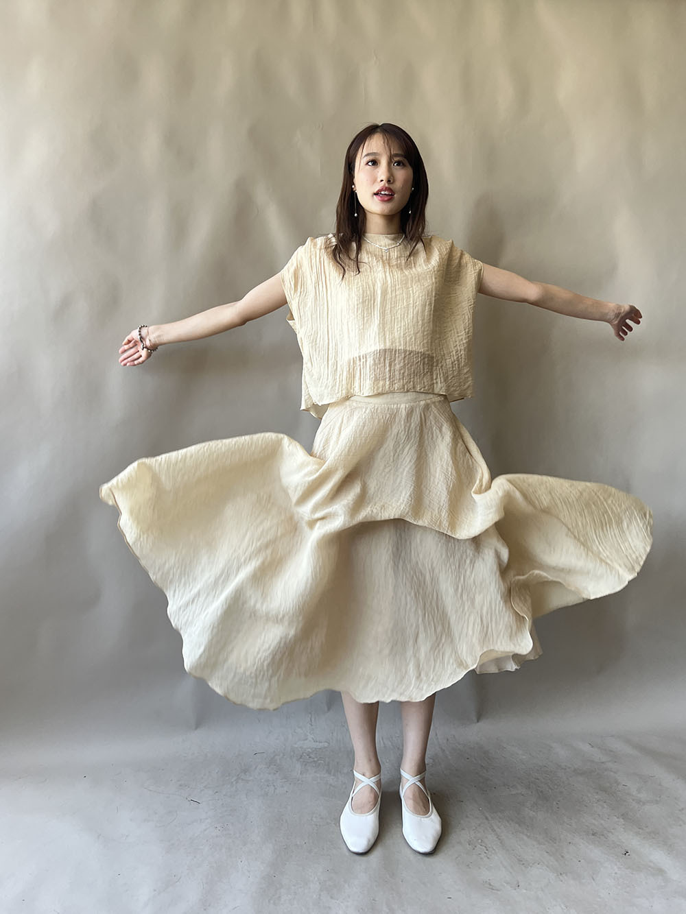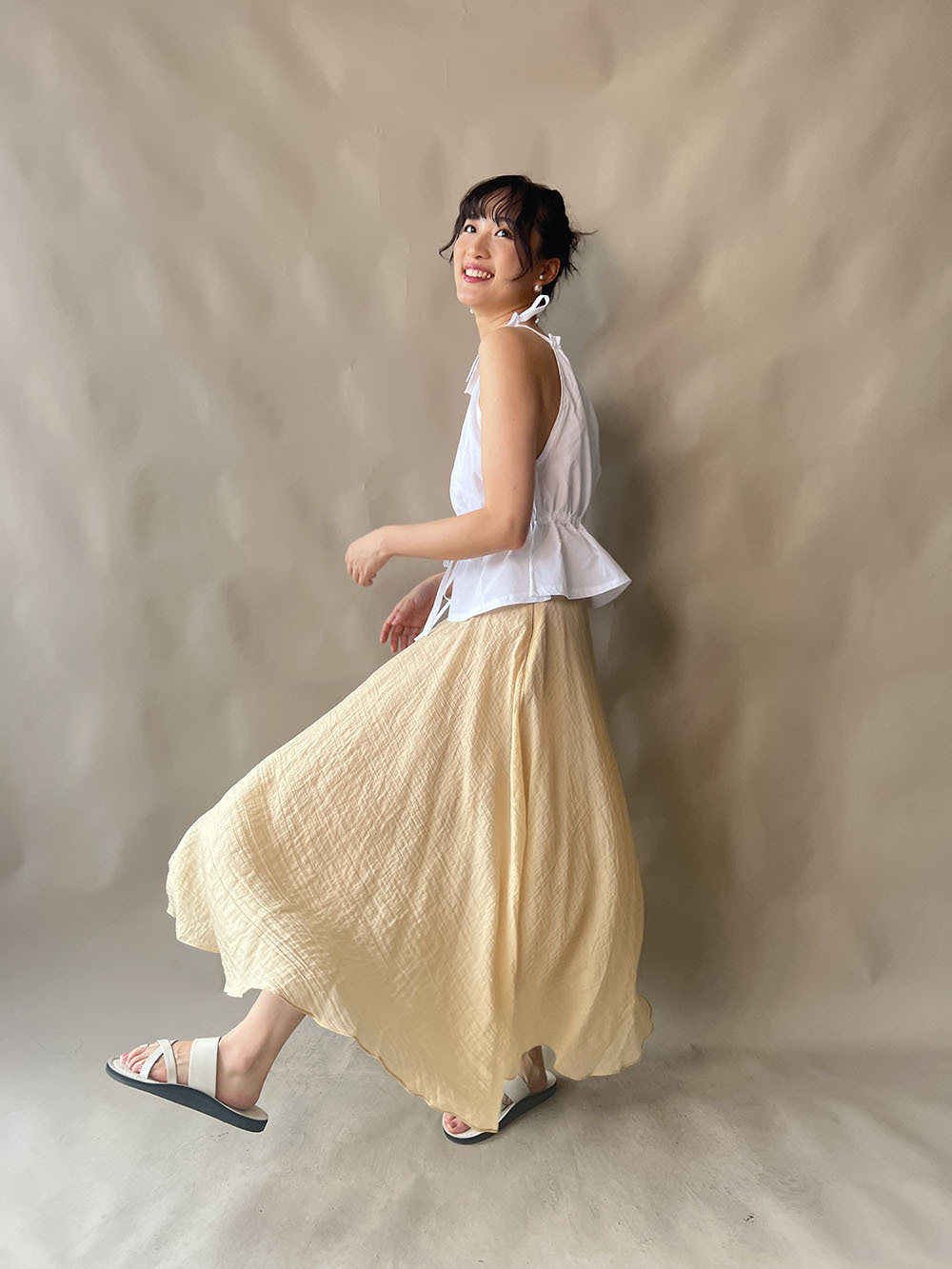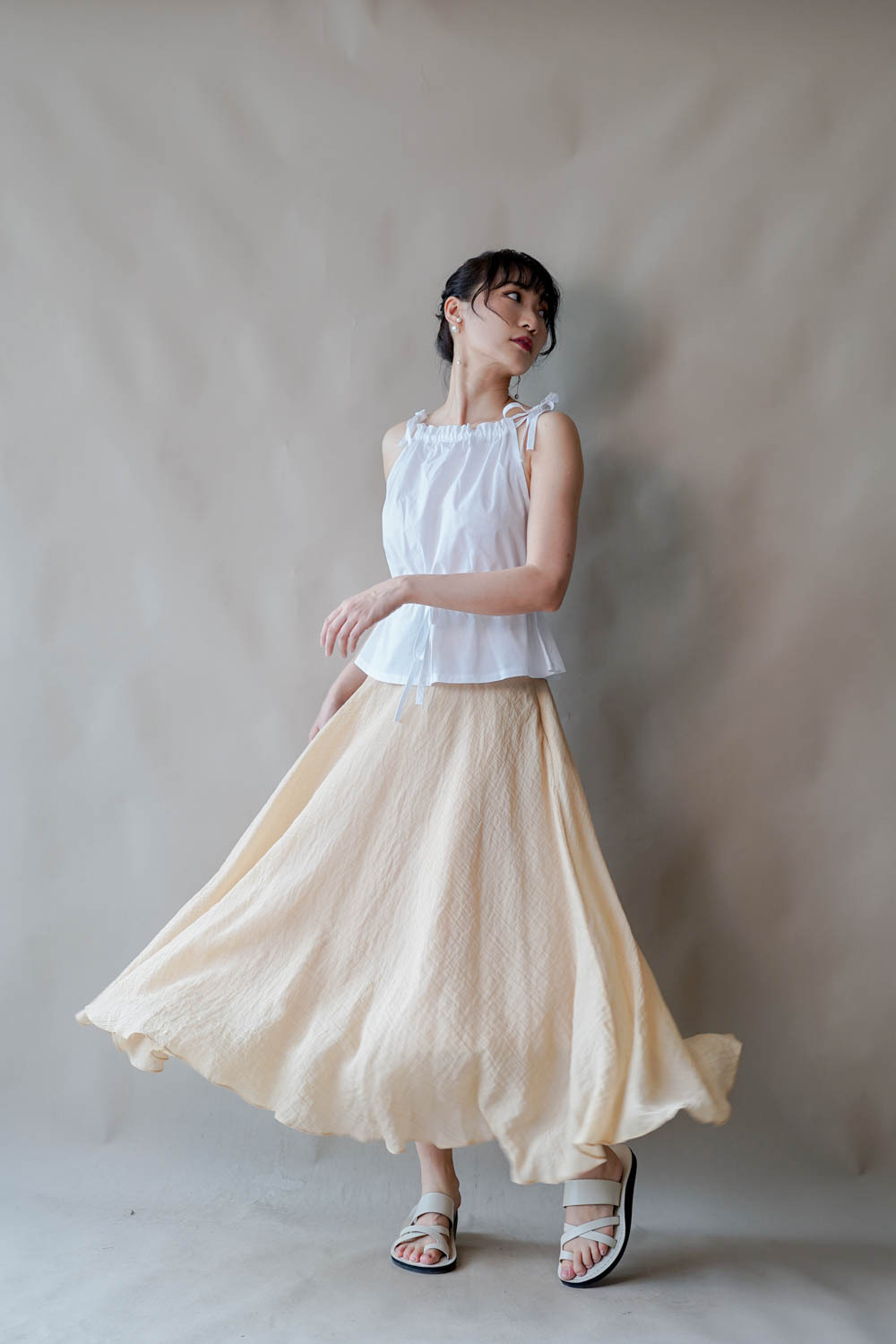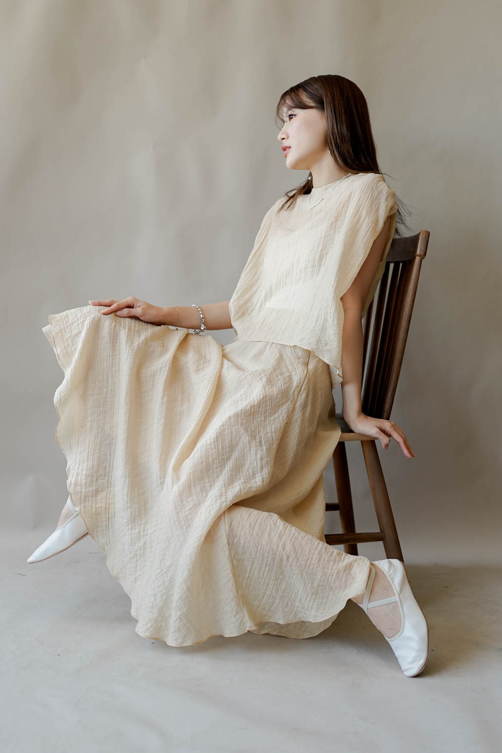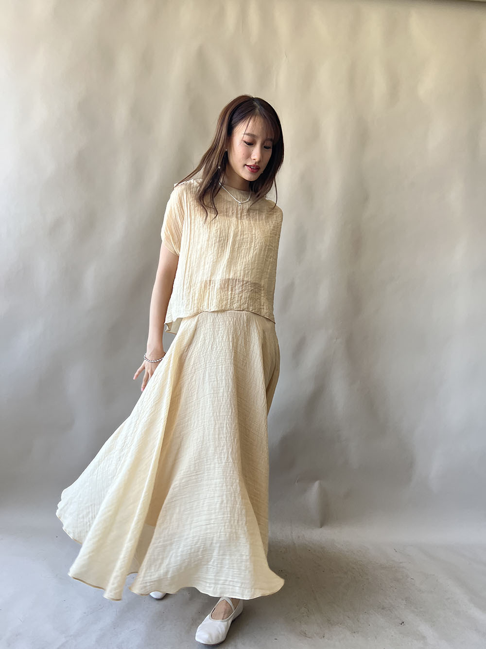 超大弧度下擺/垂墜布料不顯臀部大 /小木耳邊裙尾增添女性輕盈魅力/