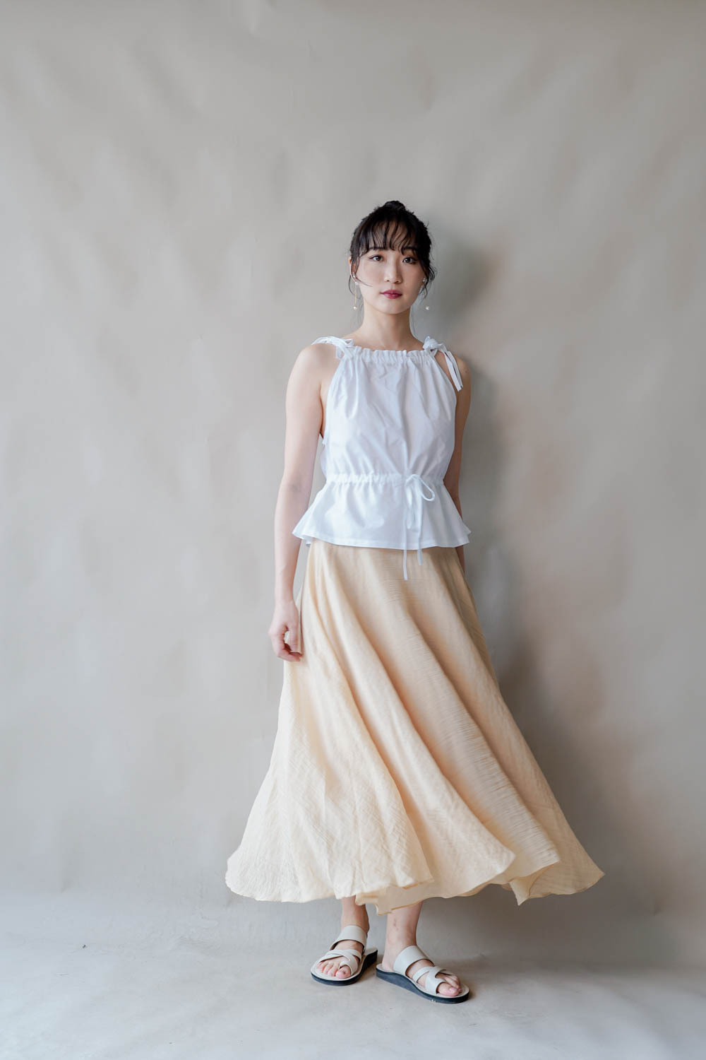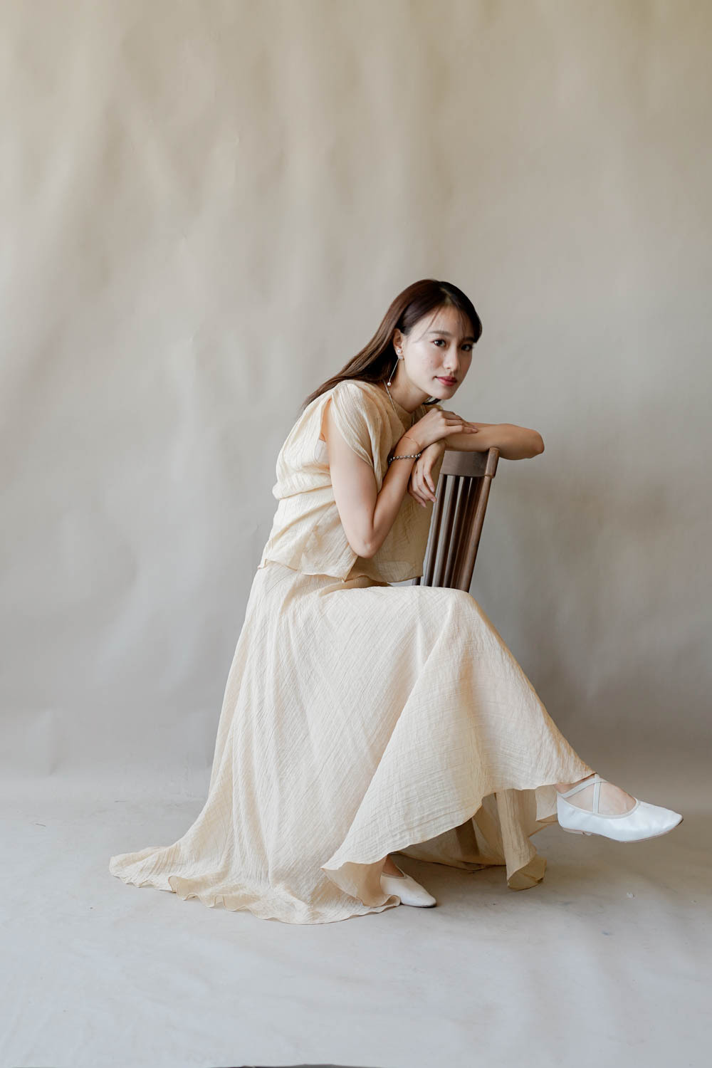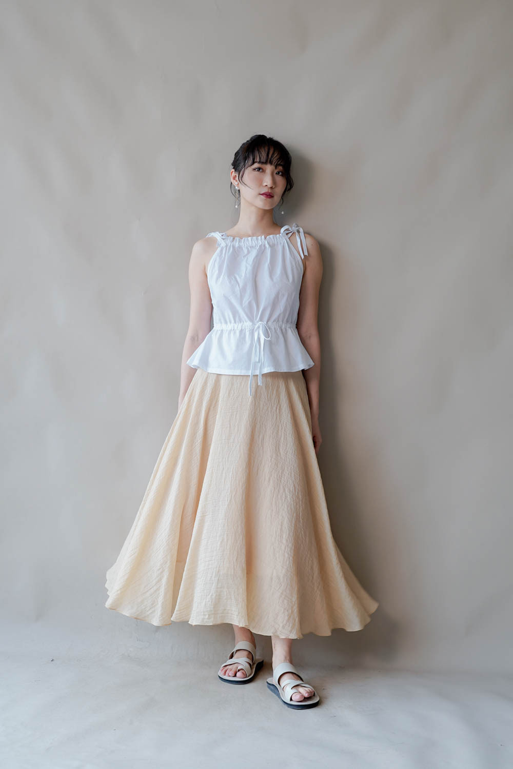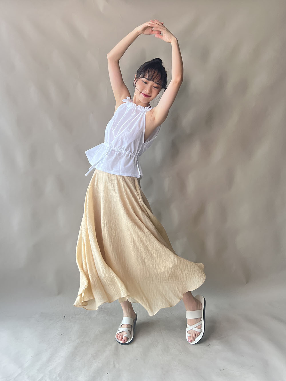 超大弧度下擺/垂墜布料不顯臀部大 /小木耳邊裙尾增添女性輕盈魅力/