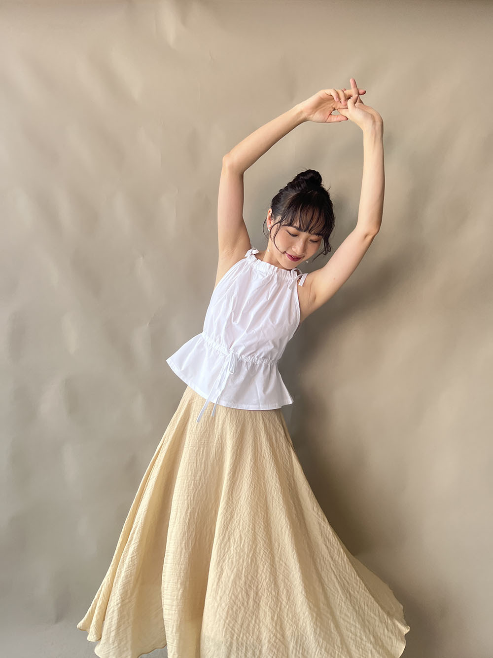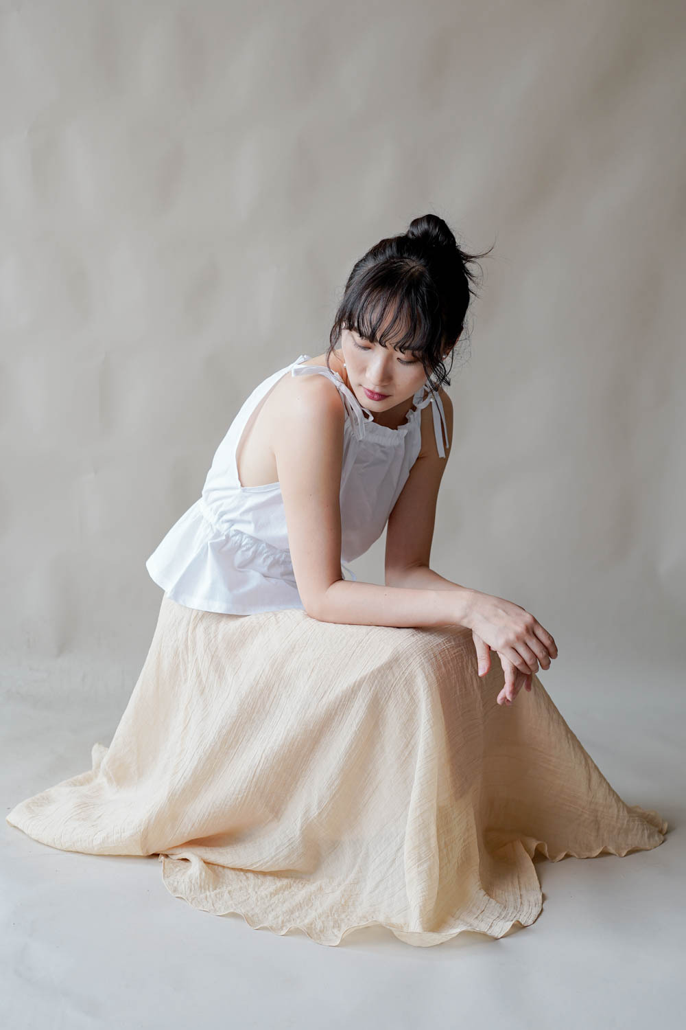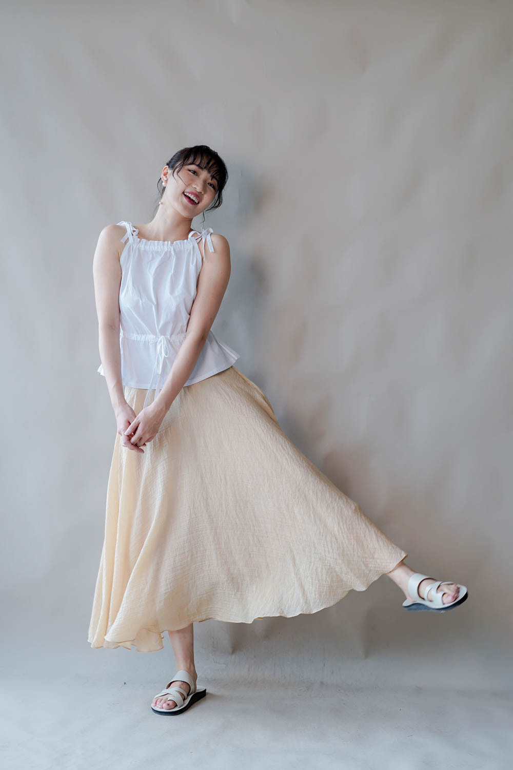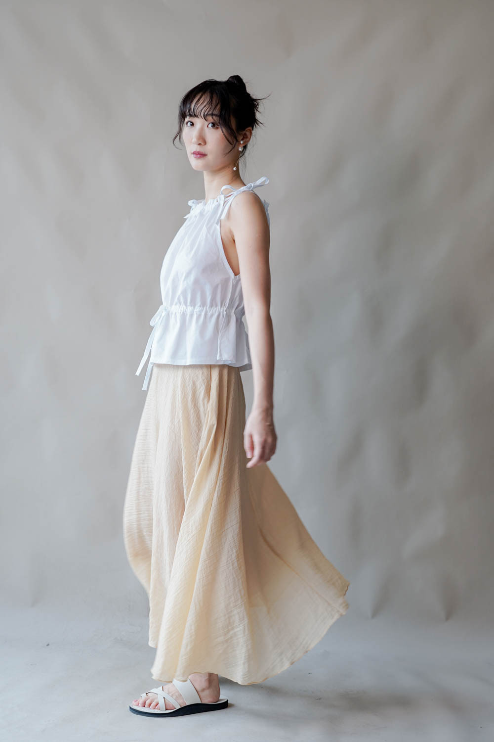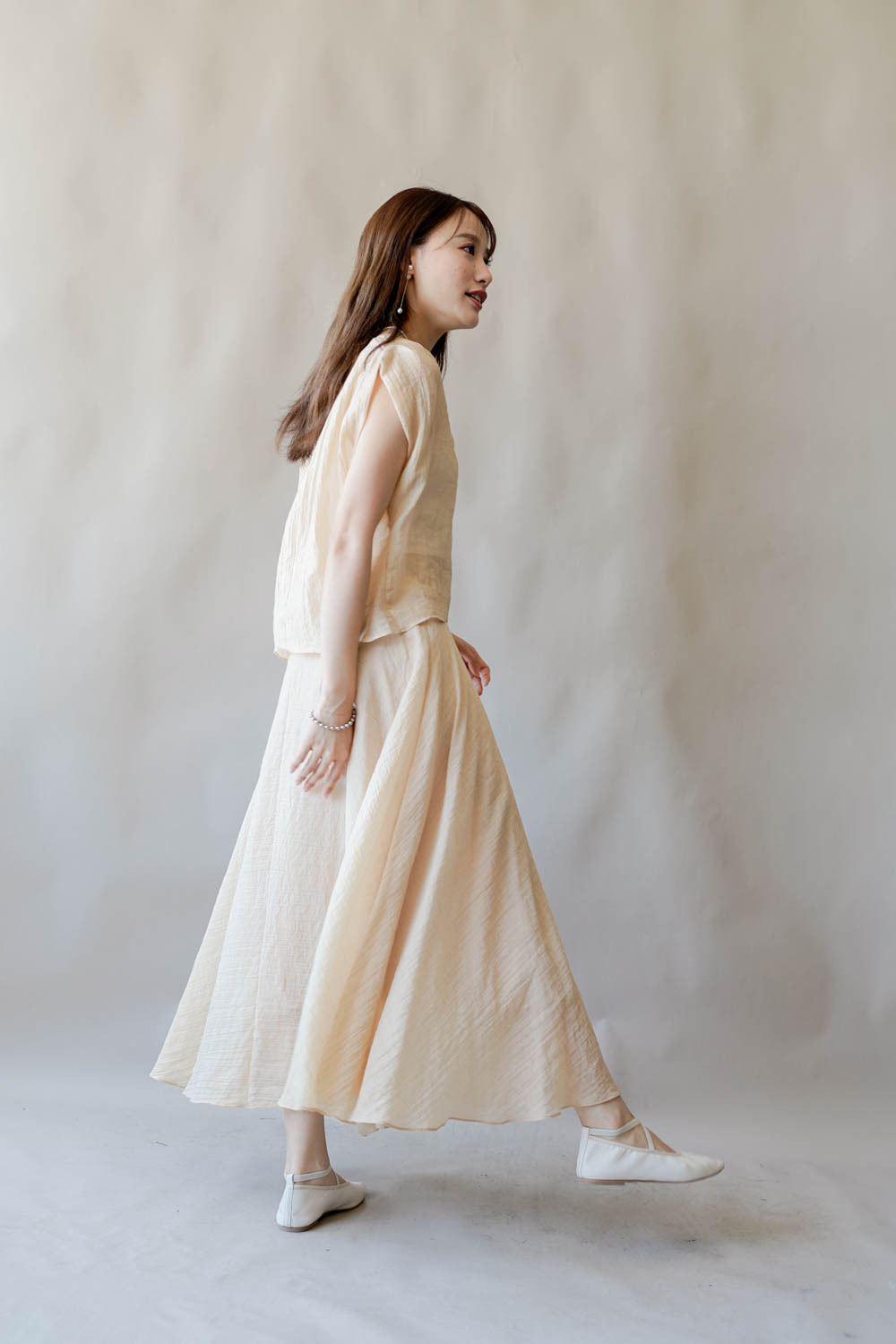超大弧度下擺/垂墜布料不顯臀部大 /小木耳邊裙尾增添女性輕盈魅力/