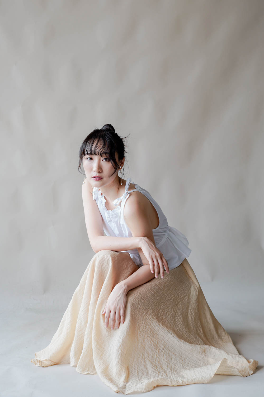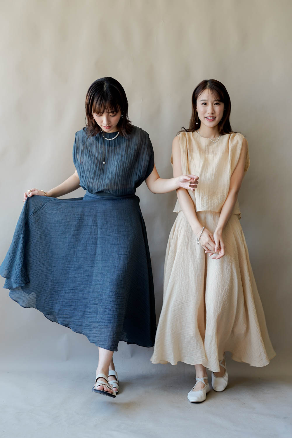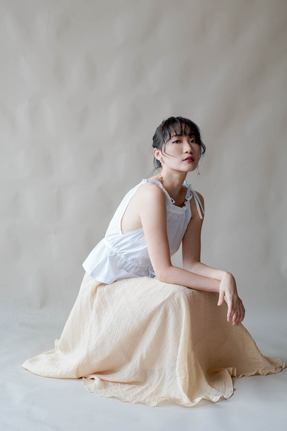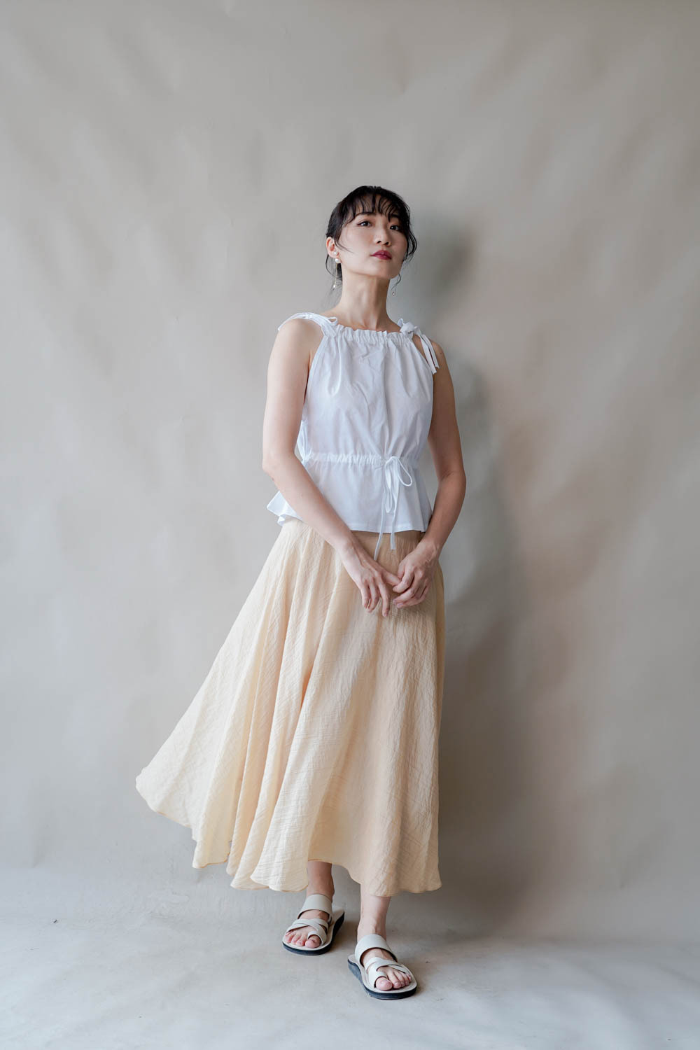 超大弧度下擺/垂墜布料不顯臀部大 /小木耳邊裙尾增添女性輕盈魅力/