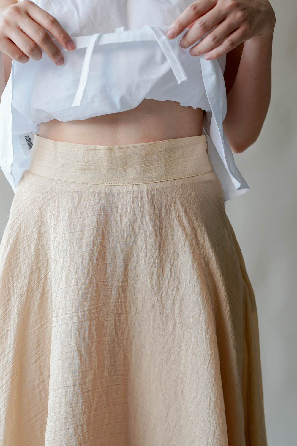 腰線:free / 彈性:低(有橡筋腰位) / 透膚程度:透 / 內里:無 / 口袋:無