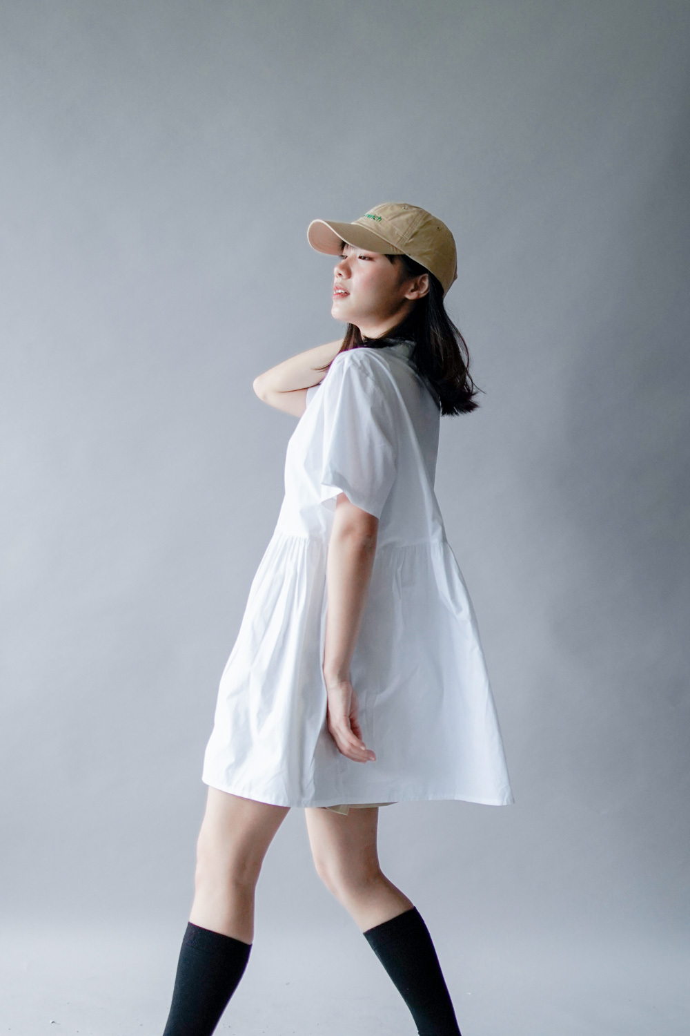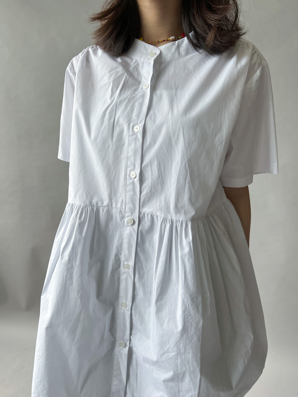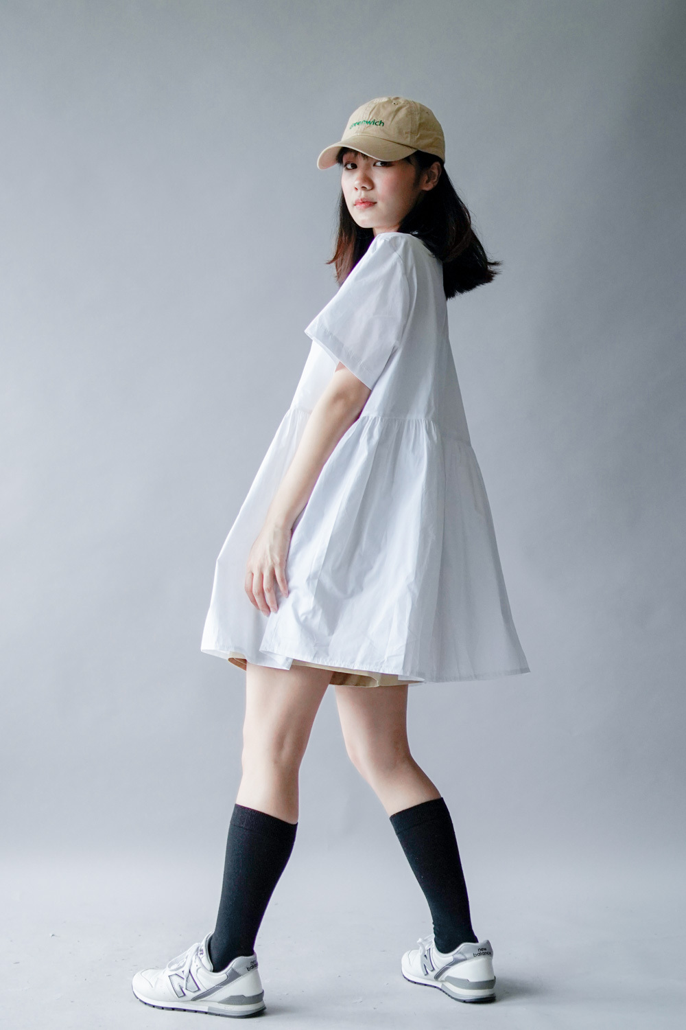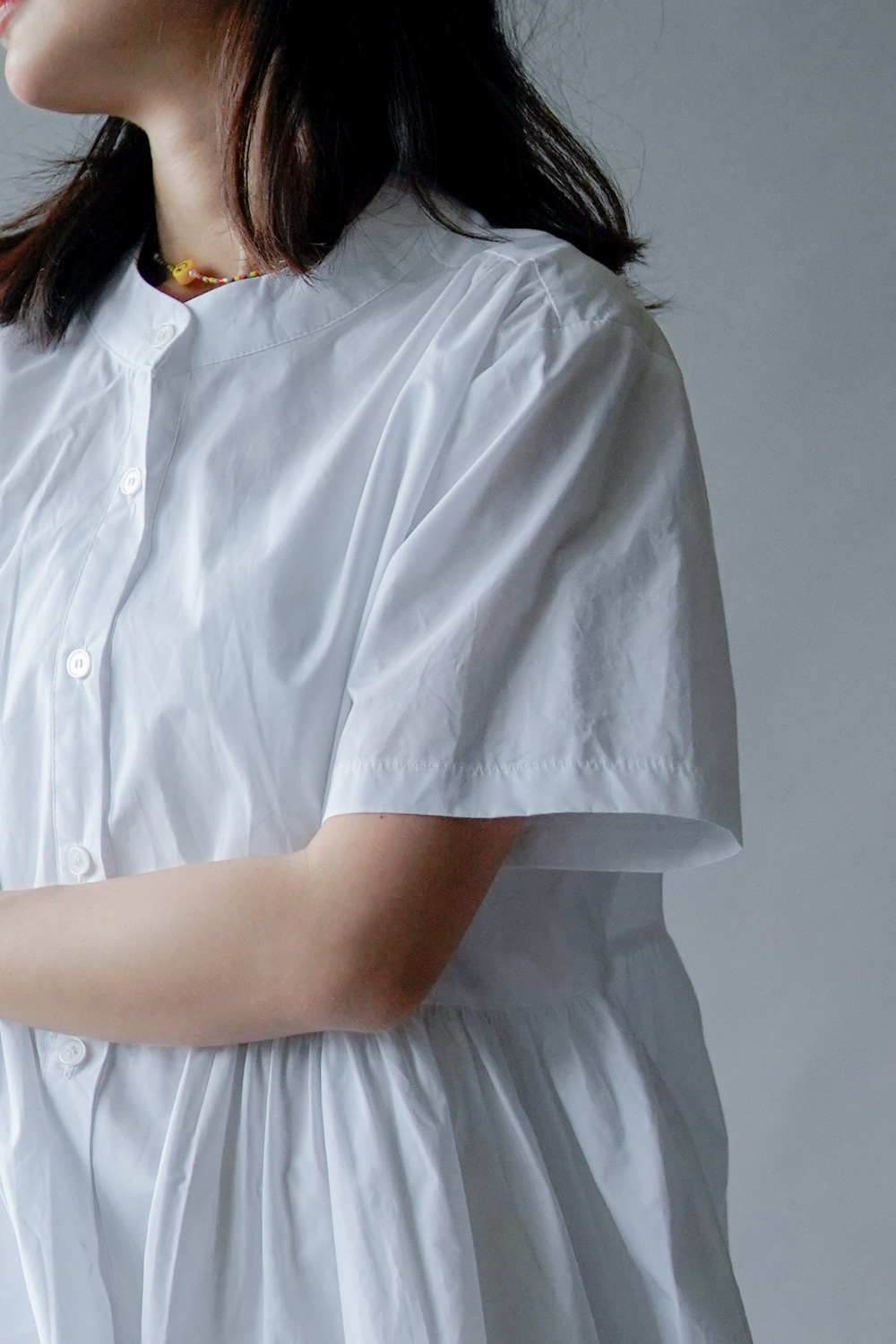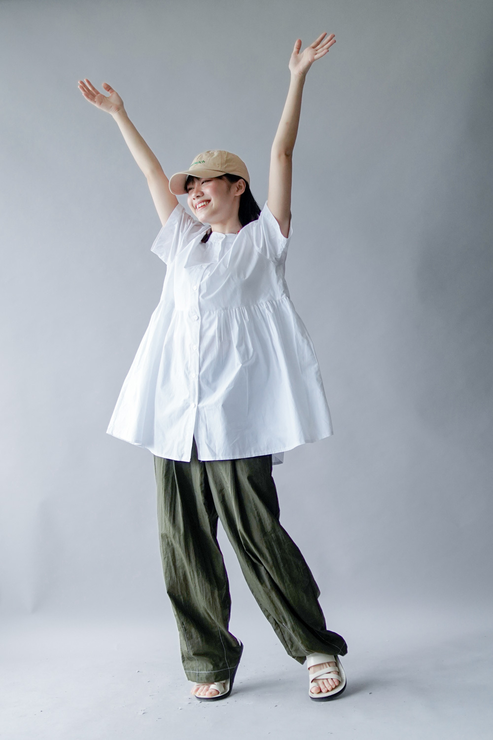 中間有收腰位 不會過分寬大/ 下擺有一排摺位 使造形更有層次感