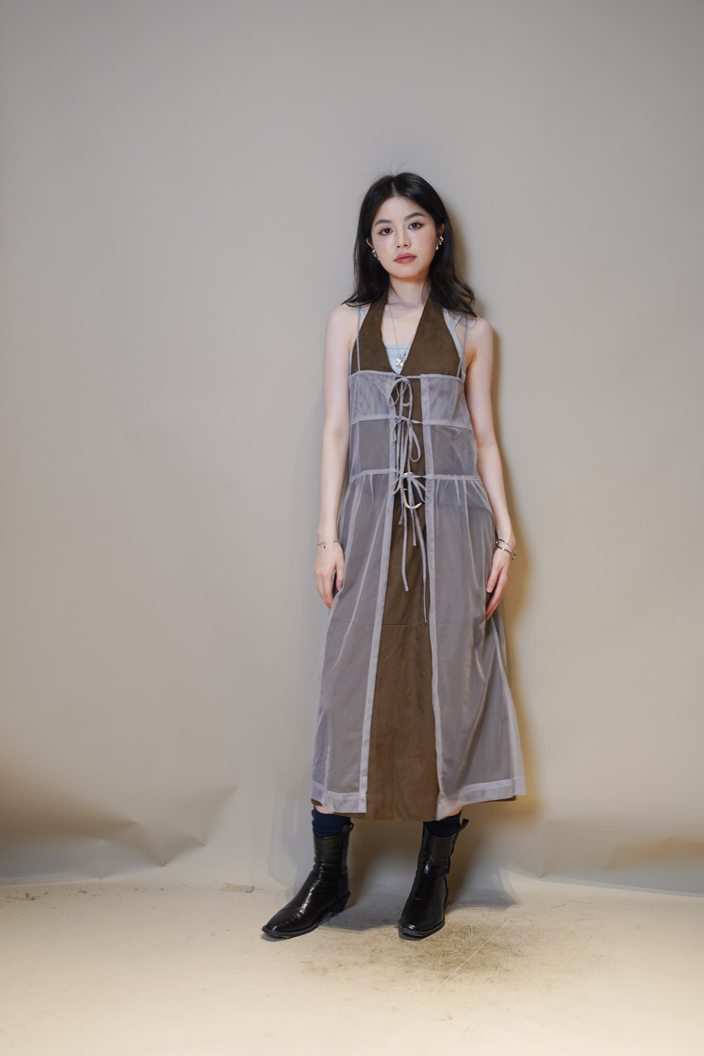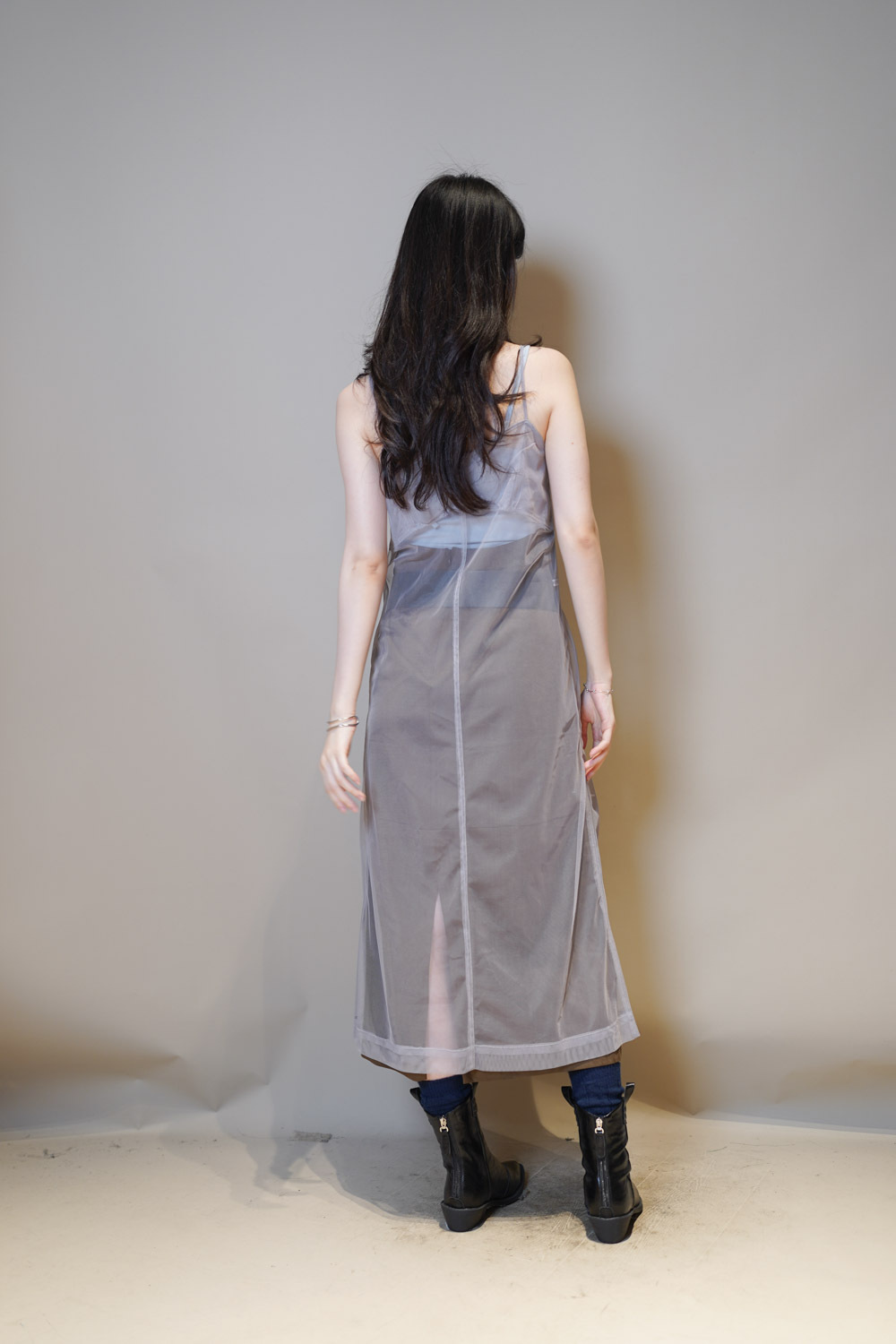 Happy price~ Mesh layering long dress (WHITE/GREY)