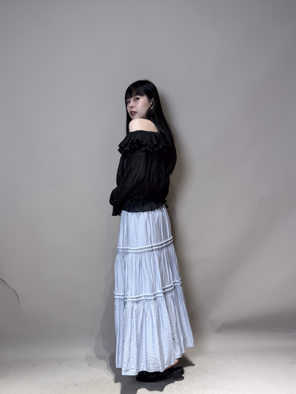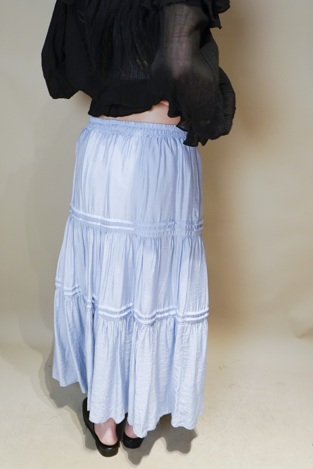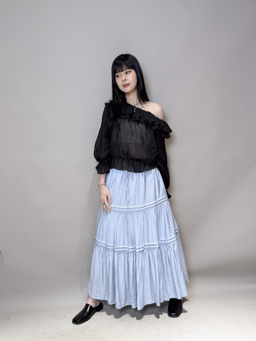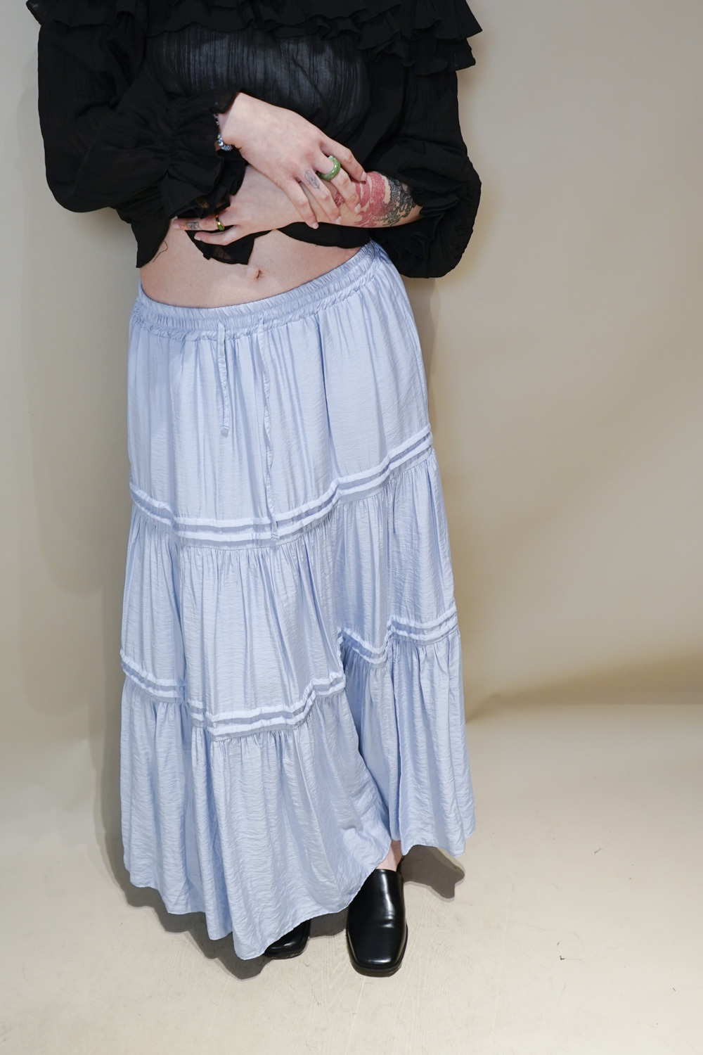 Happy Price~ Pearly Romantic Maxi Long Skirt (WHITE/ BLUE) - Free Size