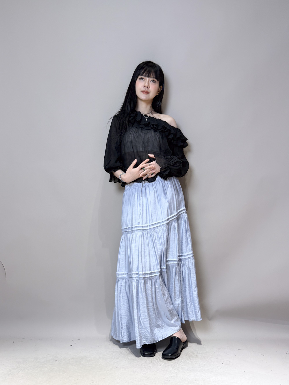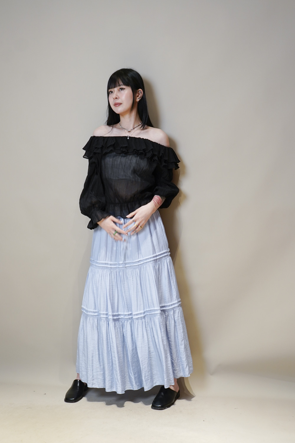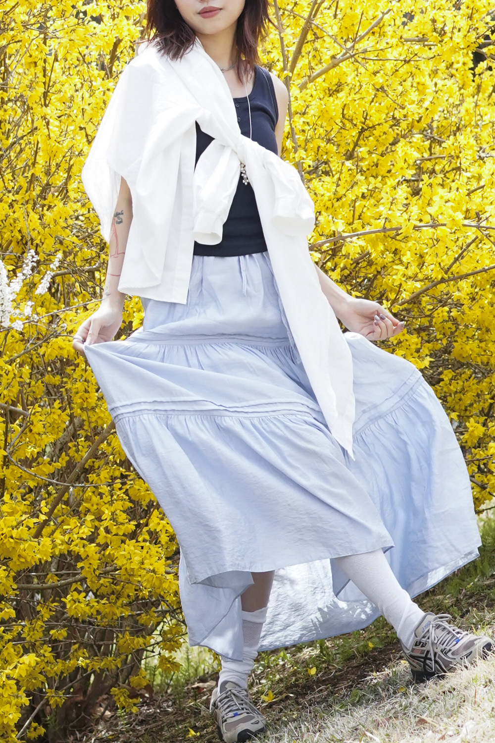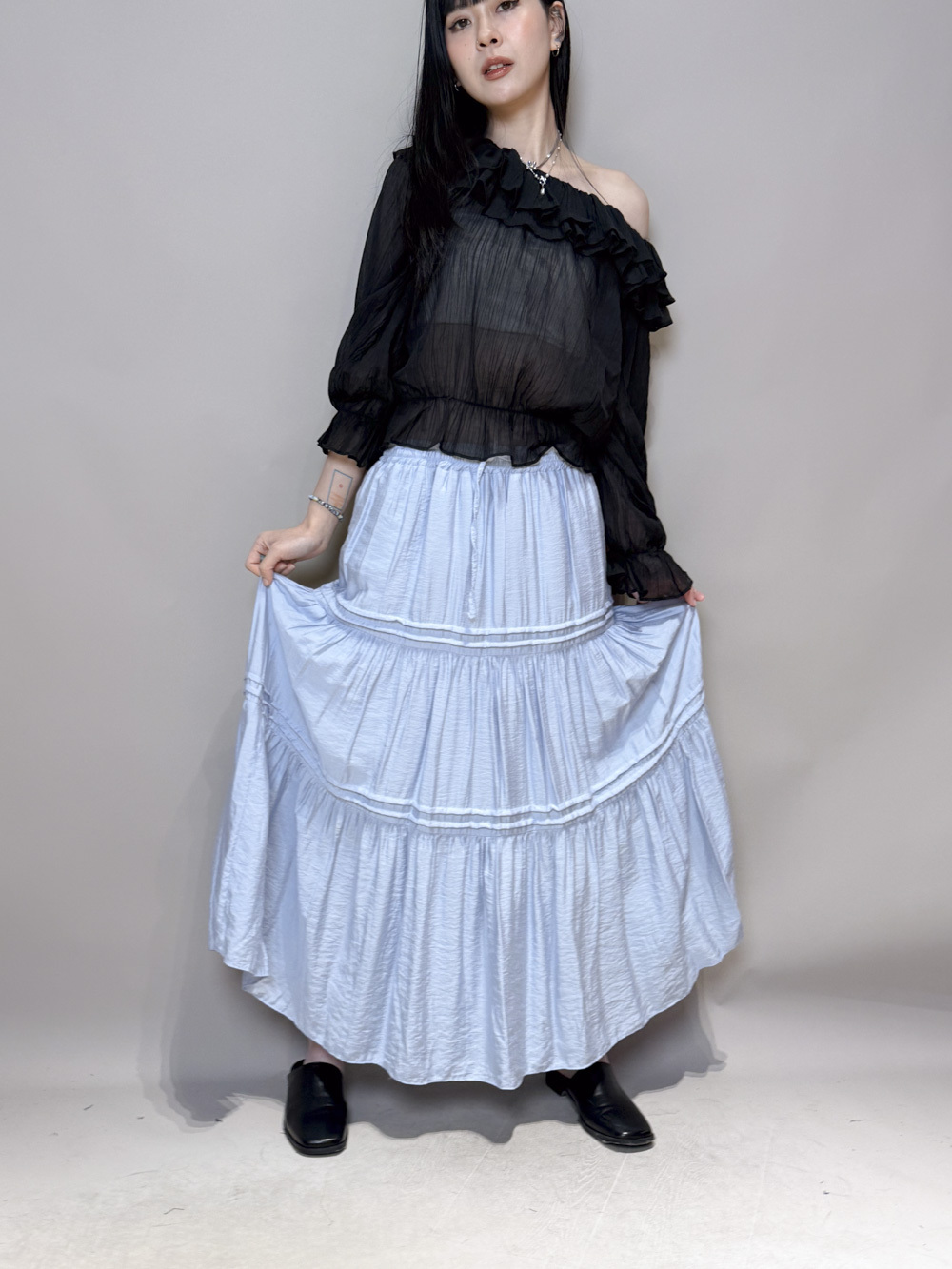 Happy Price~ Pearly Romantic Maxi Long Skirt (WHITE/ BLUE) - Free Size