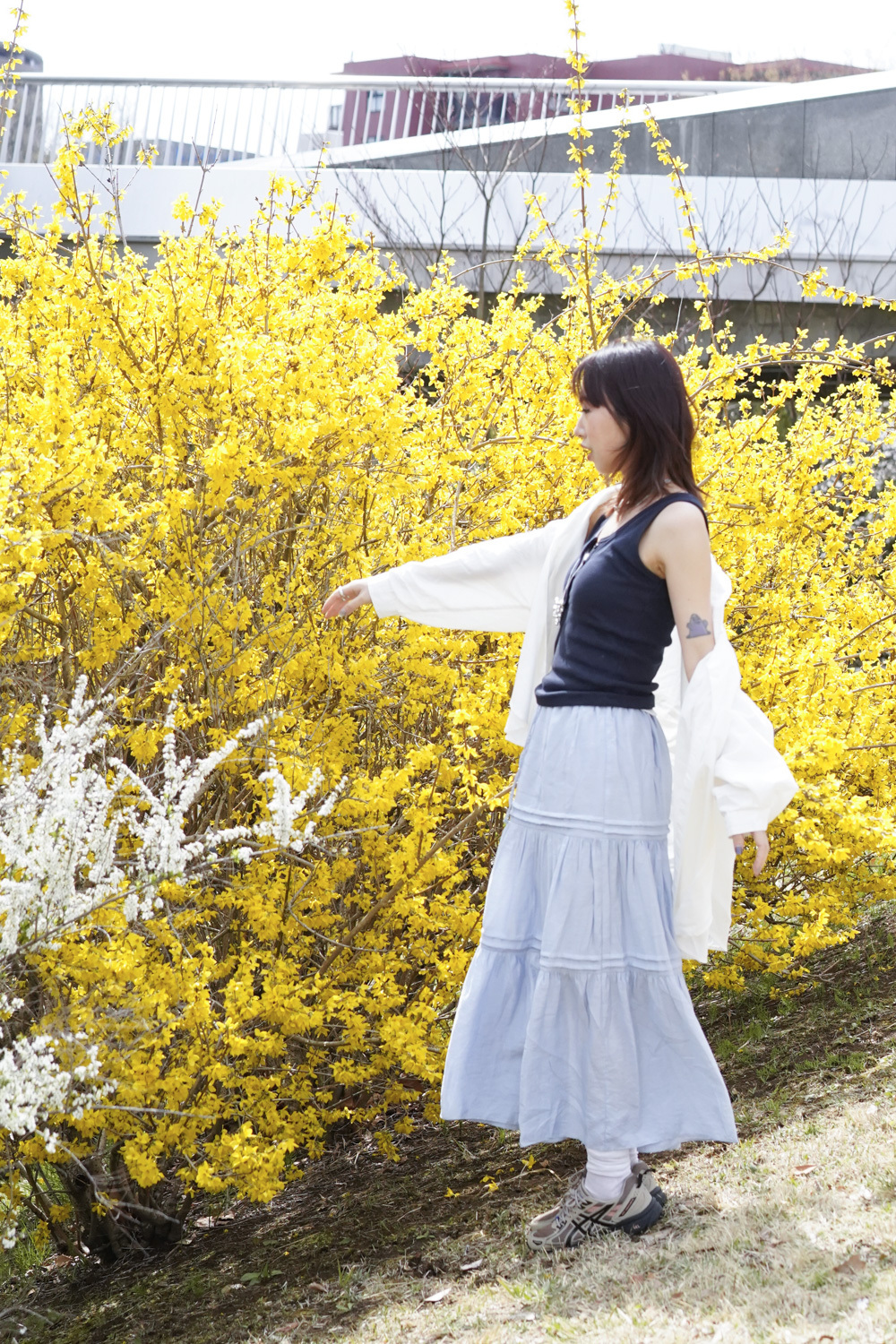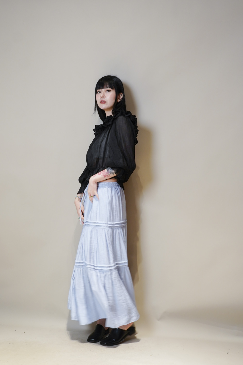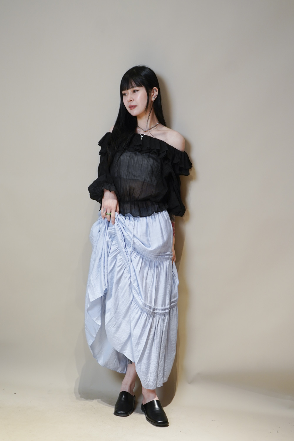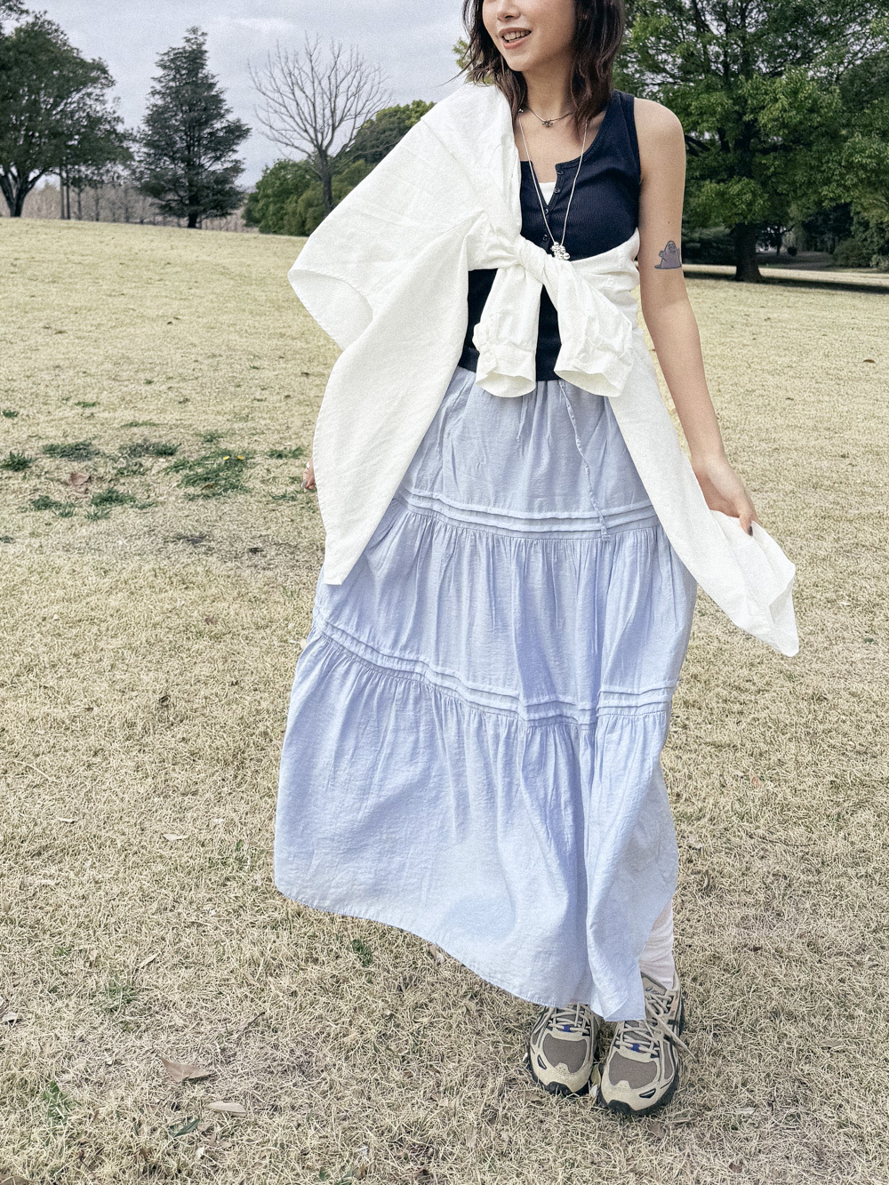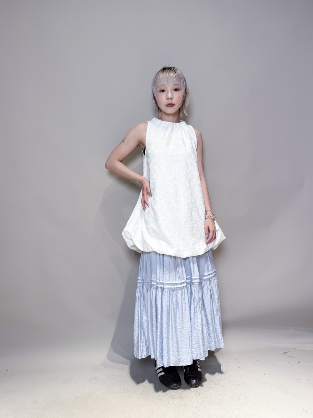 Happy Price~ Pearly Romantic Maxi Long Skirt (WHITE/ BLUE) - Free Size