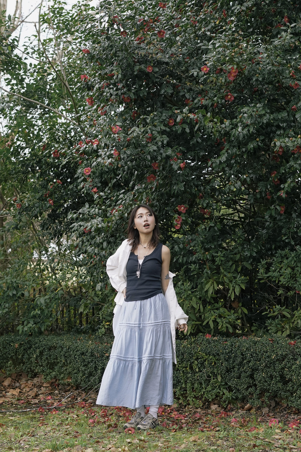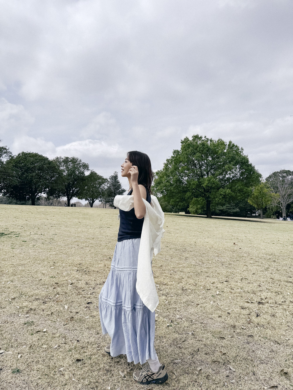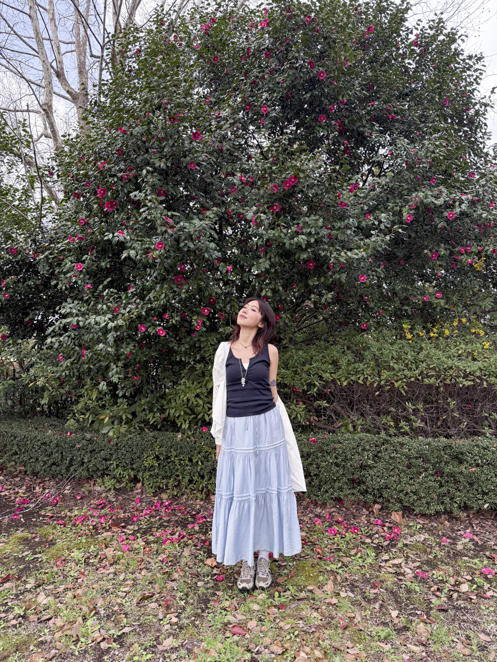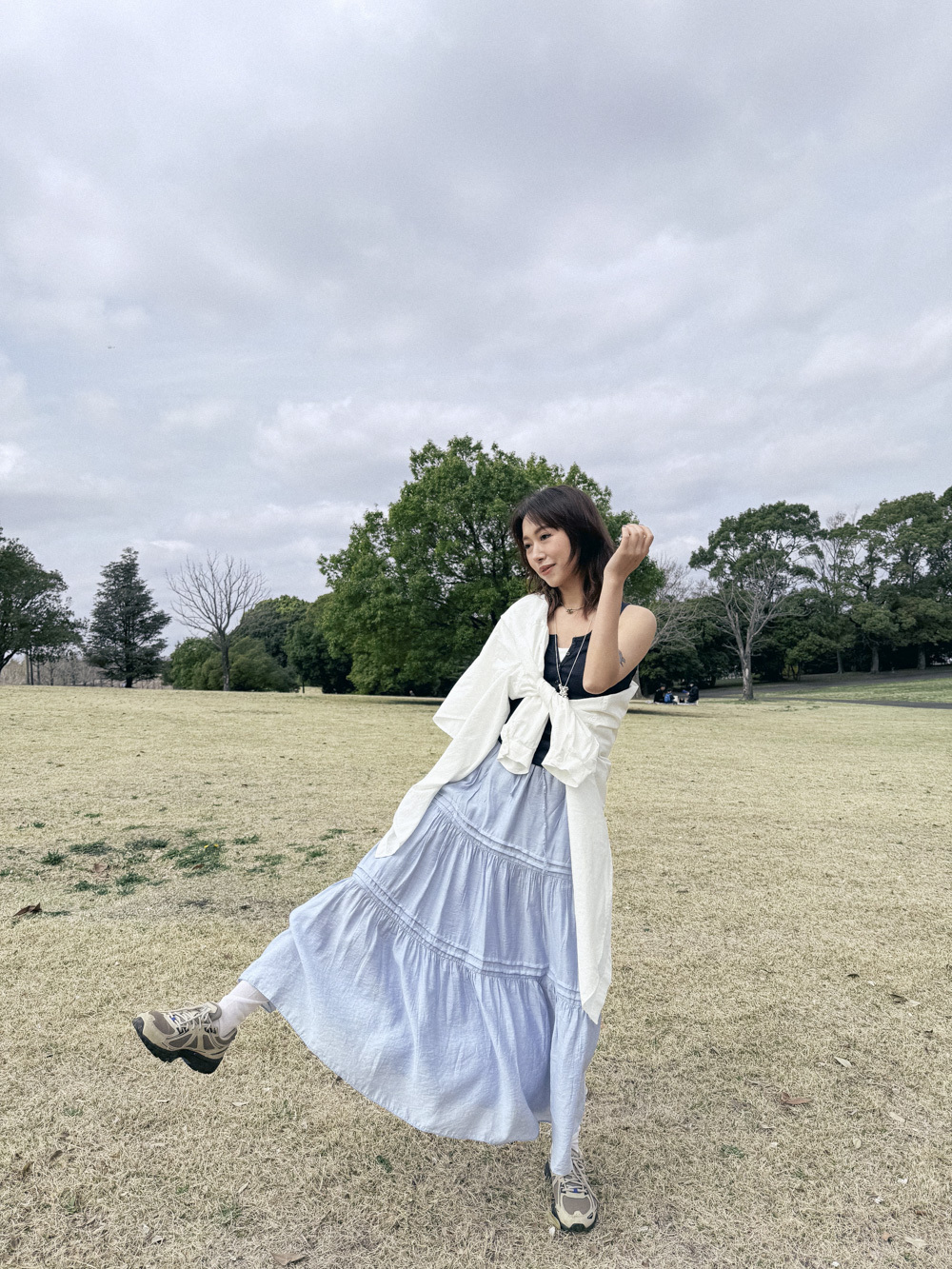 Happy Price~ Pearly Romantic Maxi Long Skirt (WHITE/ BLUE) - Free Size