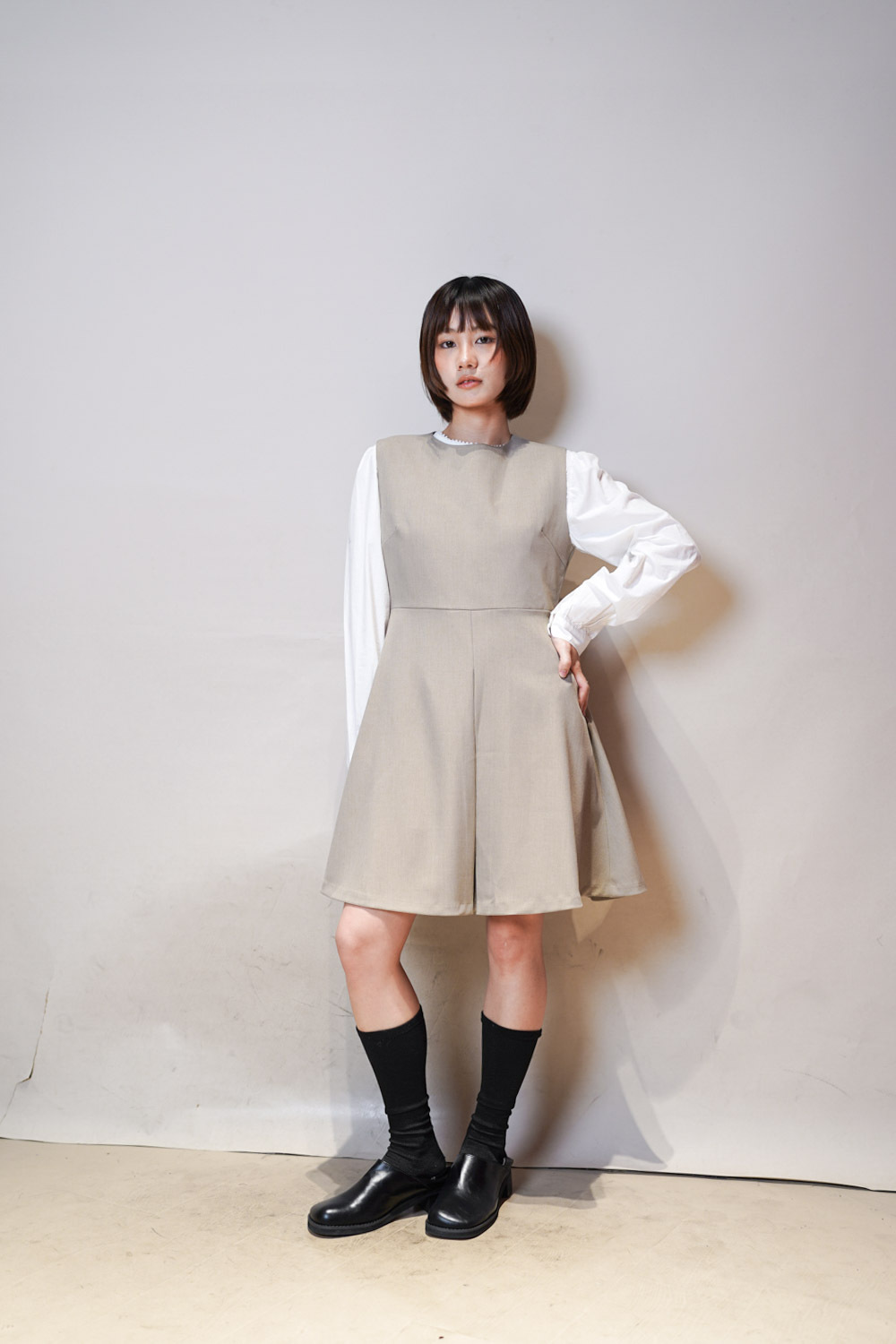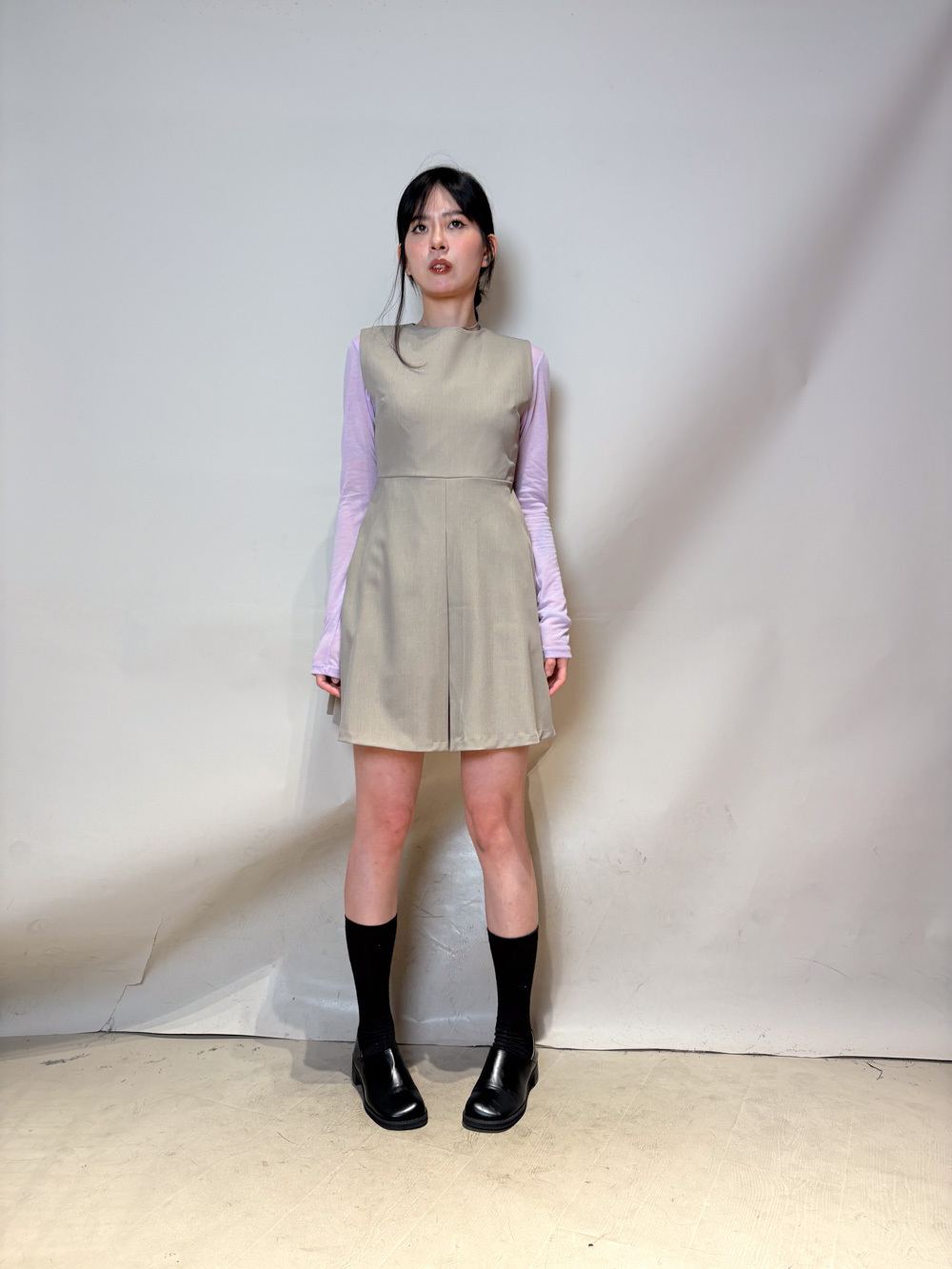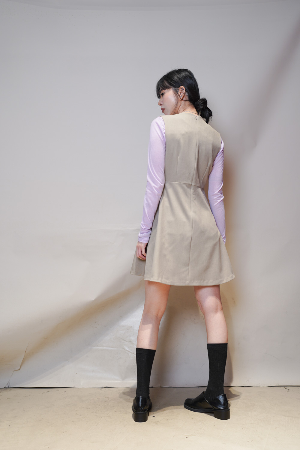 彈性:中 / 透膚程度:不透 / 內里:有 / 口袋:沒有
