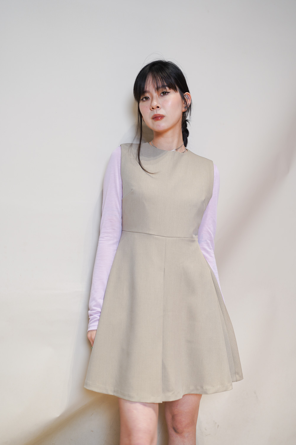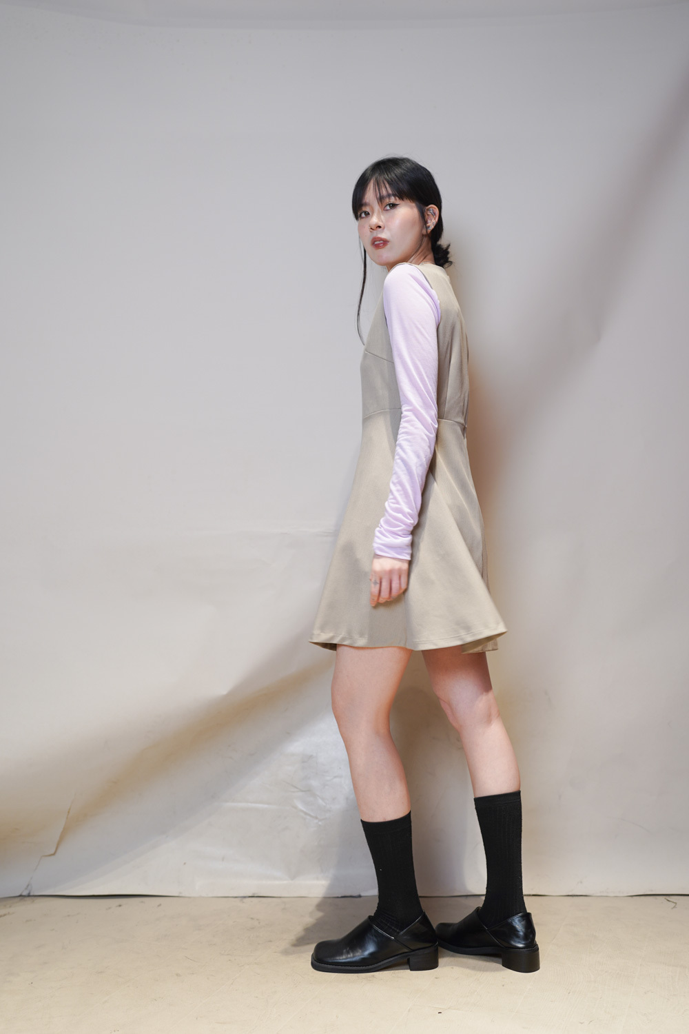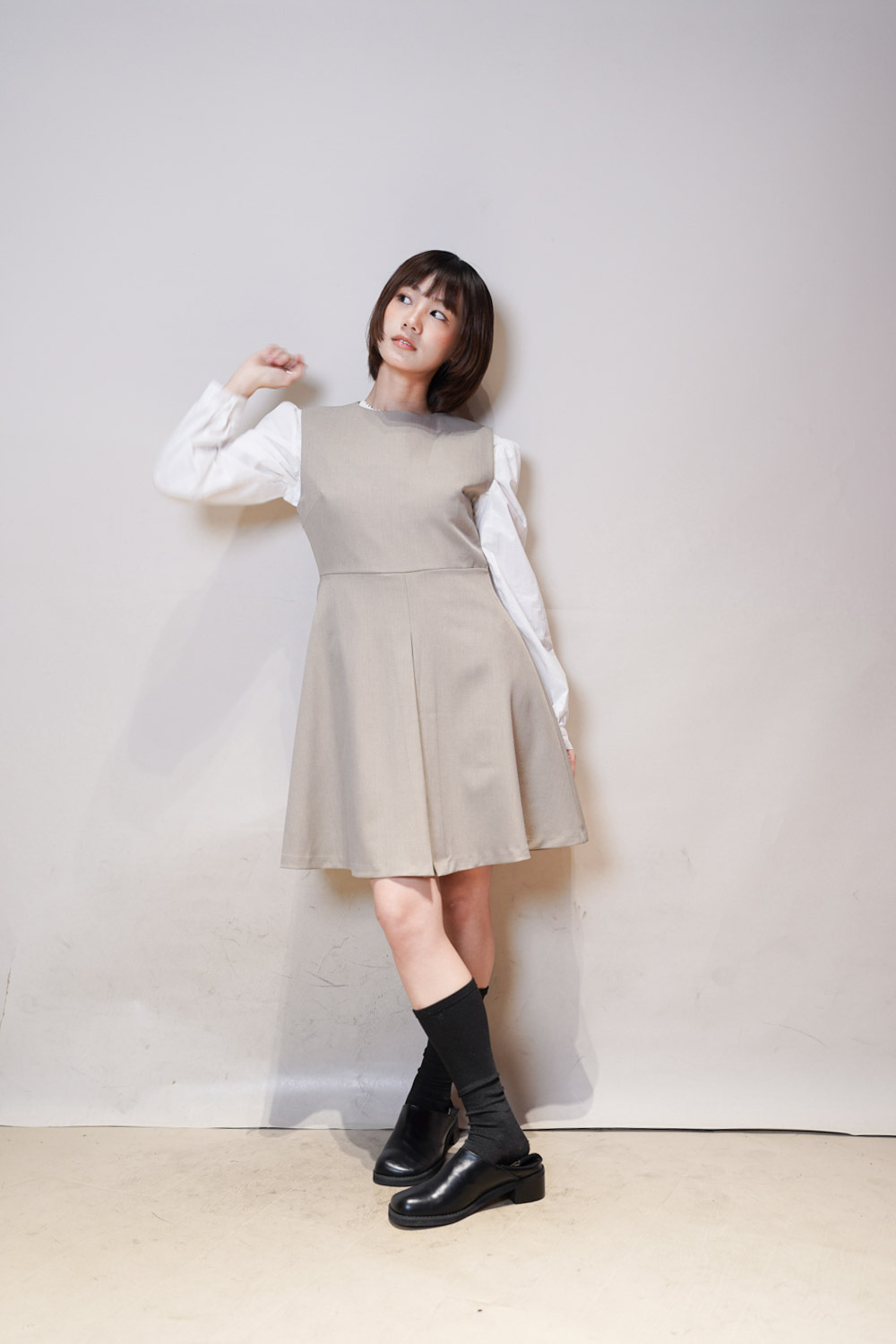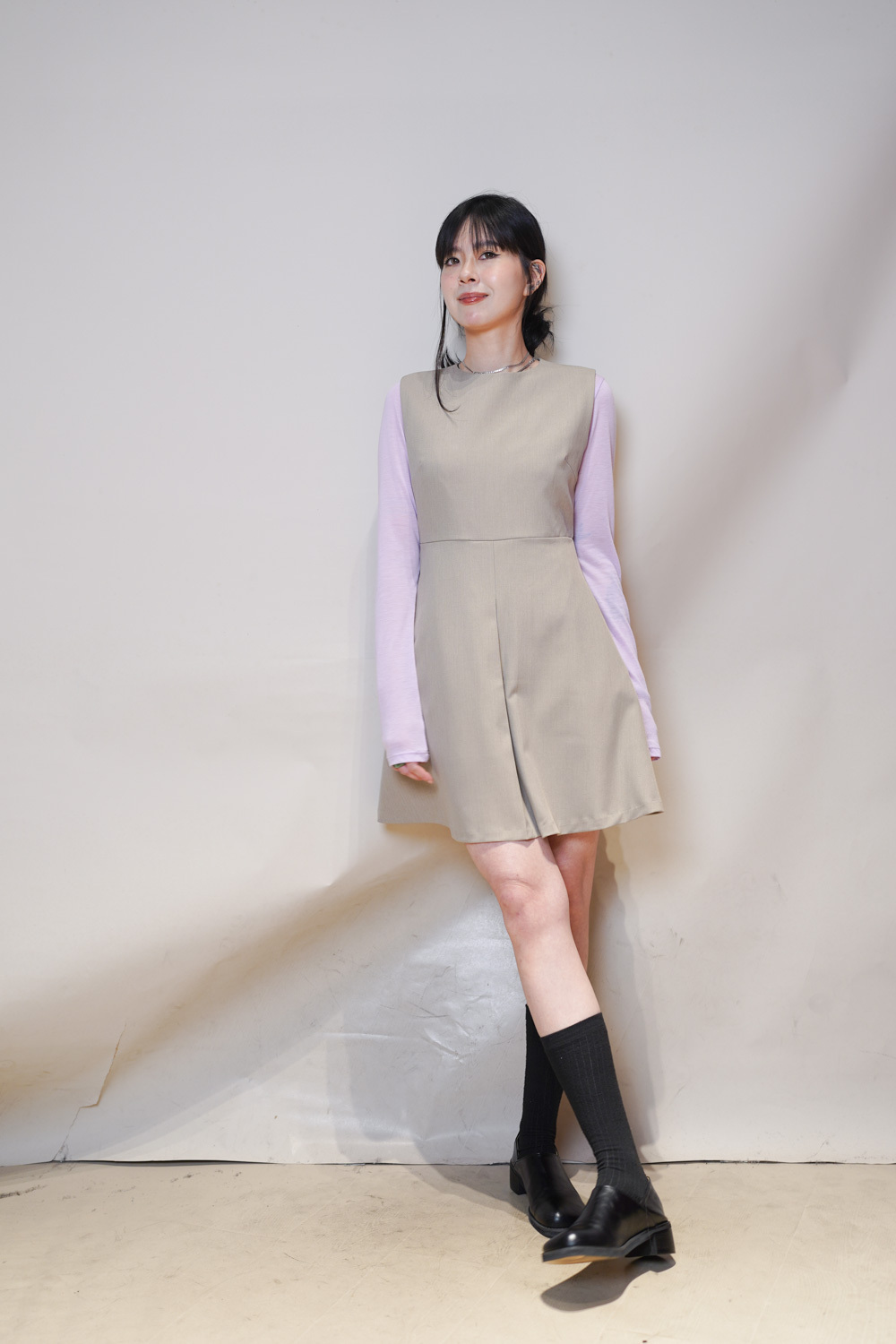 彈性:中 / 透膚程度:不透 / 內里:有 / 口袋:沒有