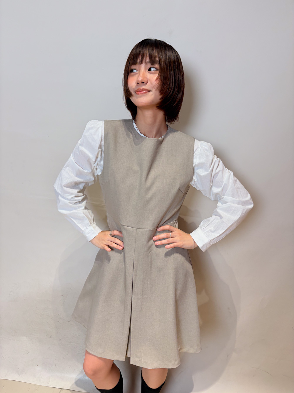 Happy price~ Pretty office lady dress (BEIGE/BLACK)