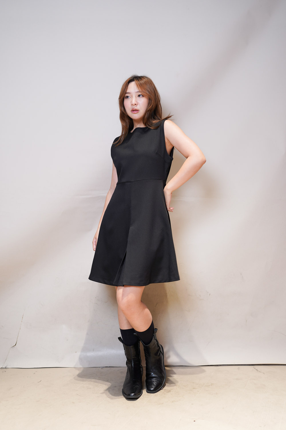 彈性:中 / 透膚程度:不透 / 內里:有 / 口袋:沒有