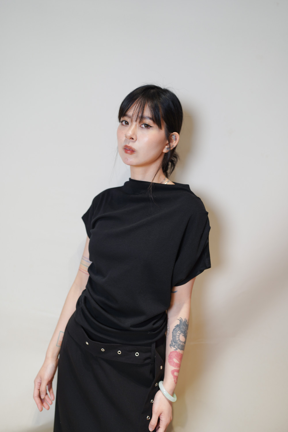 垂墜布料造出鬆弛感/打摺detail增加造型感/