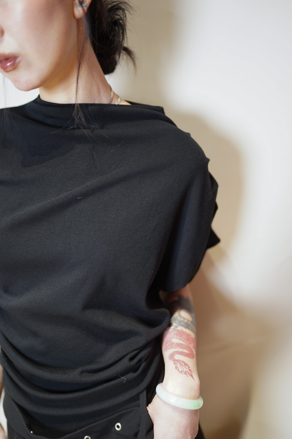 Happy price~ stand collar wing tee (WHITE/BLACK)