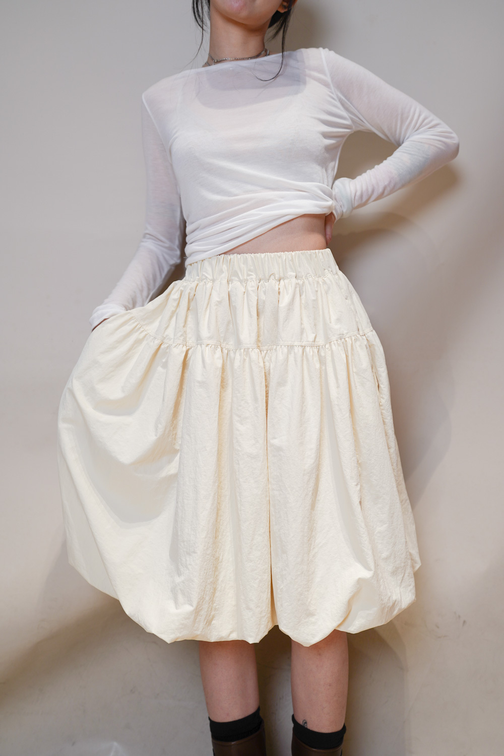 Happy price~ wrinkle free balloon skirt (IVORY) - Free size