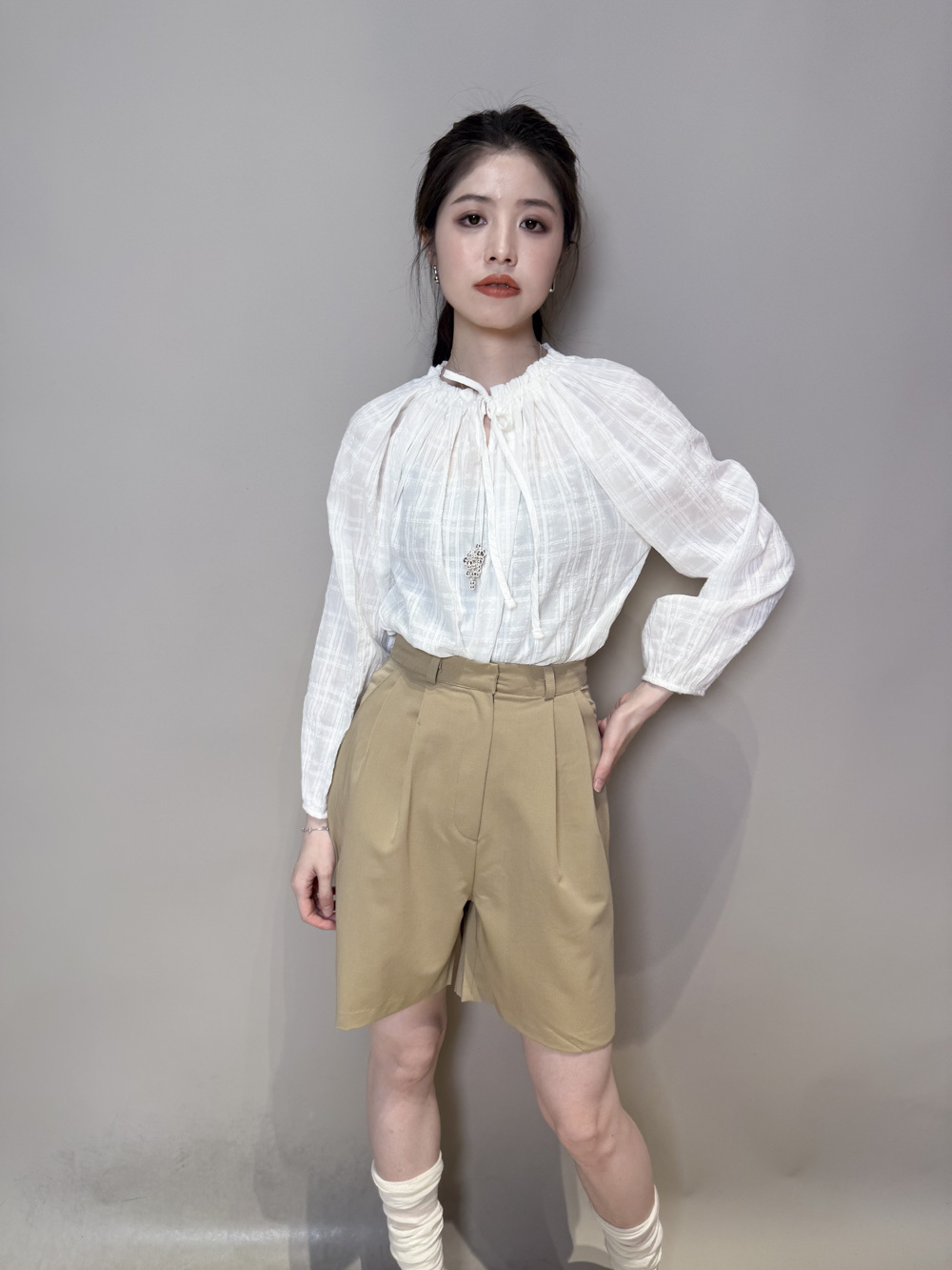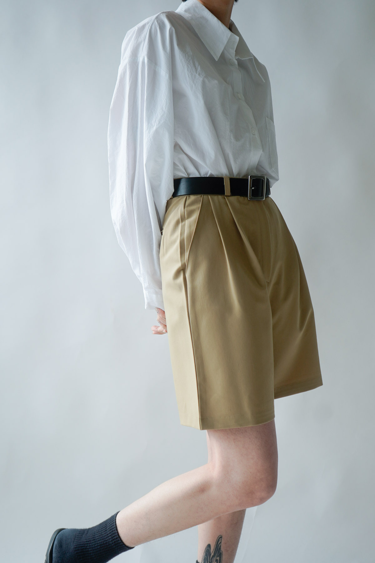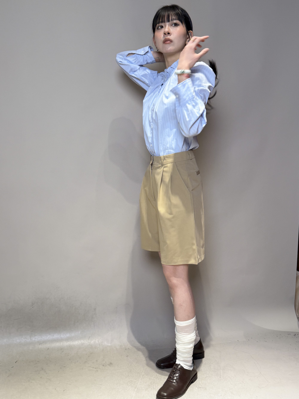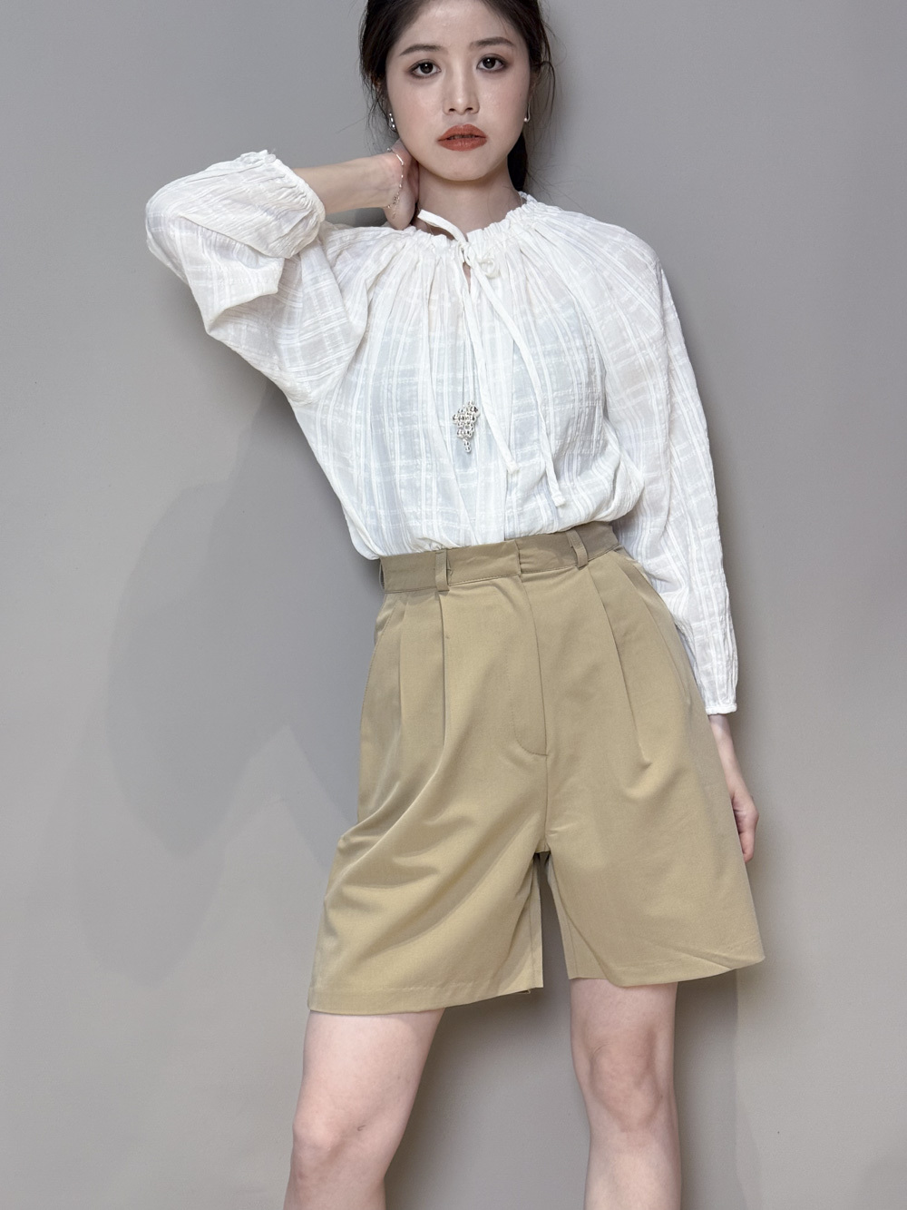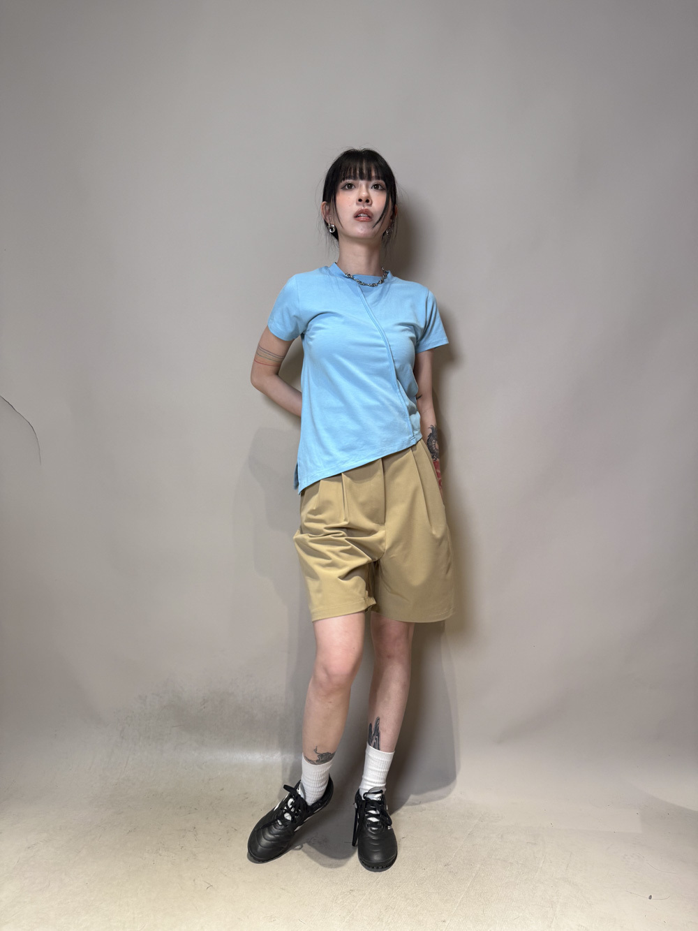 西裝褲質料 / 中短褲款 / 長度適中 大動作亦不怕走光 /
