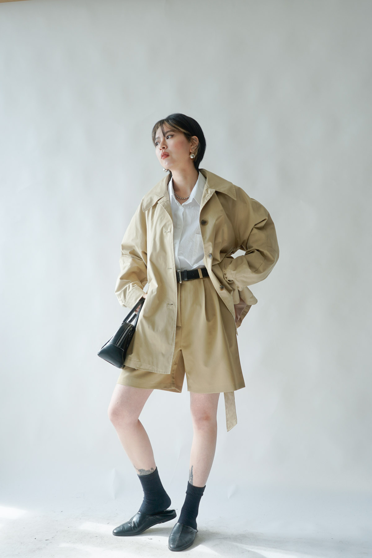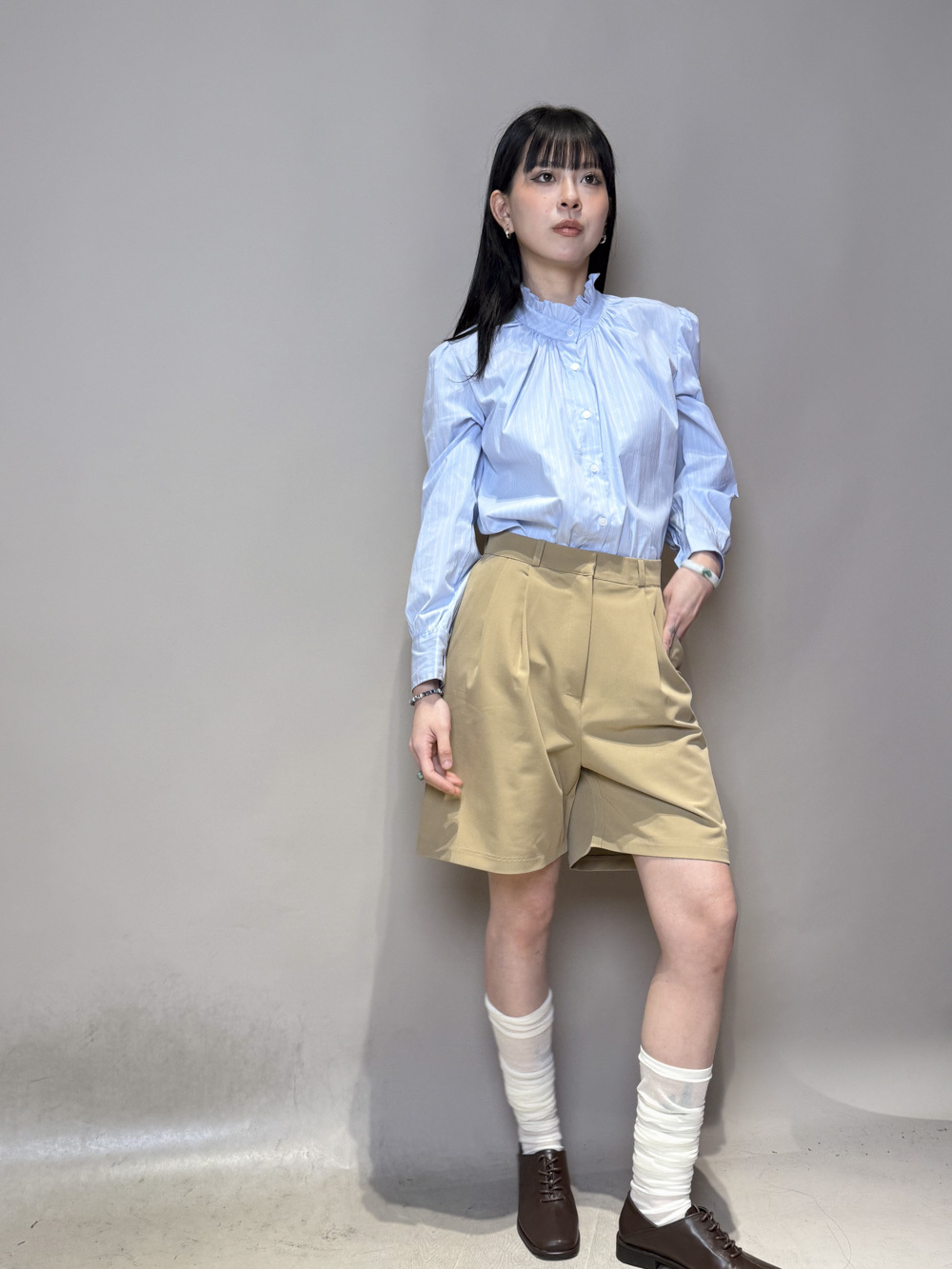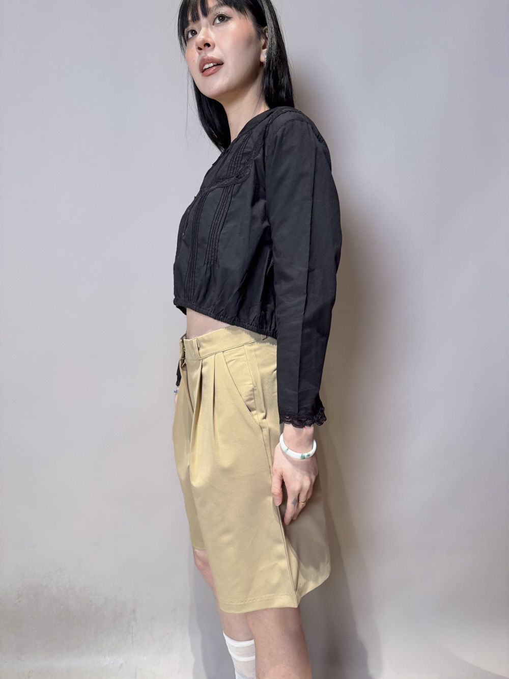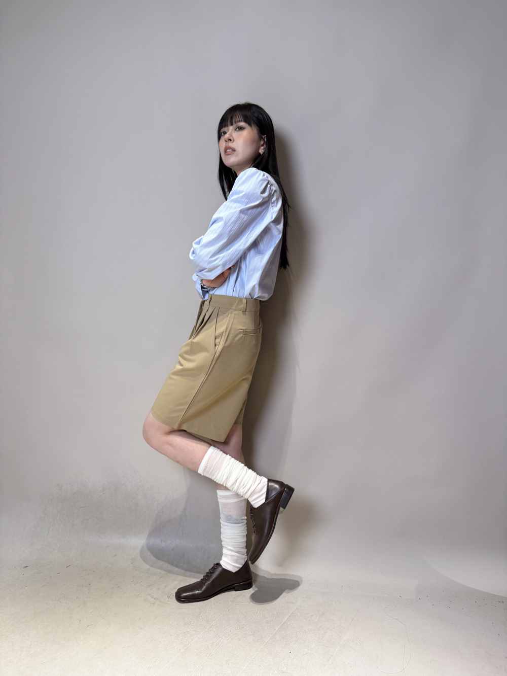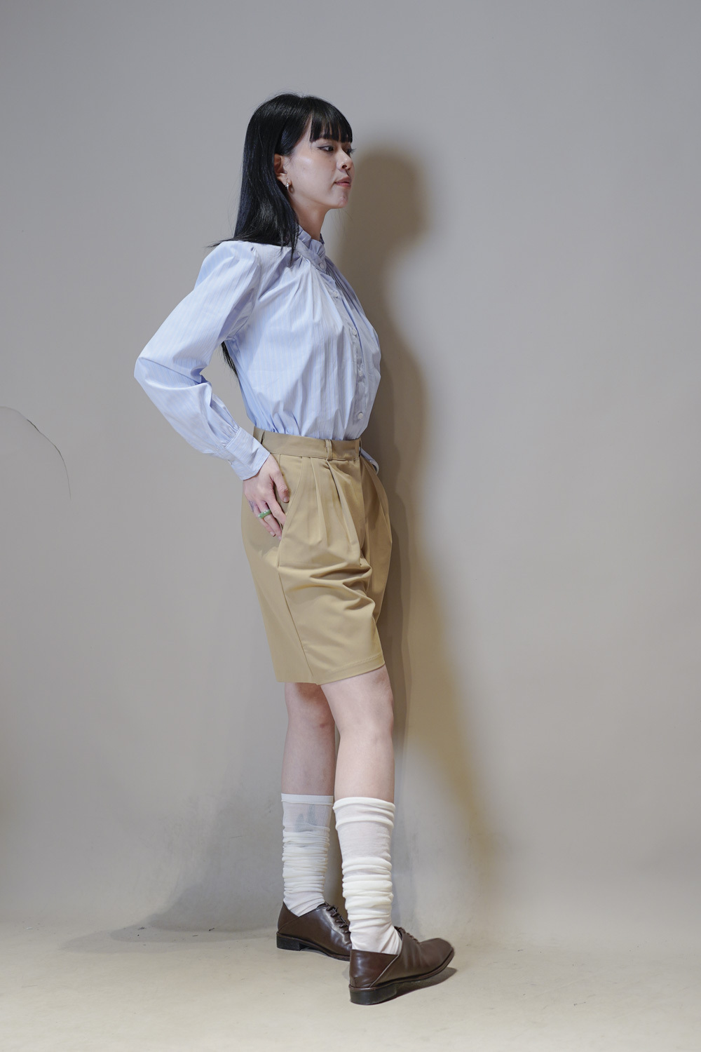 西裝褲質料 / 中短褲款 / 長度適中 大動作亦不怕走光 /