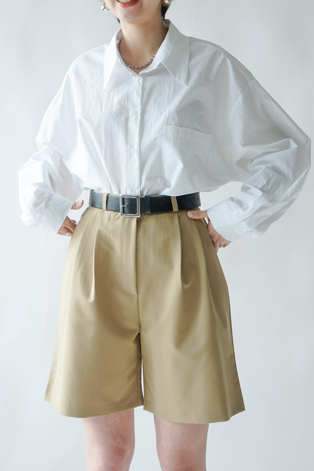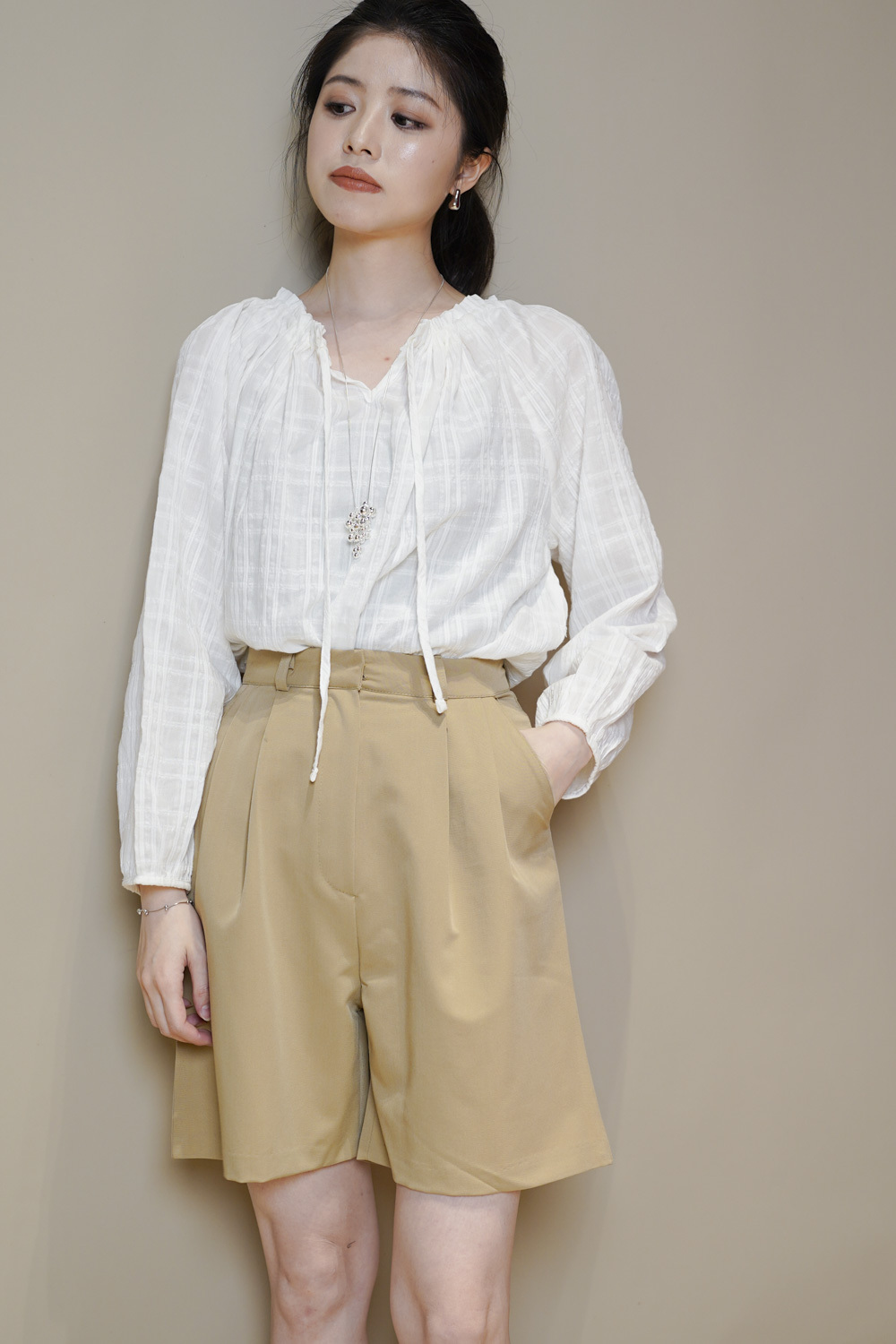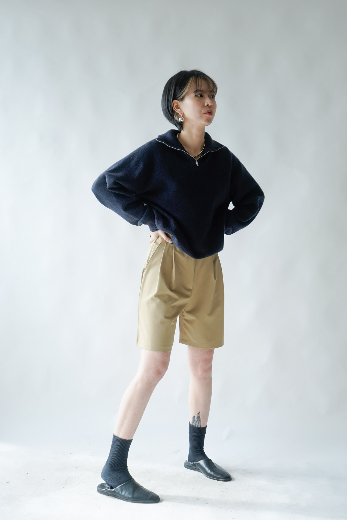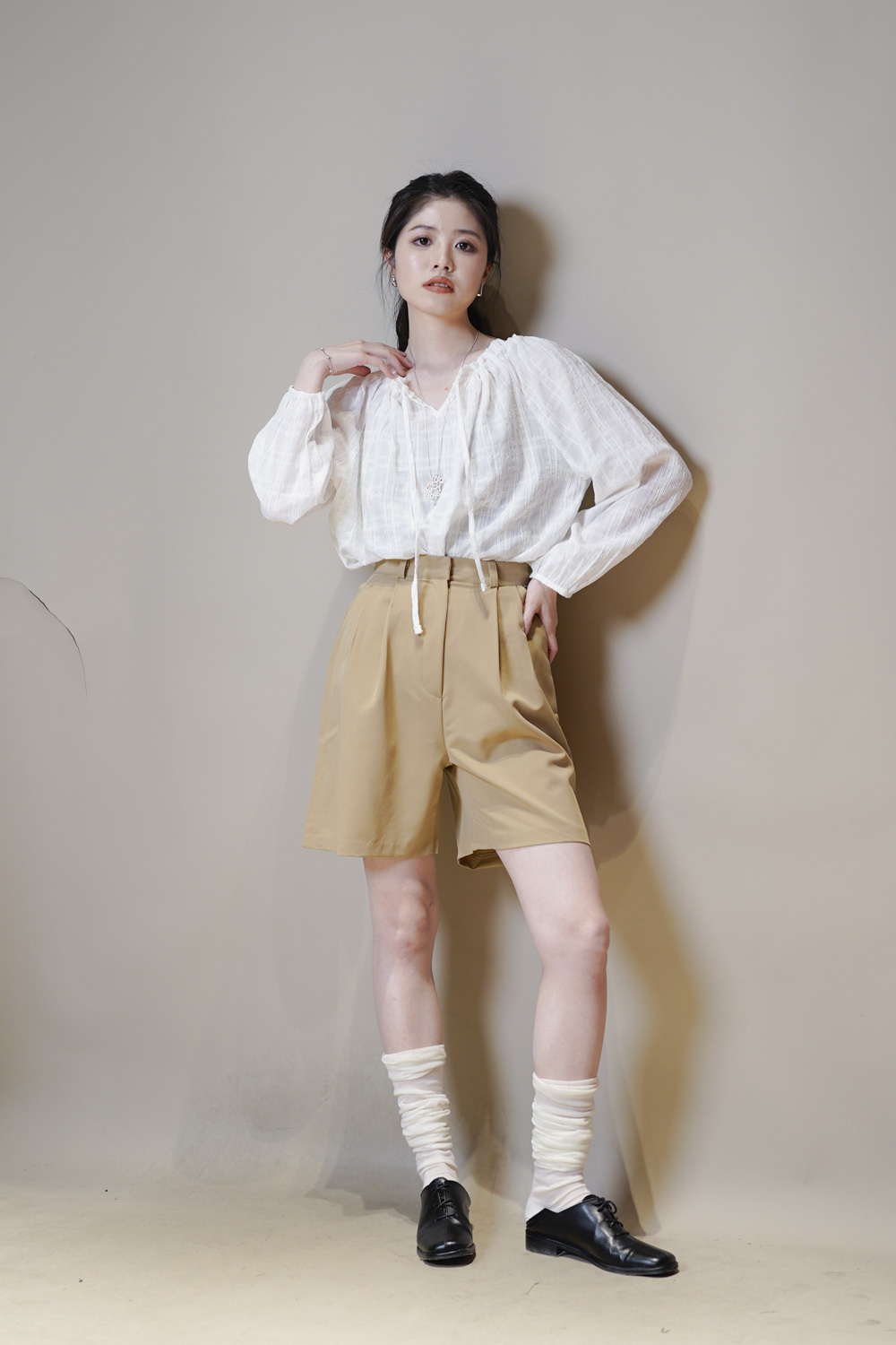 西裝褲質料 / 中短褲款 / 長度適中 大動作亦不怕走光 /