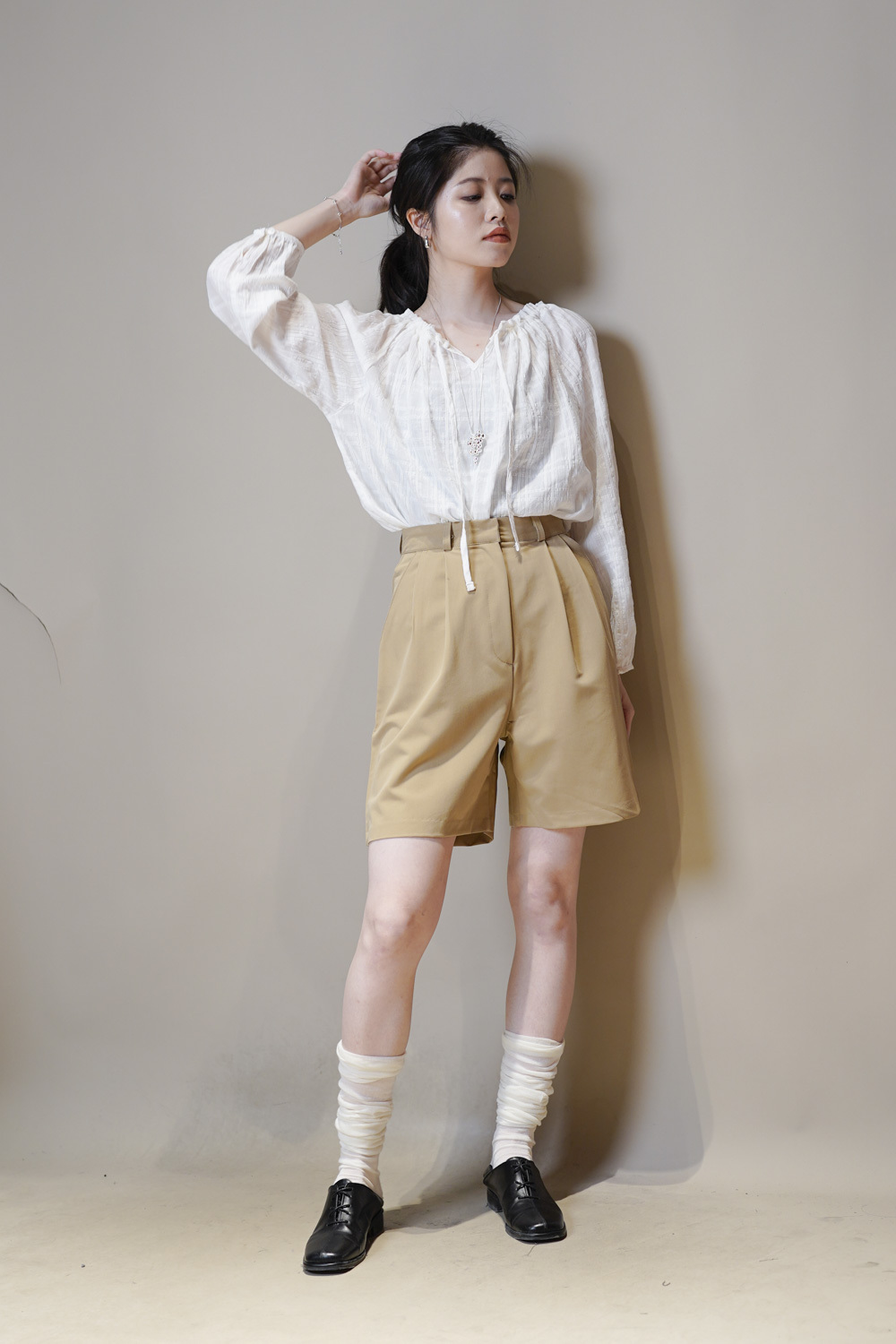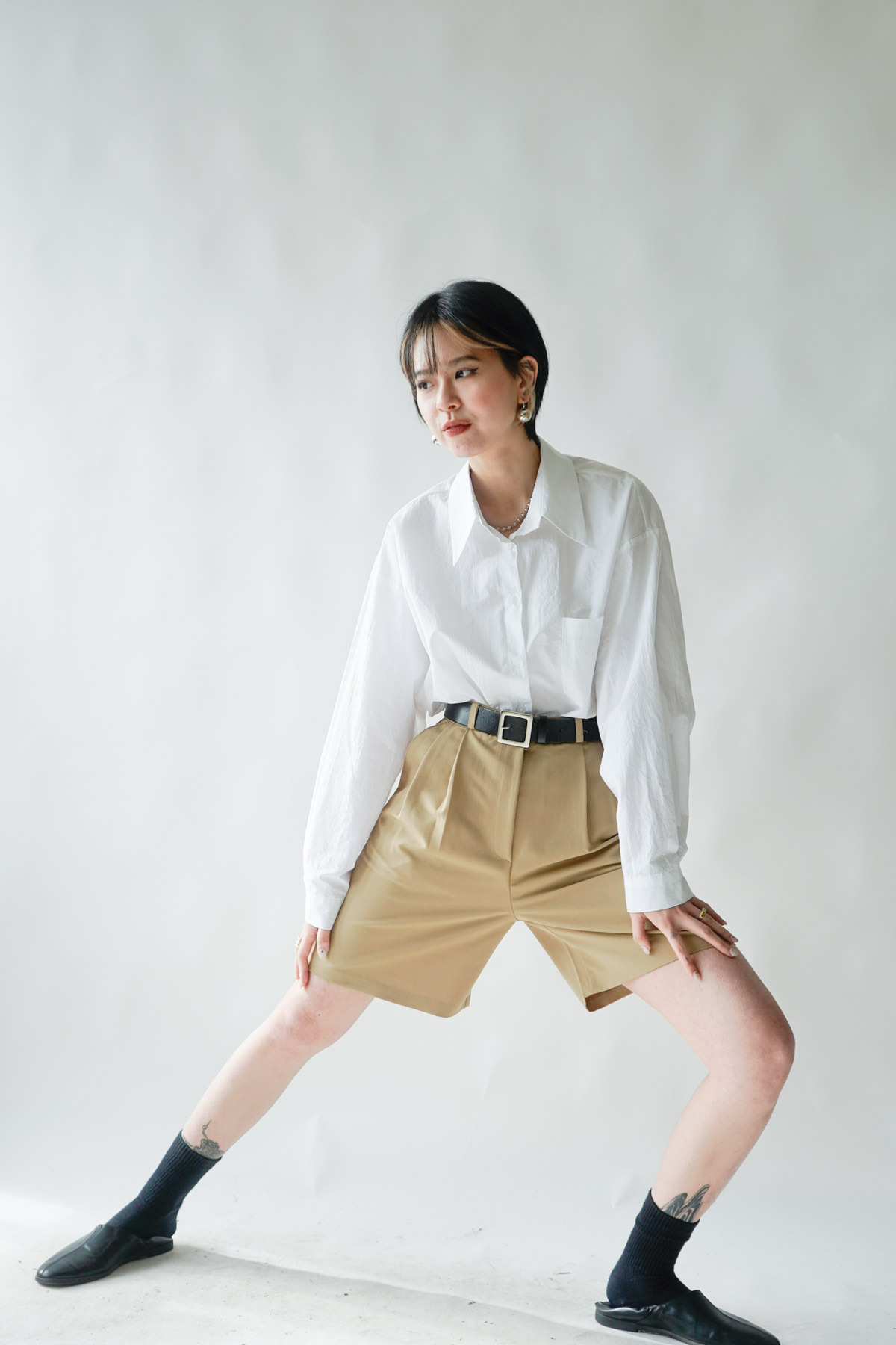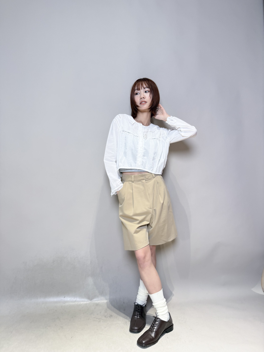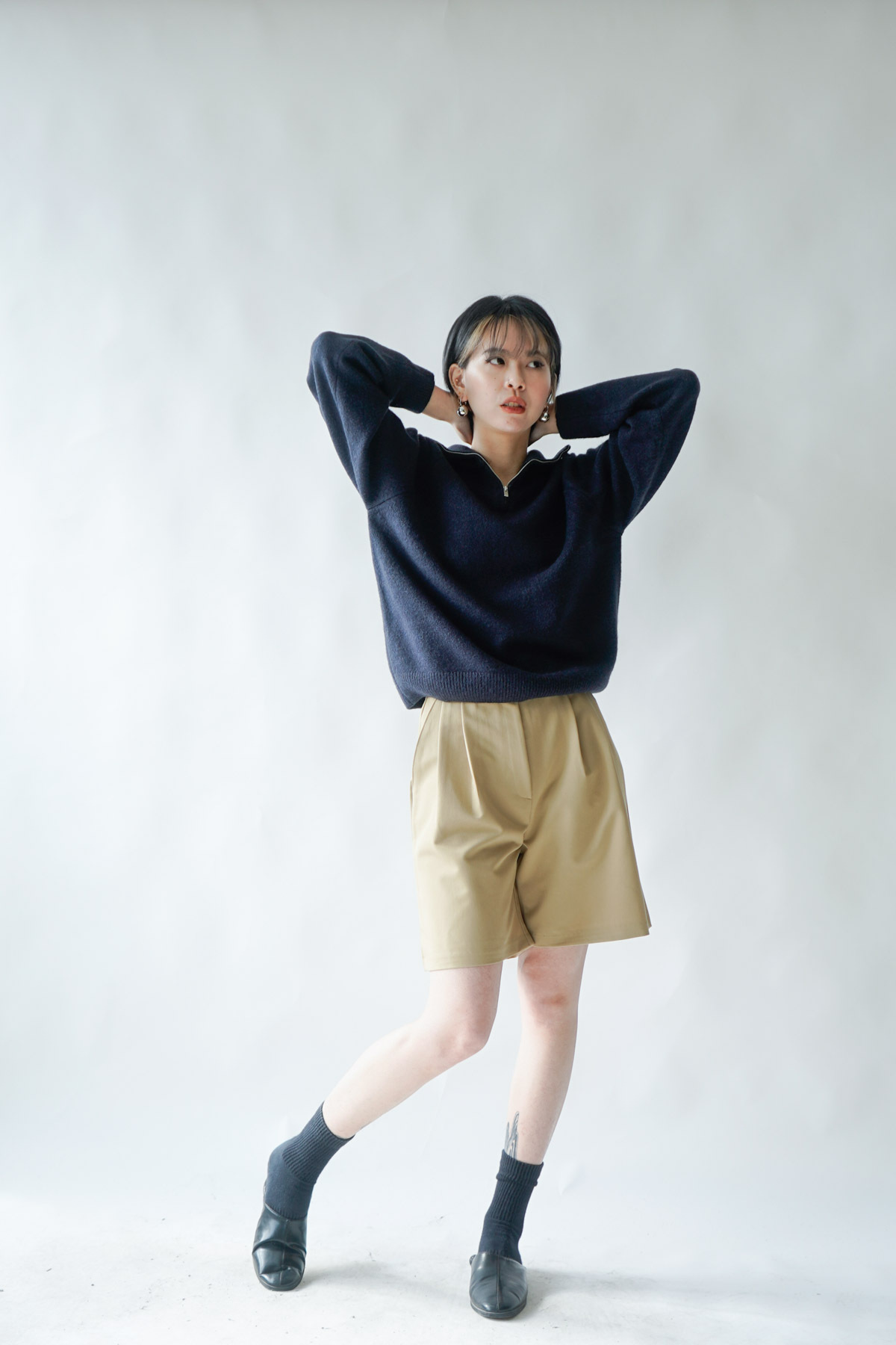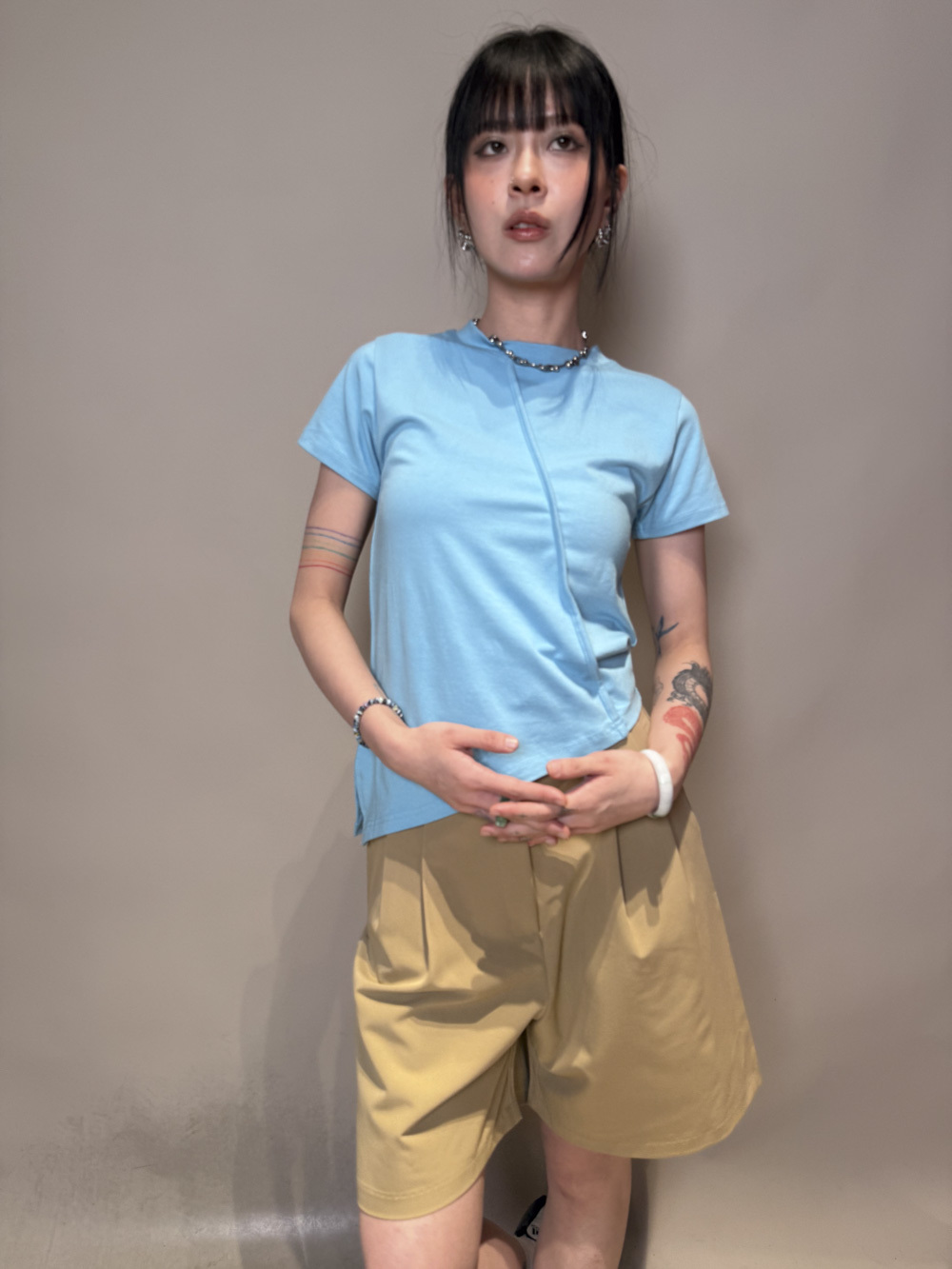 西裝褲質料 / 中短褲款 / 長度適中 大動作亦不怕走光 /