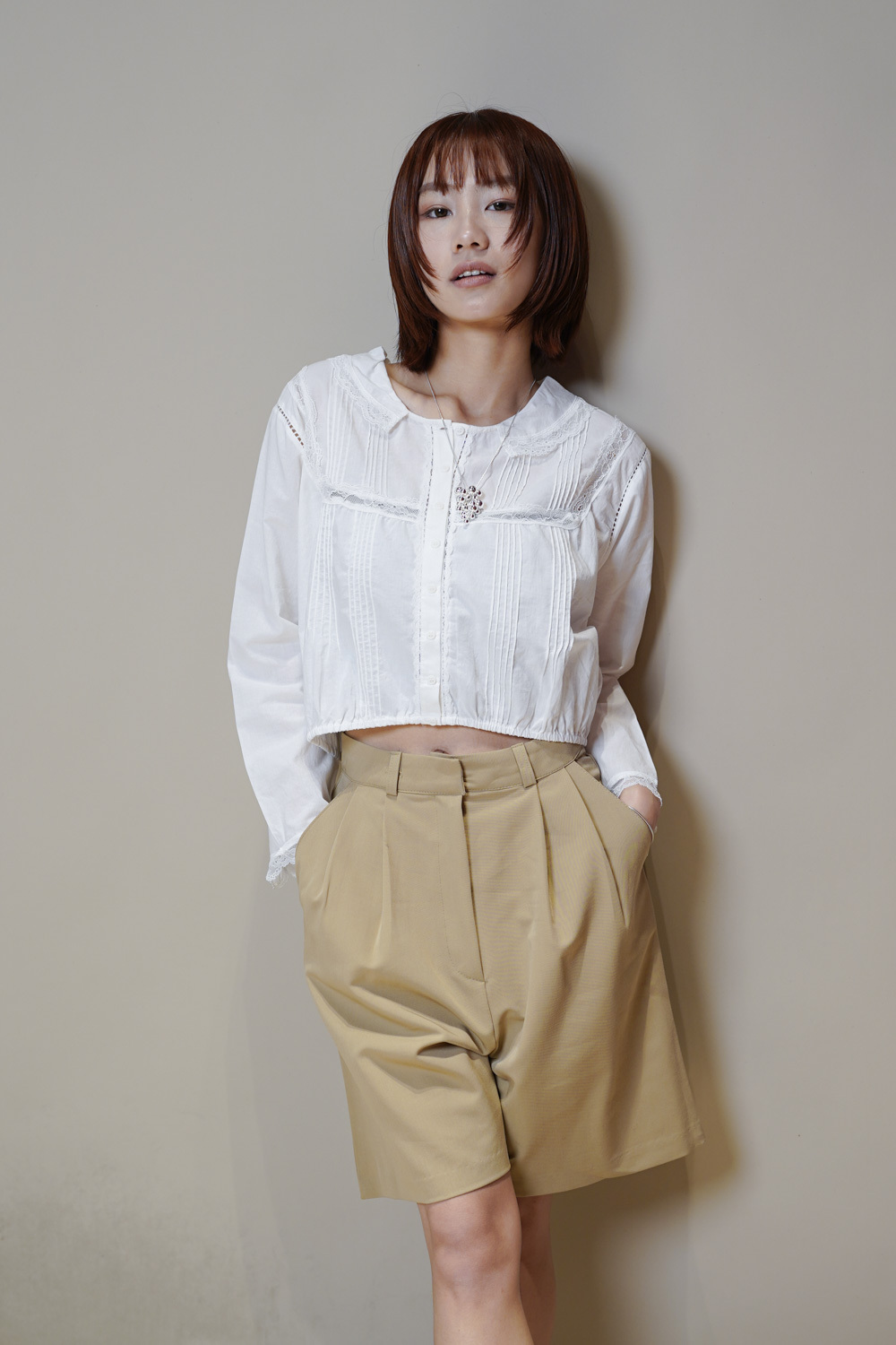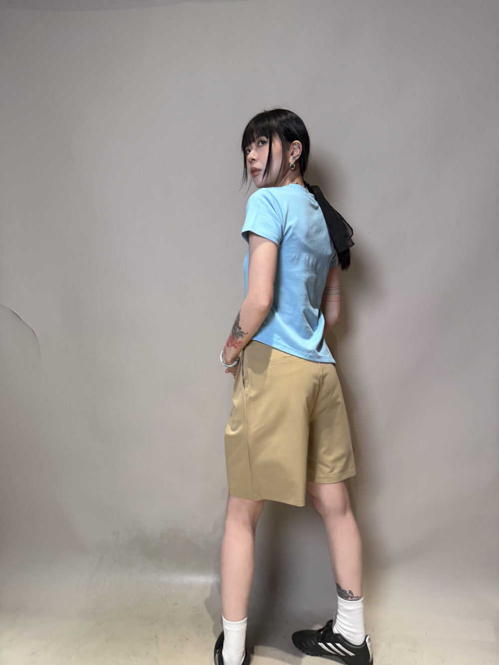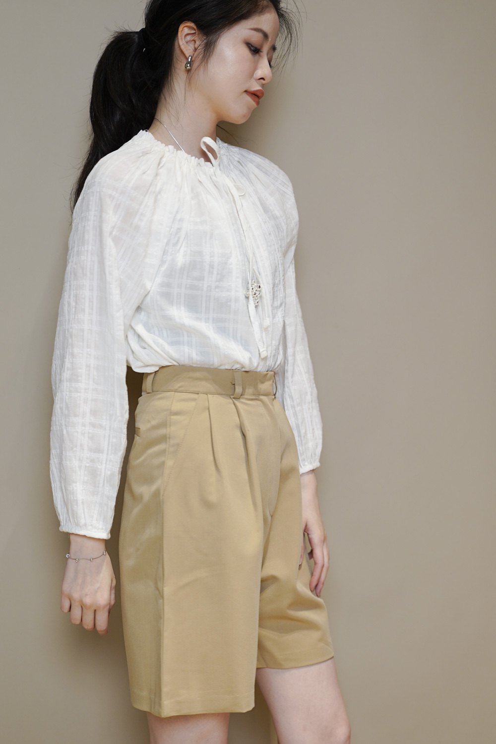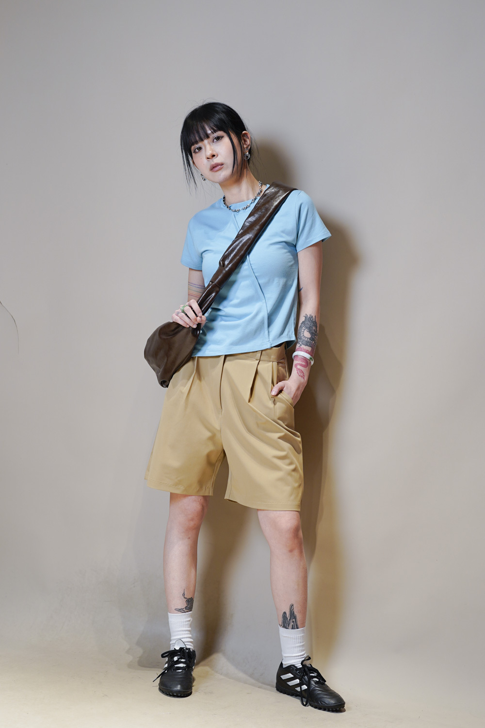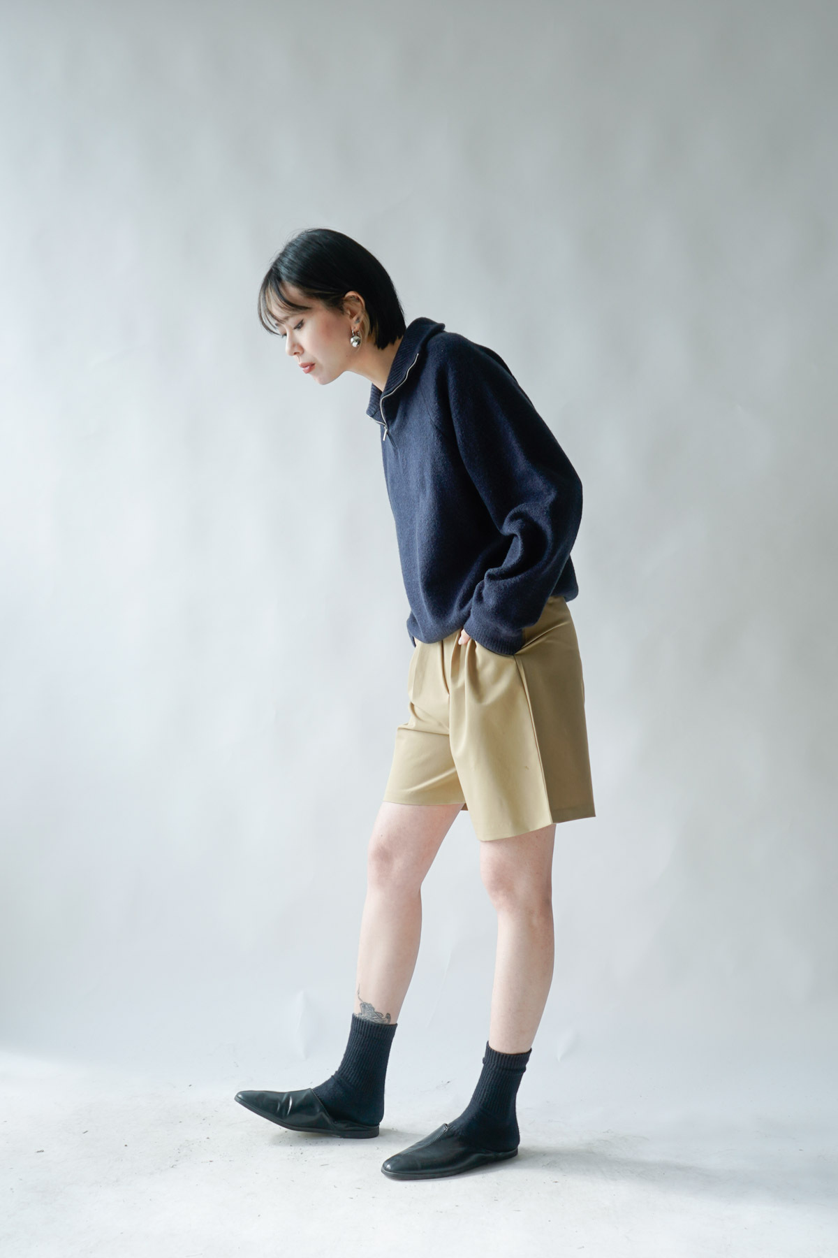 西裝褲質料 / 中短褲款 / 長度適中 大動作亦不怕走光 /