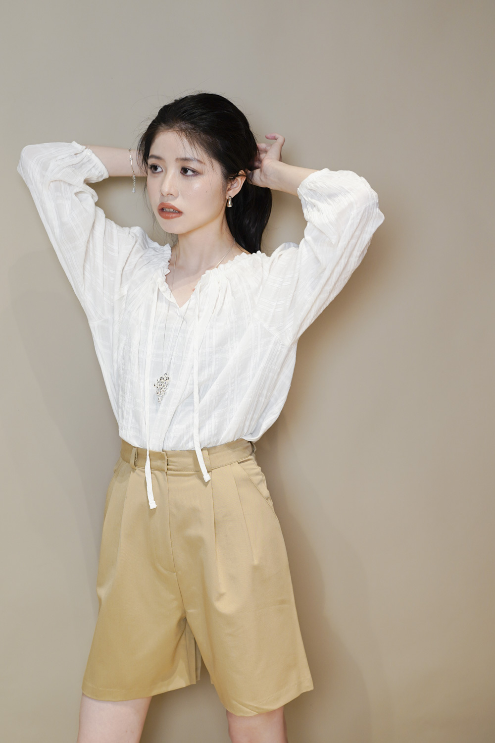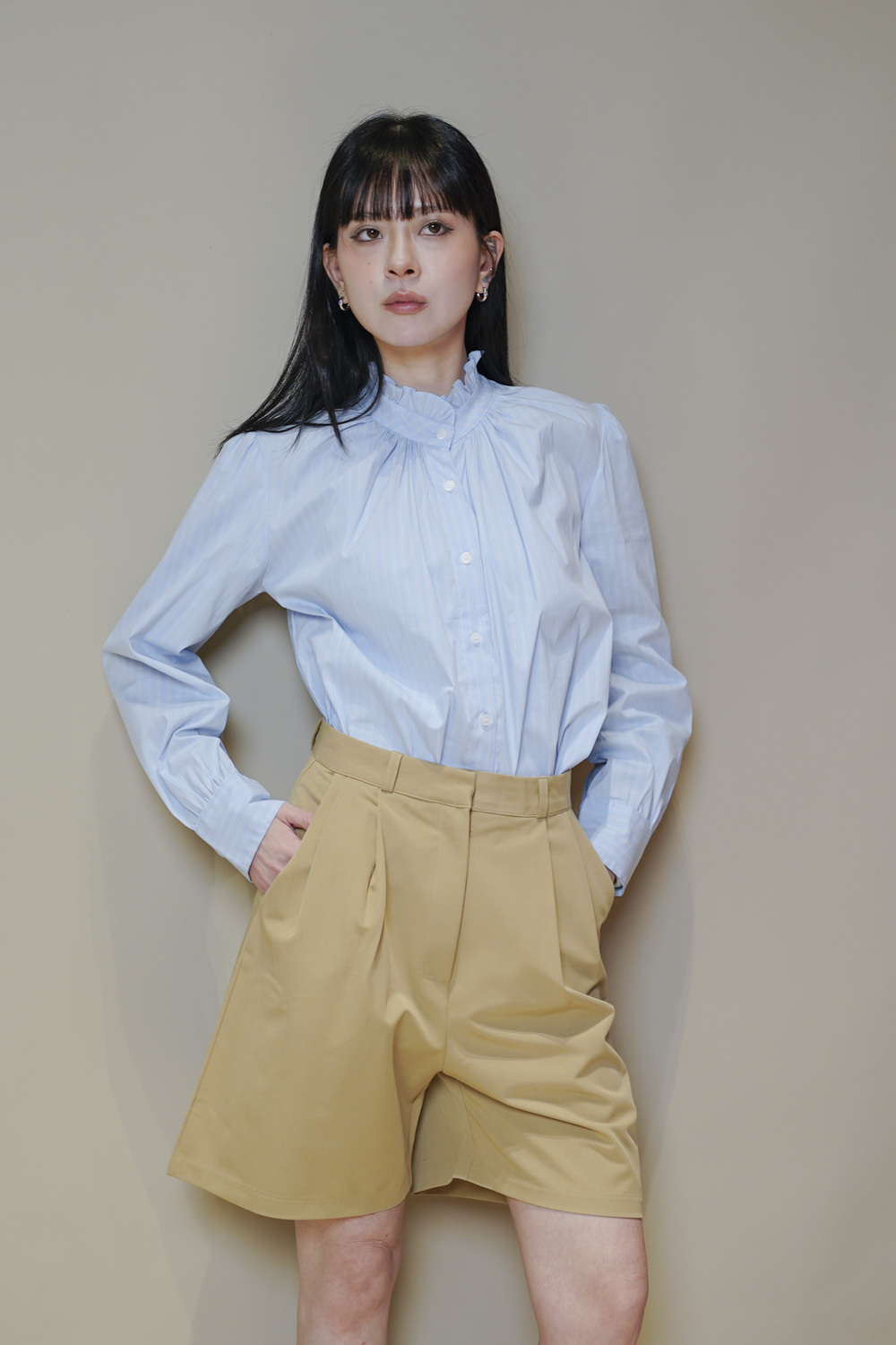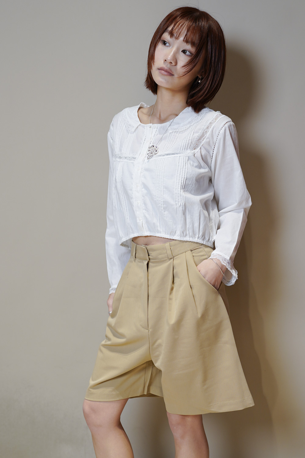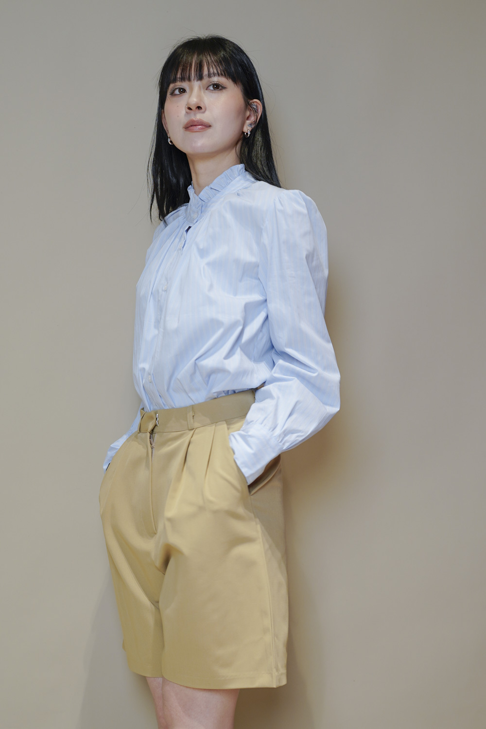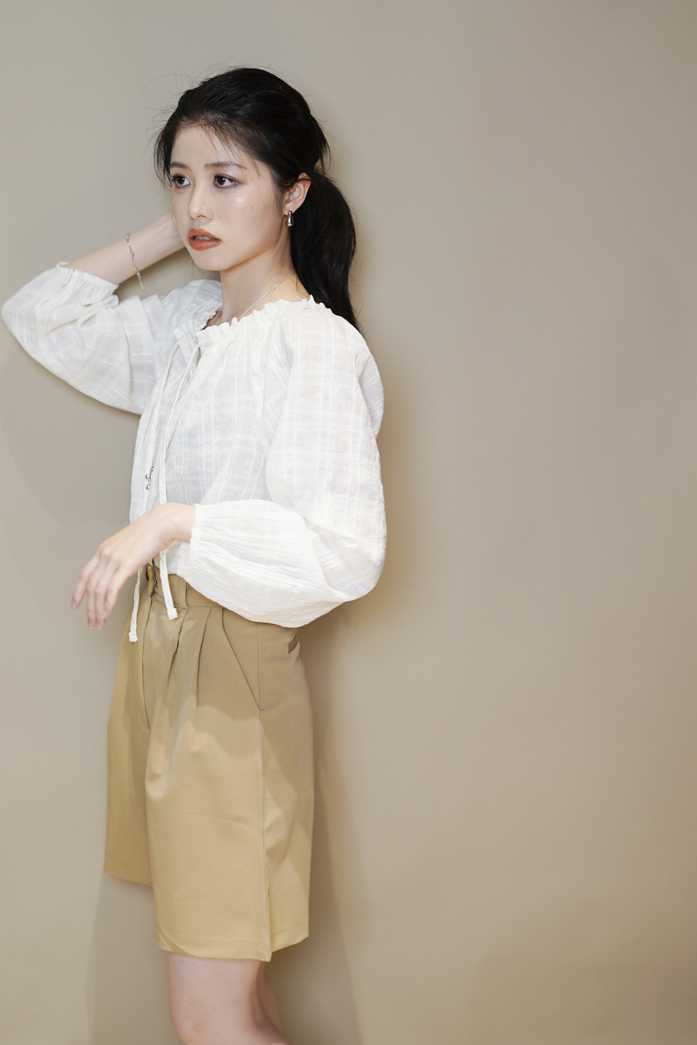 西裝褲質料 / 中短褲款 / 長度適中 大動作亦不怕走光 /