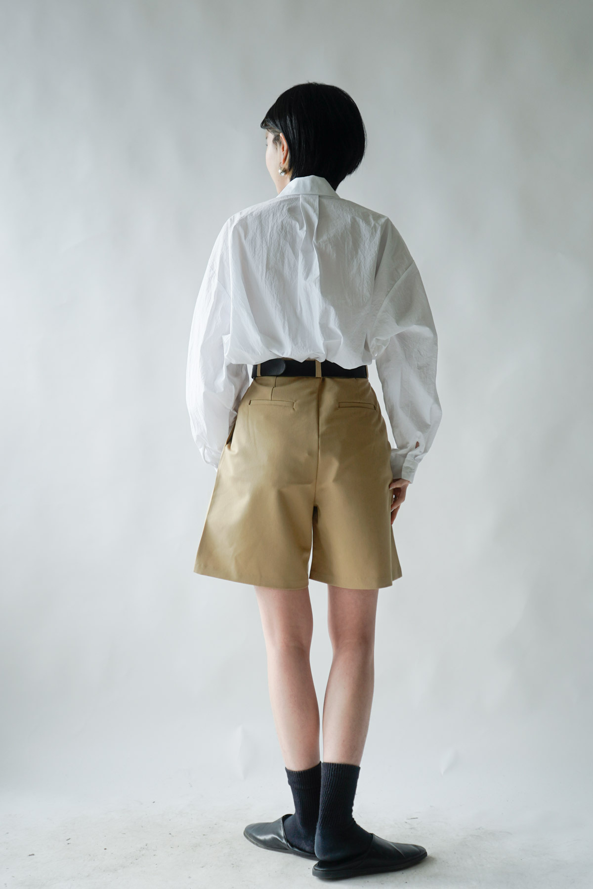M: Waist: 69cm (27”) / Hip: 112cm (44”)/ Rise: 34cm / Length: 50cm / Thigh width: 64cm / Hem: 66cm