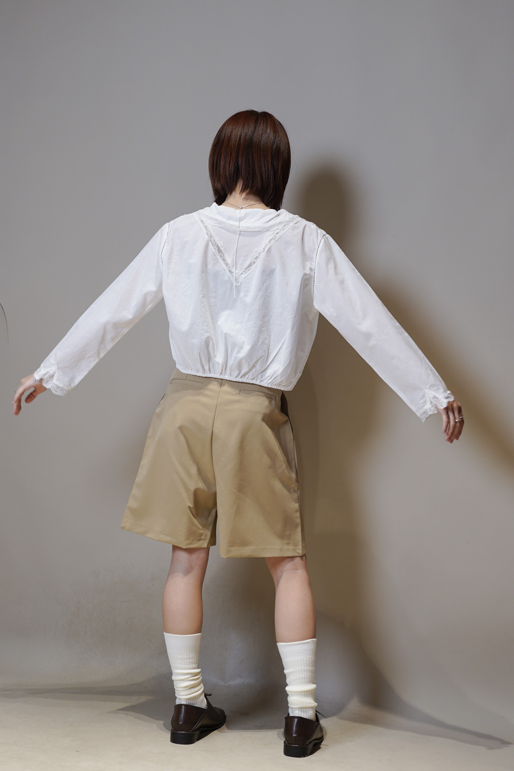 S: Waist: 64cm (25”) / Hip: 107cm (42”)/ Rise: 33cm / Length: 50cm / Thigh width: 62cm / Hem: 64cm