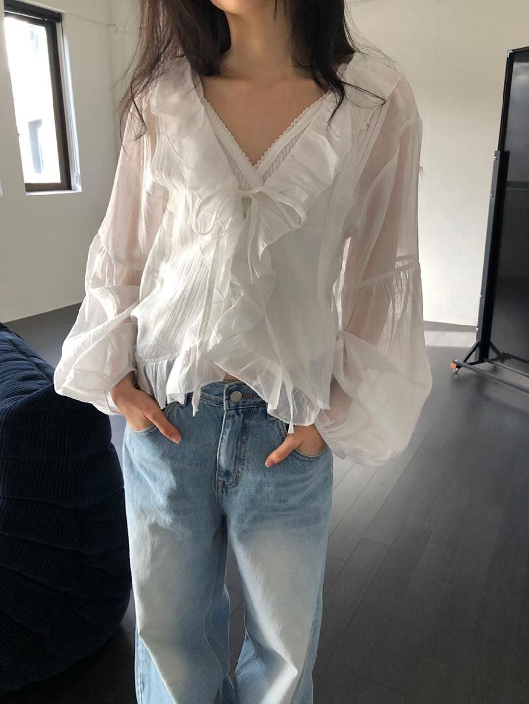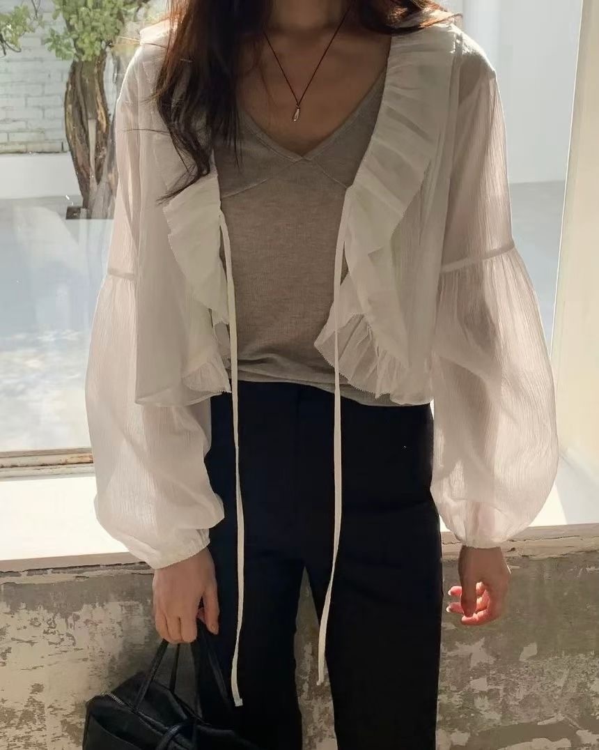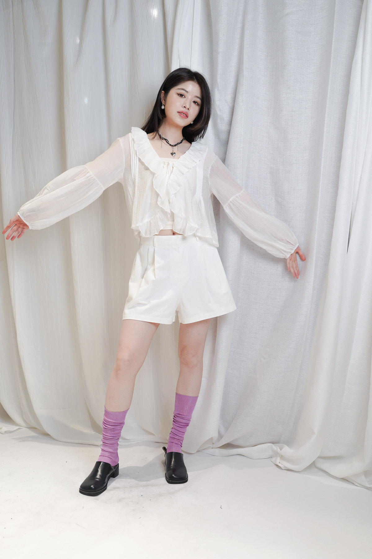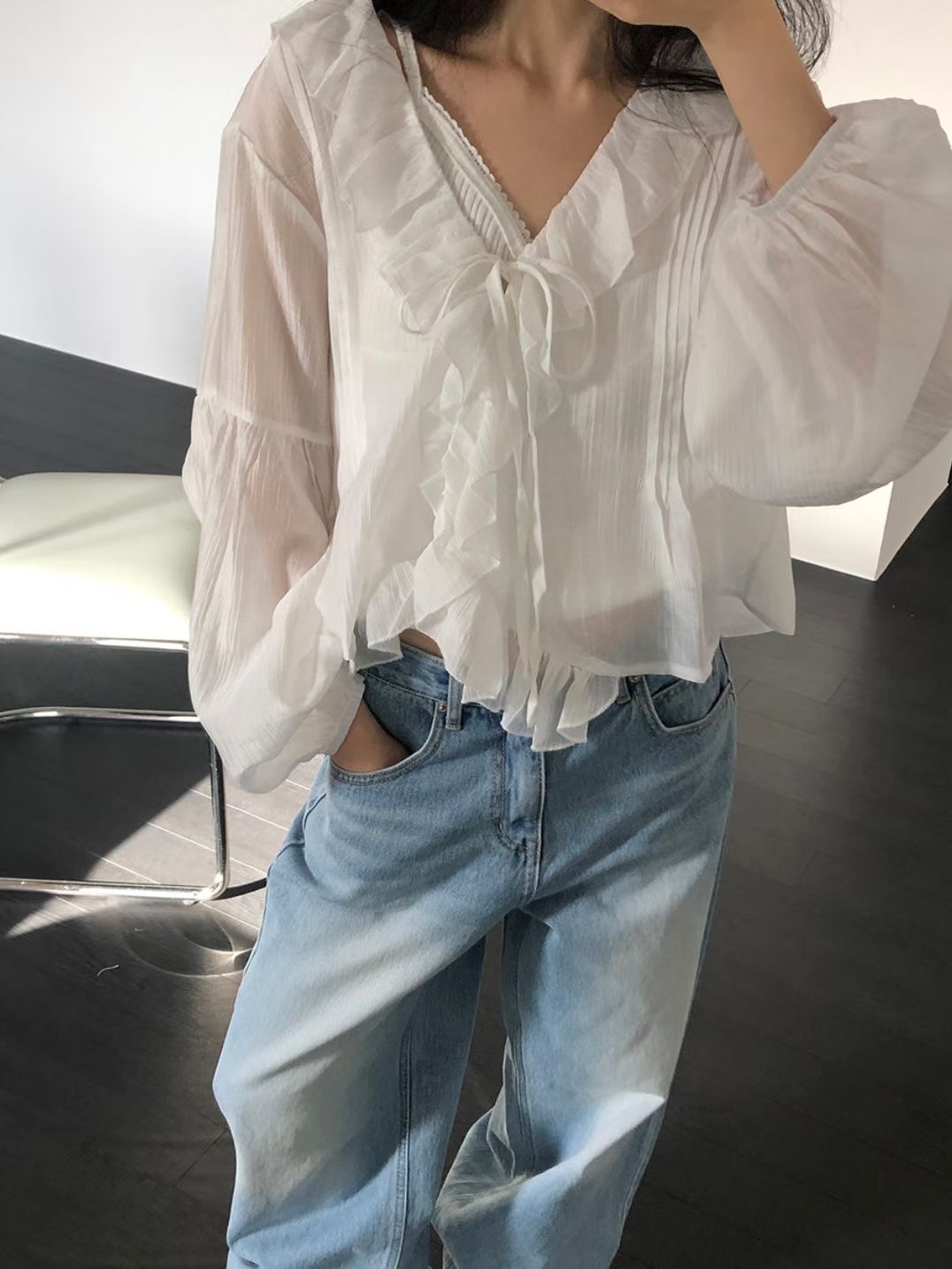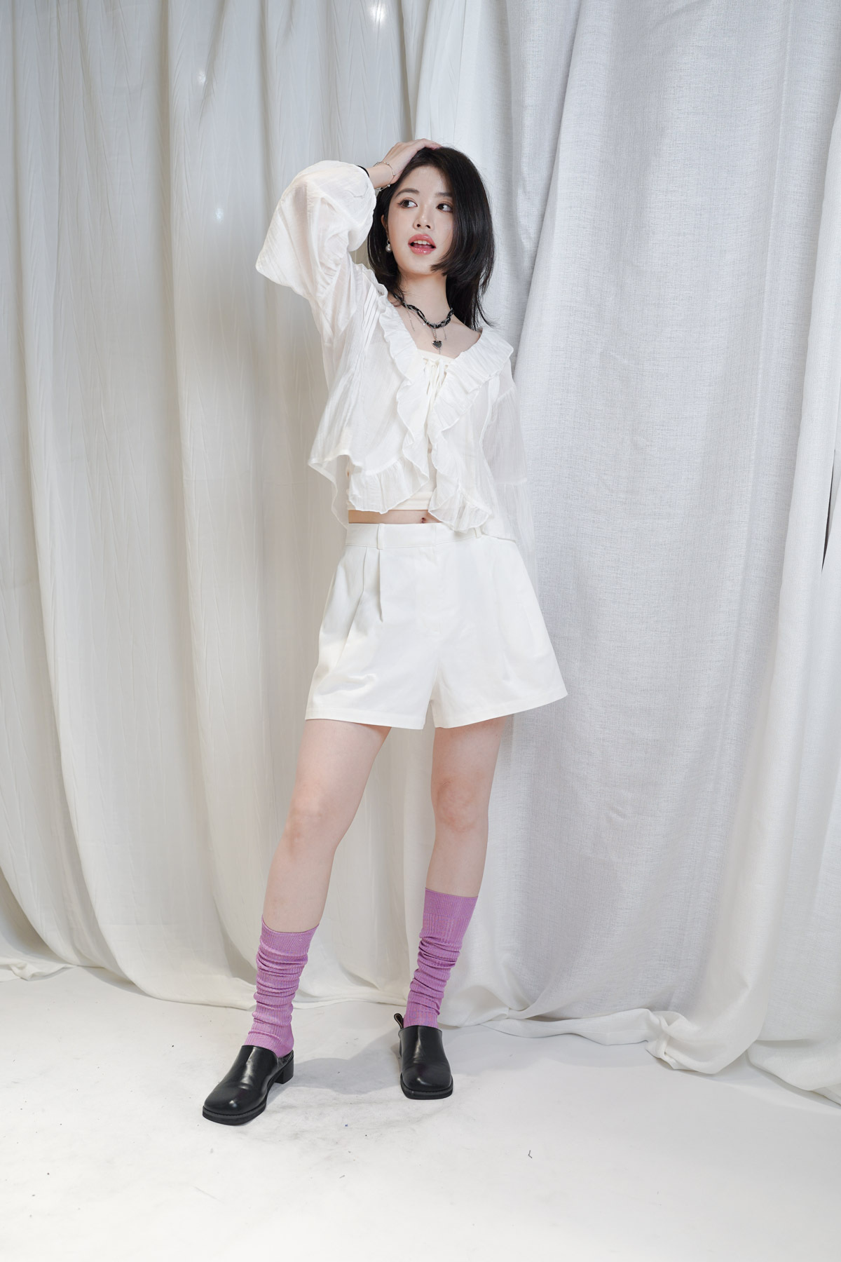 / 大 V 領連 Ruffle 視覺上廷伸頸部線條 修飾肩頸線條 線臉小