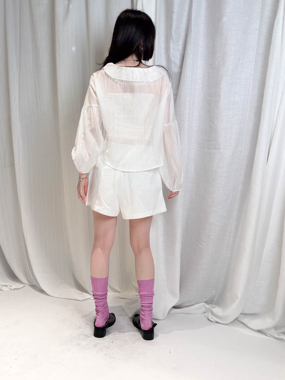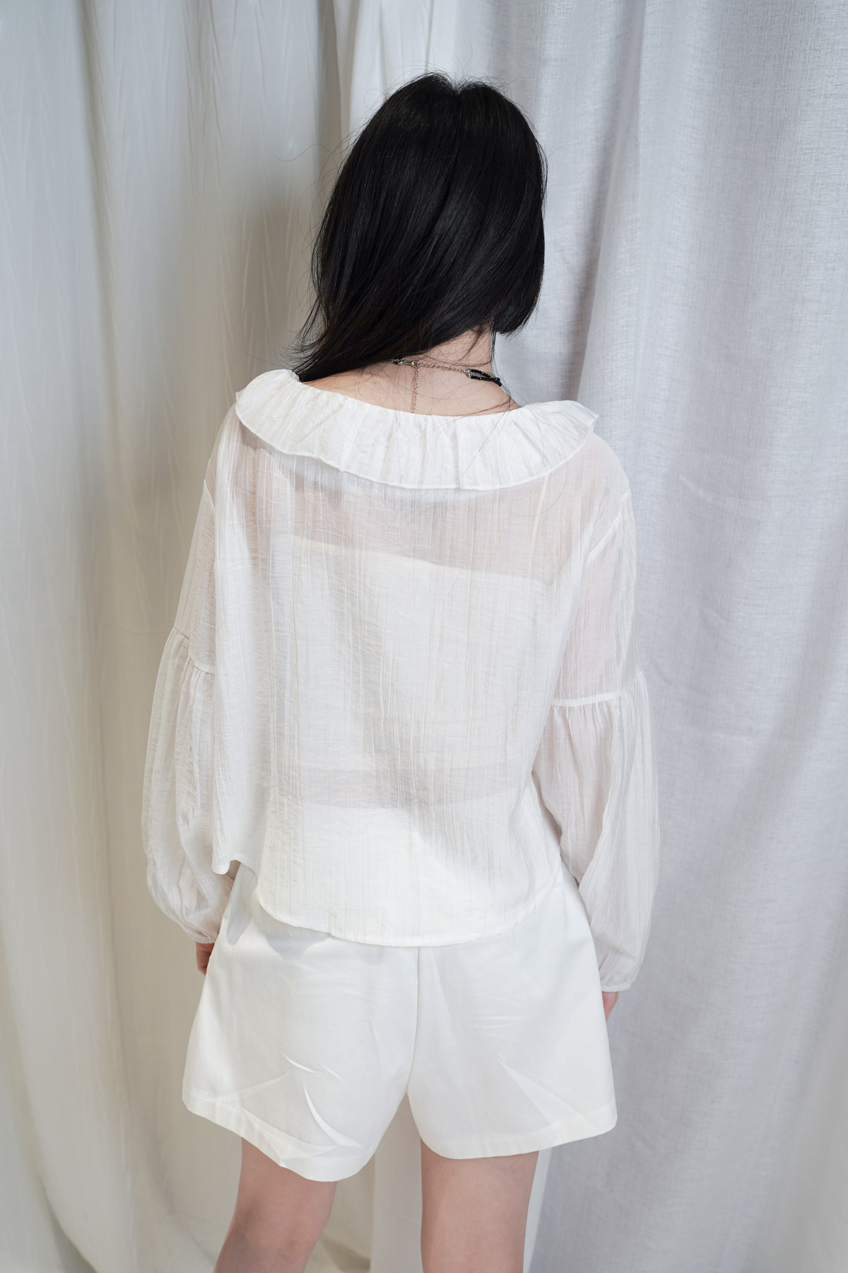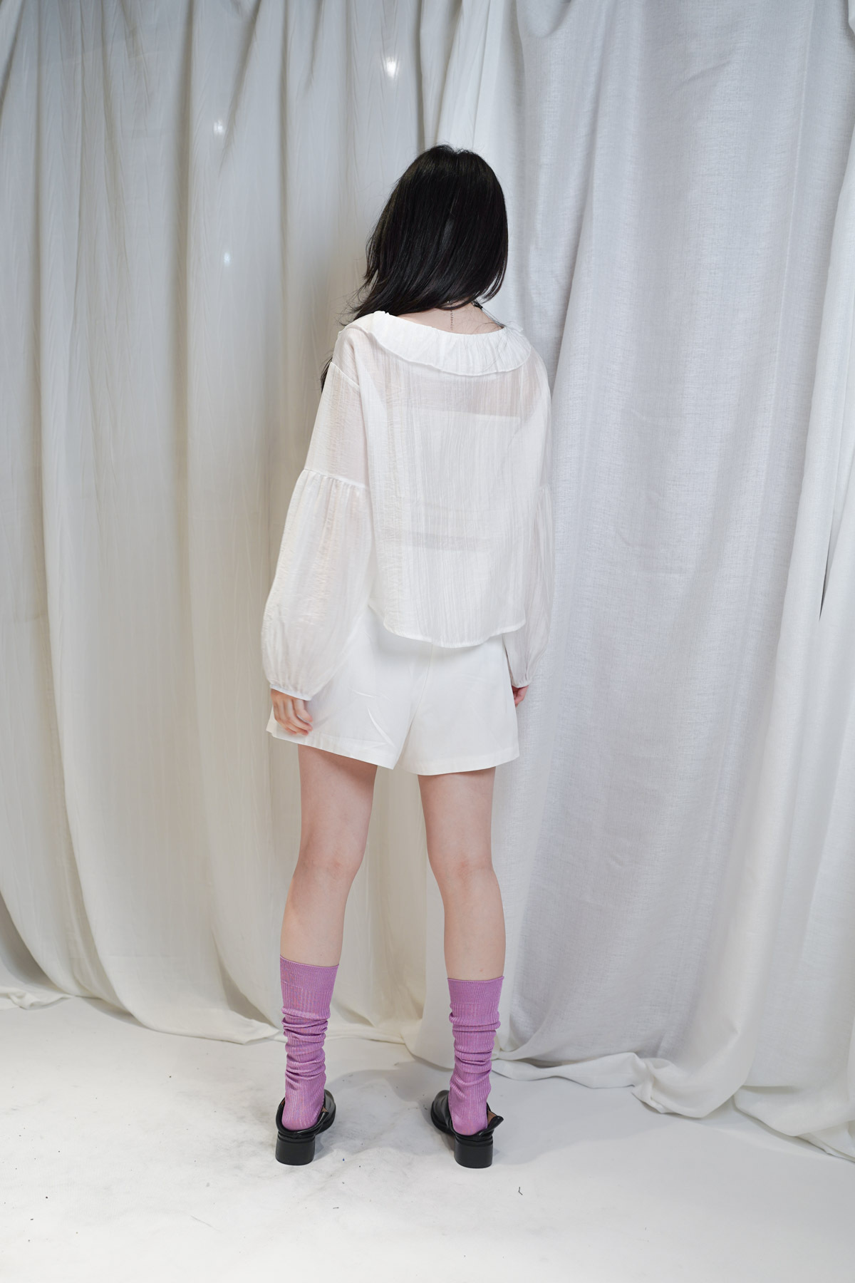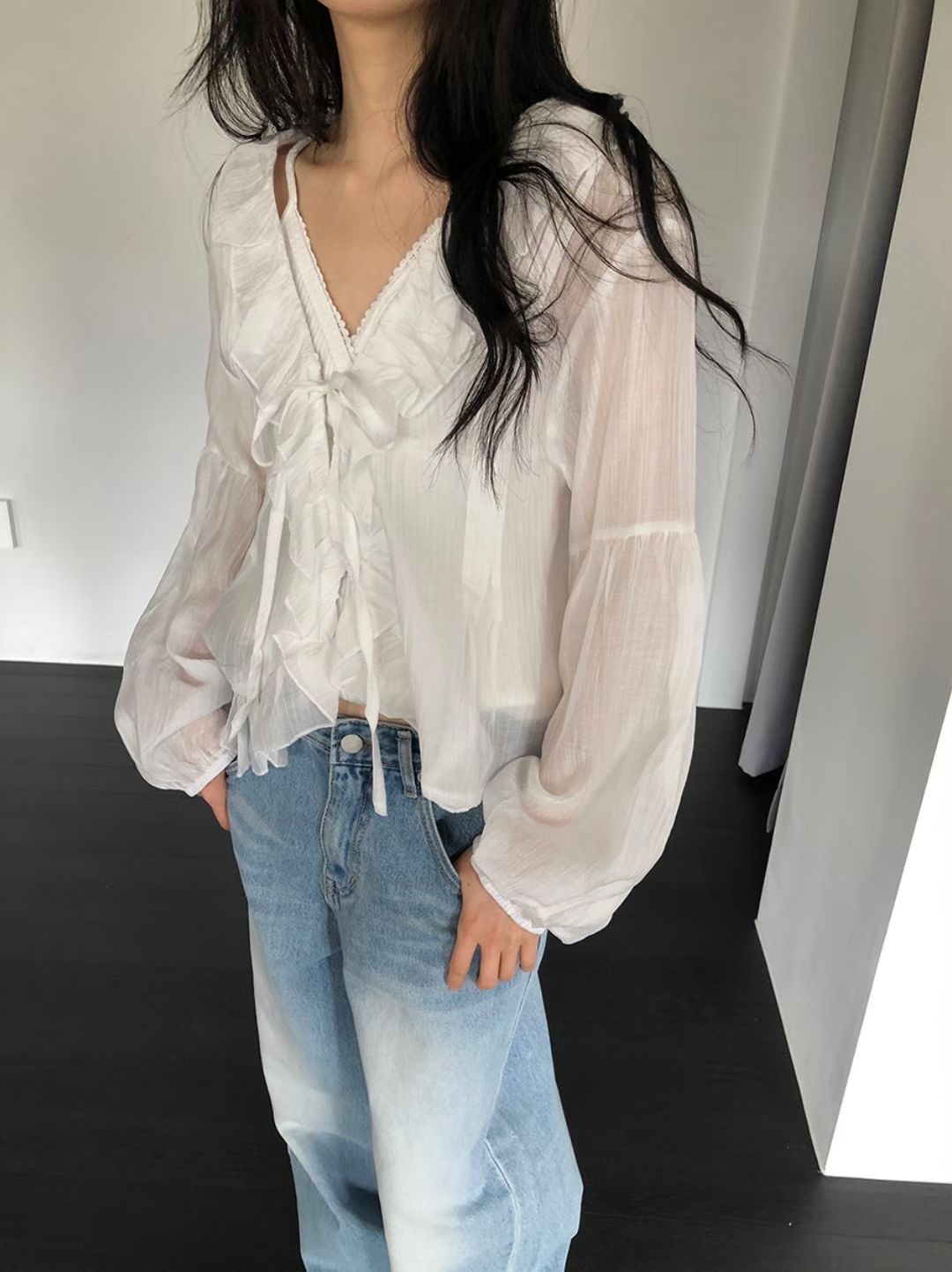 / 大 V 領連 Ruffle 視覺上廷伸頸部線條 修飾肩頸線條 線臉小