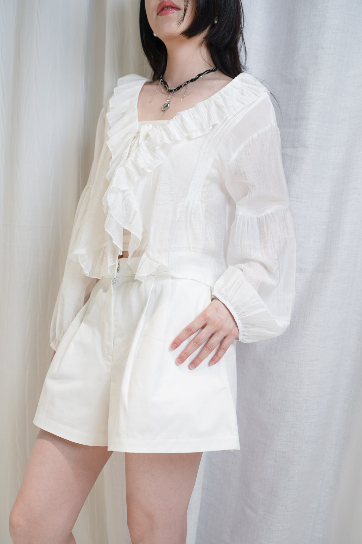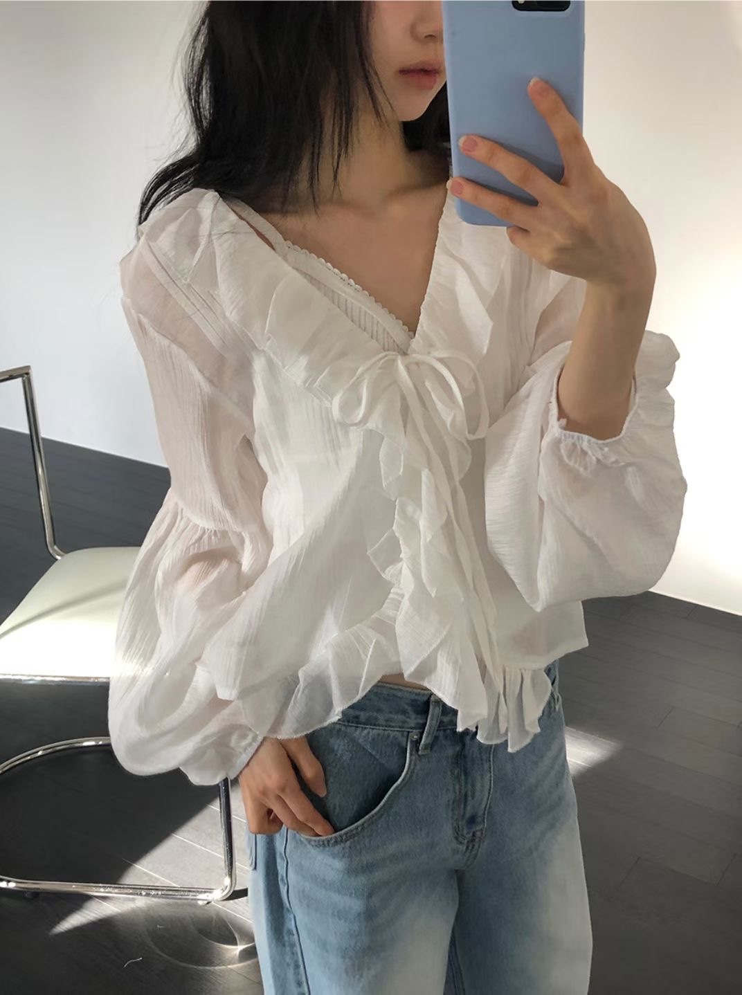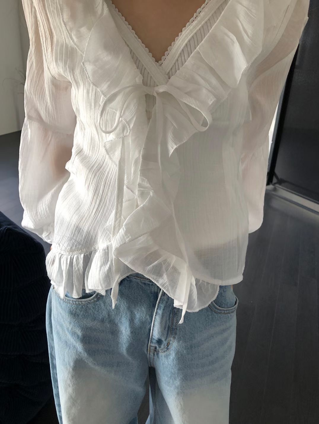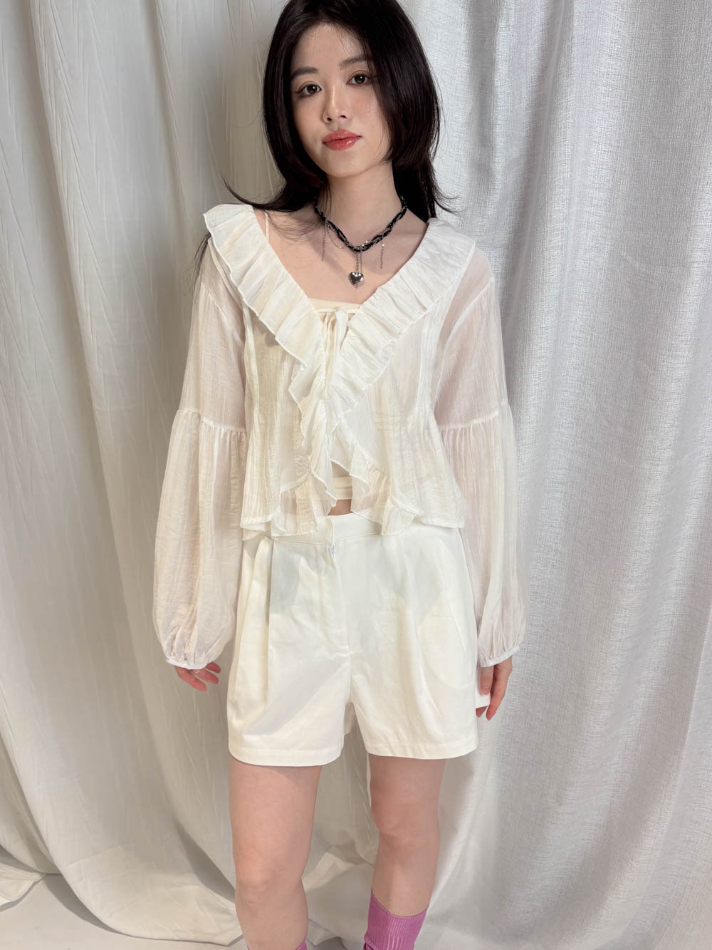 / 大 V 領連領口大 Ruffle 設計 修飾肩頸線條