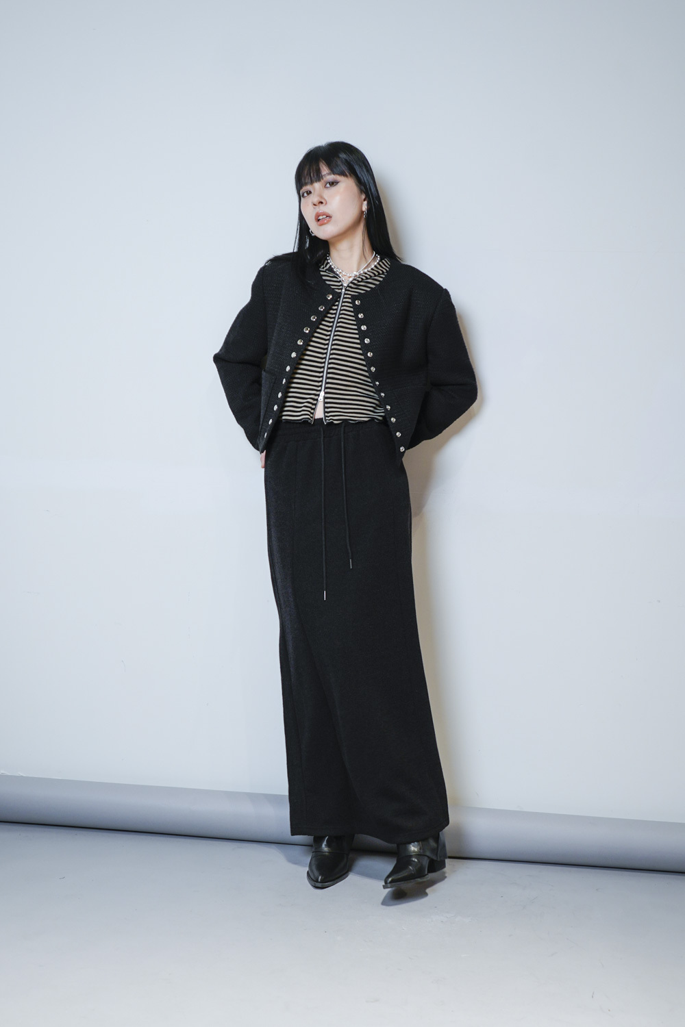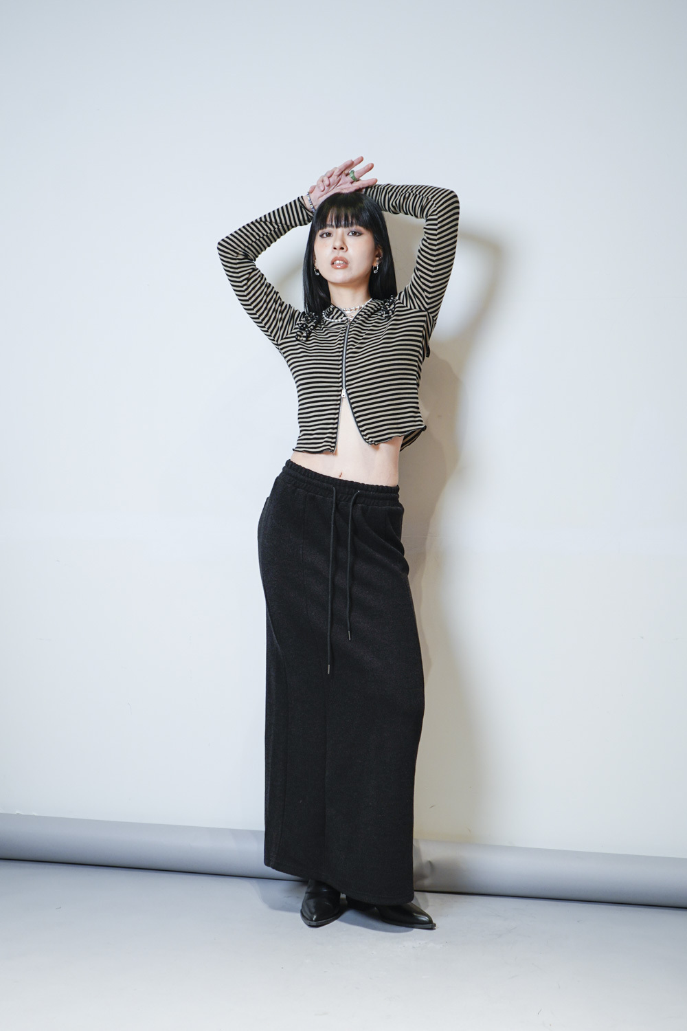 cotton relax long susu skirt (BEIGE/ BLACK)