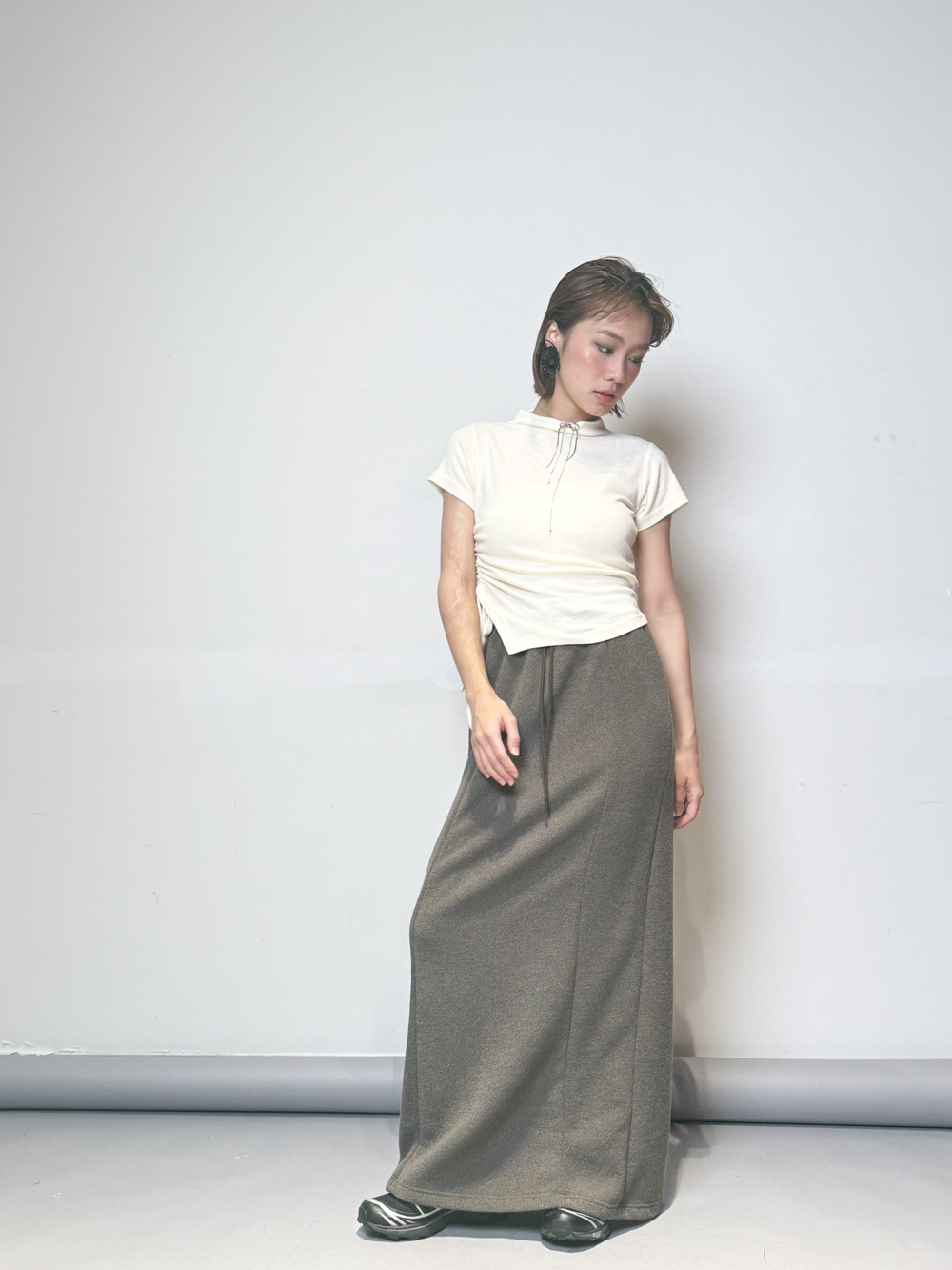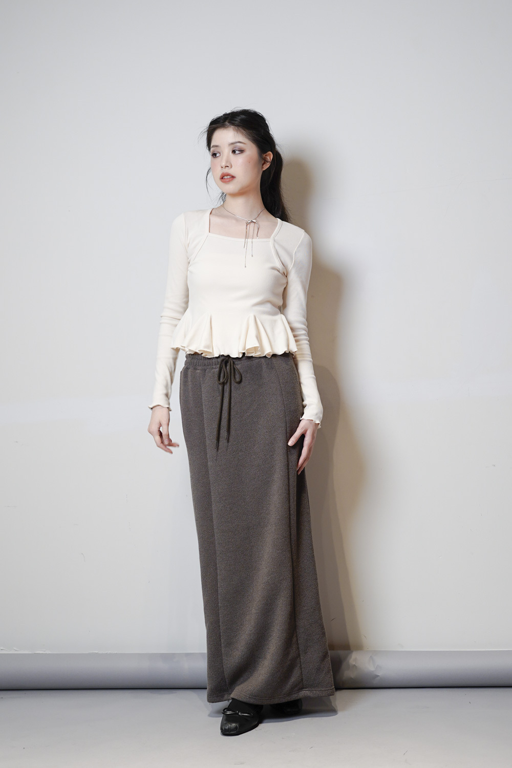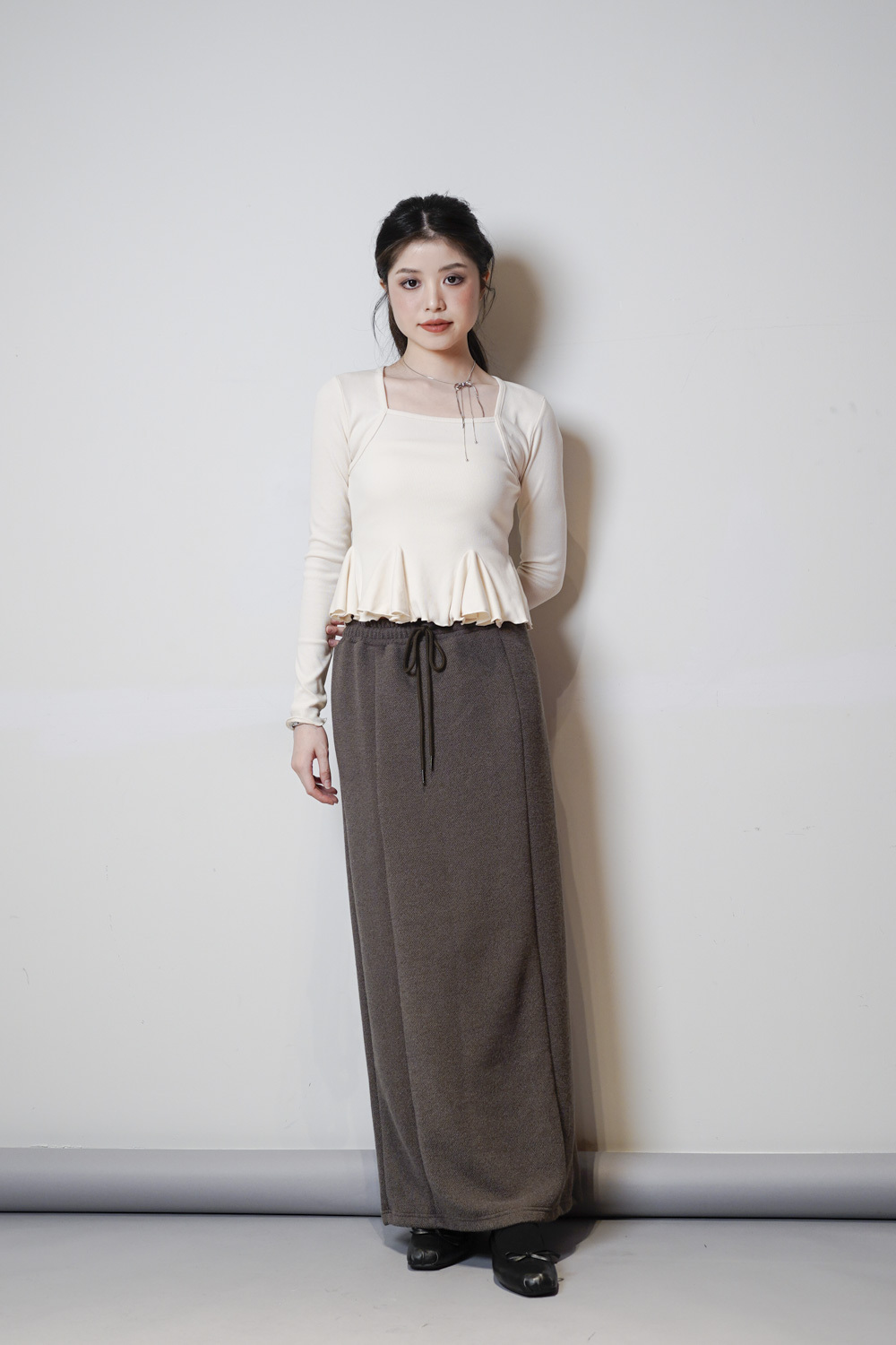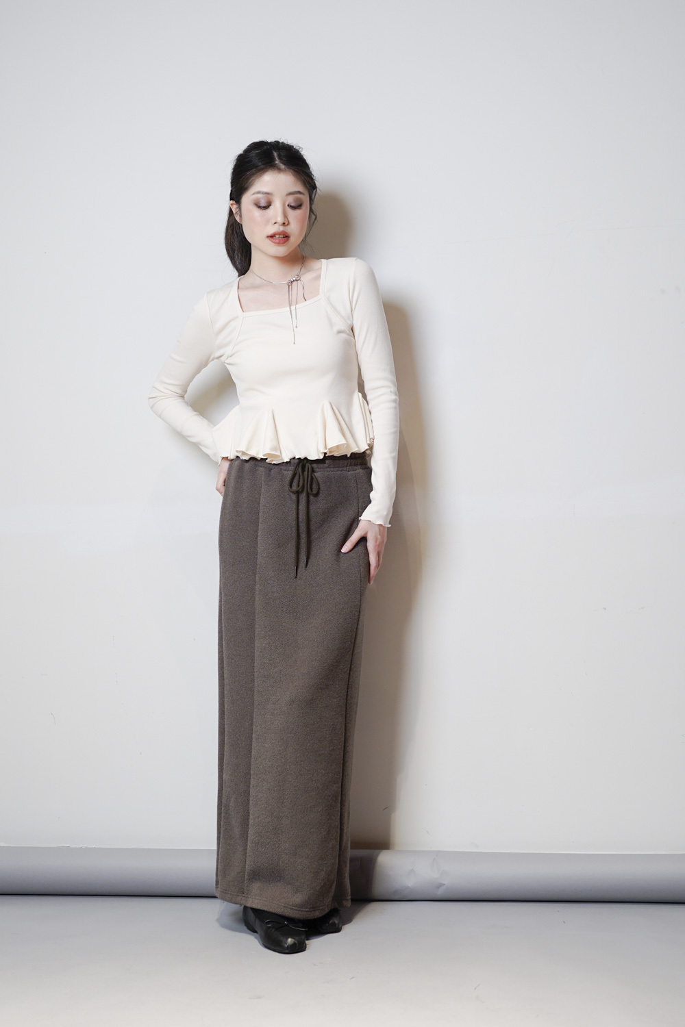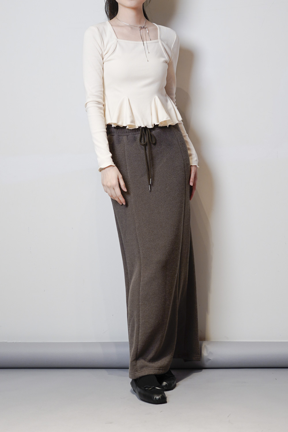 cotton relax long susu skirt (BEIGE/ BLACK)