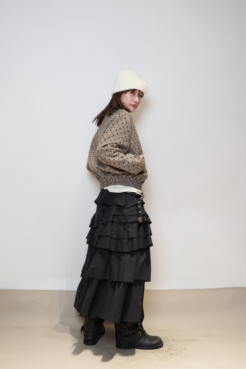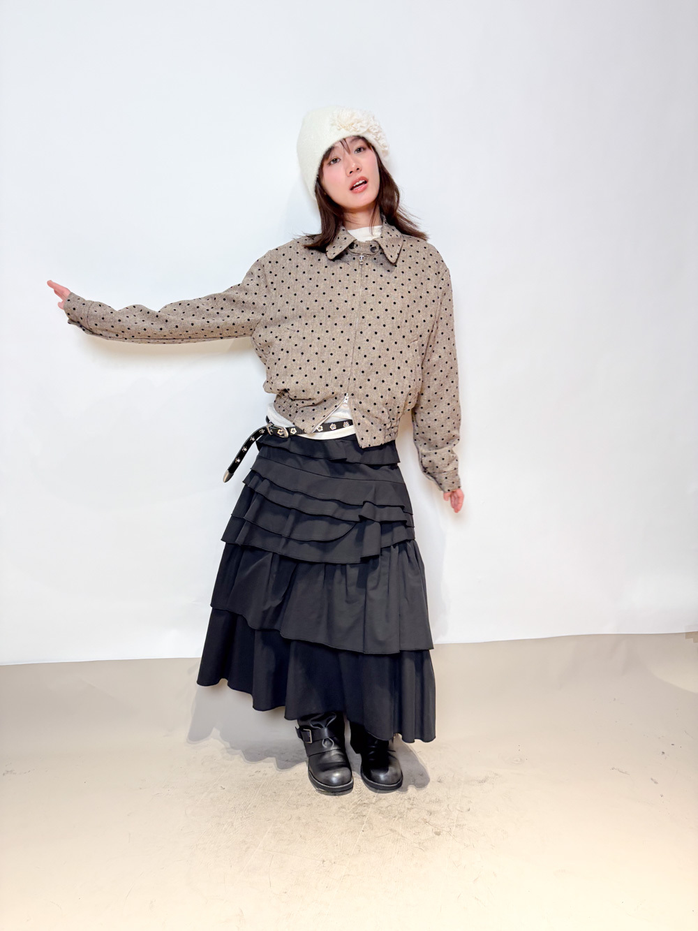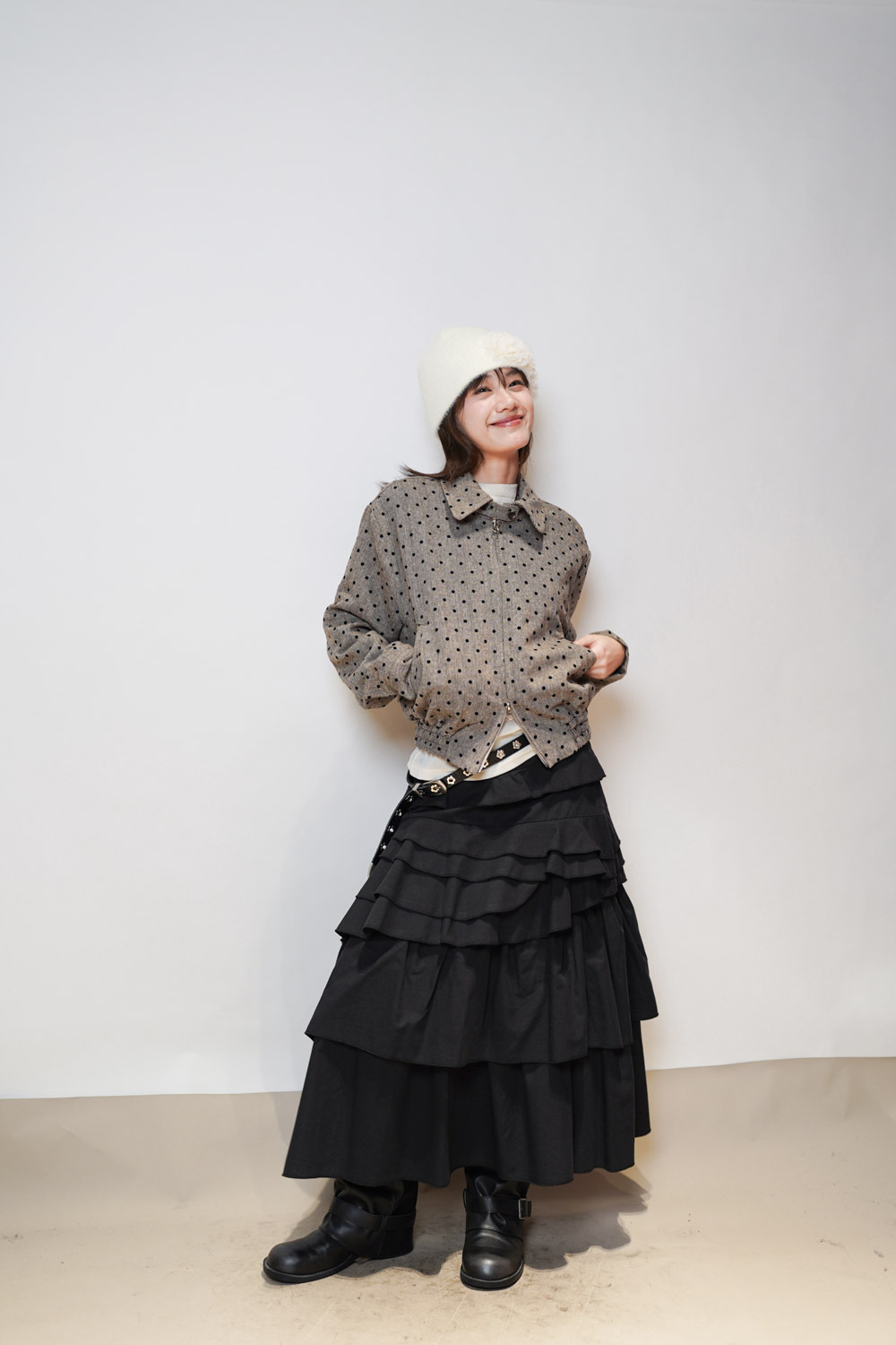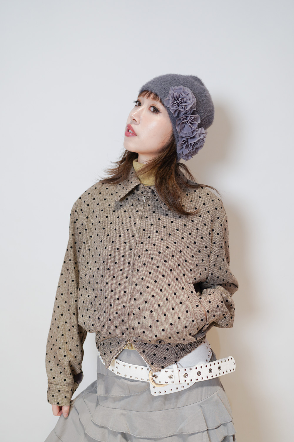 Happy price~Dotted tweed jacket (BEIGE/GREY)