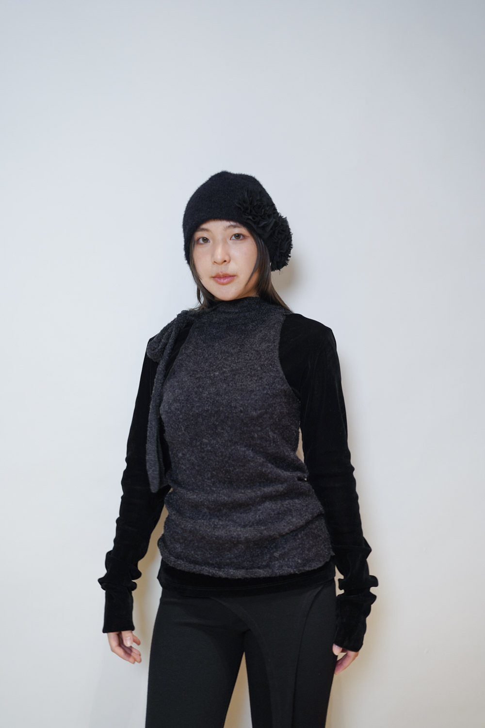 forever knit vest (IVORY/BLACK)