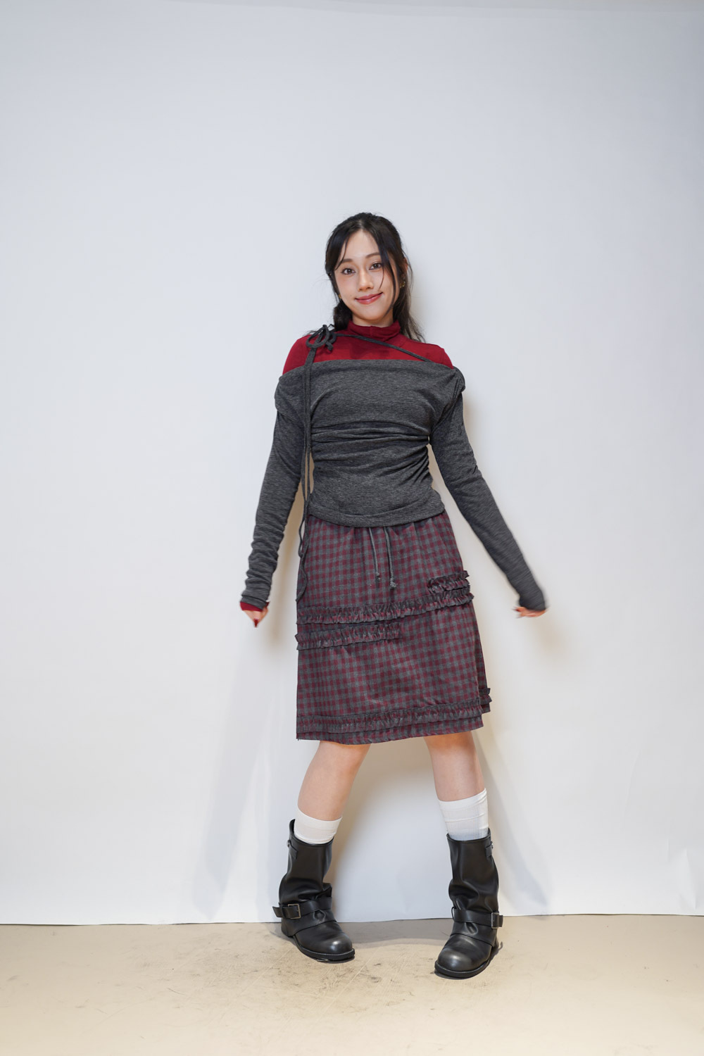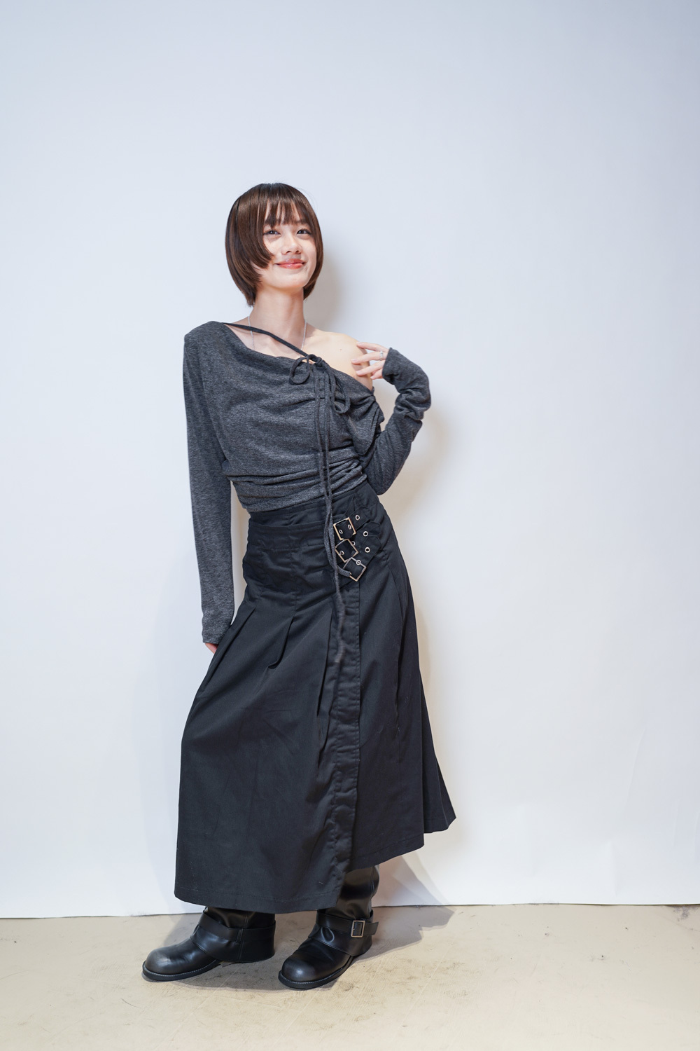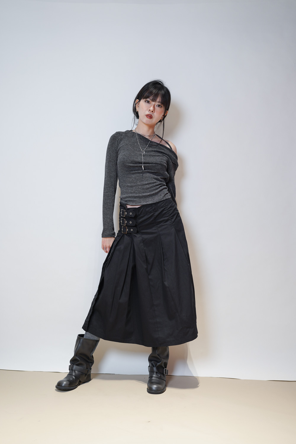 側邊修腰打摺設計 /