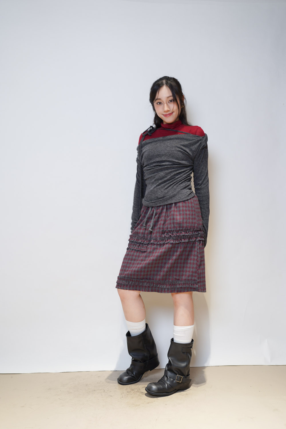Happy price~front ribbon goddess top (WHITE/ GREY)