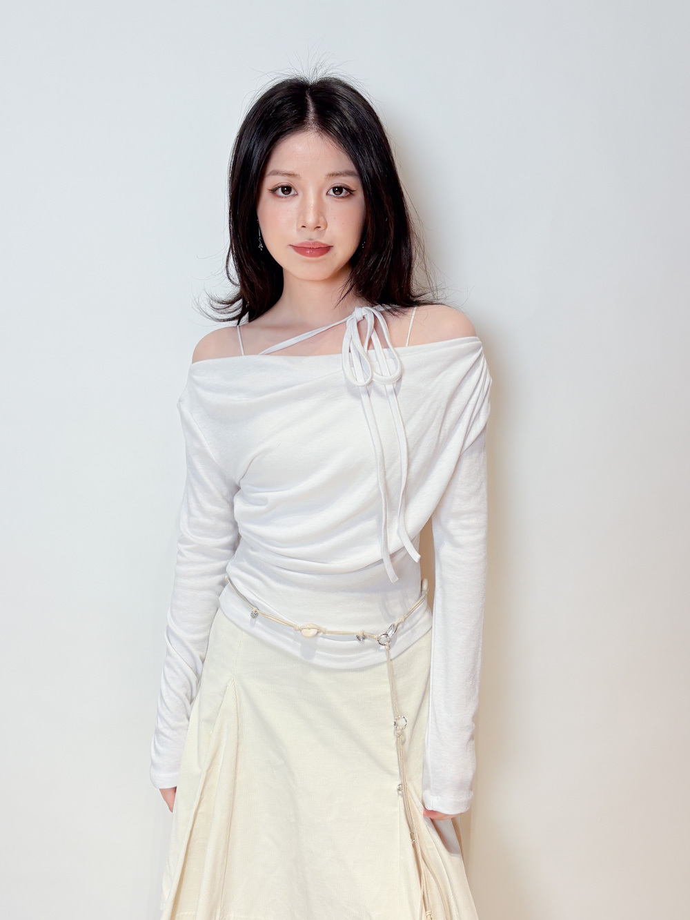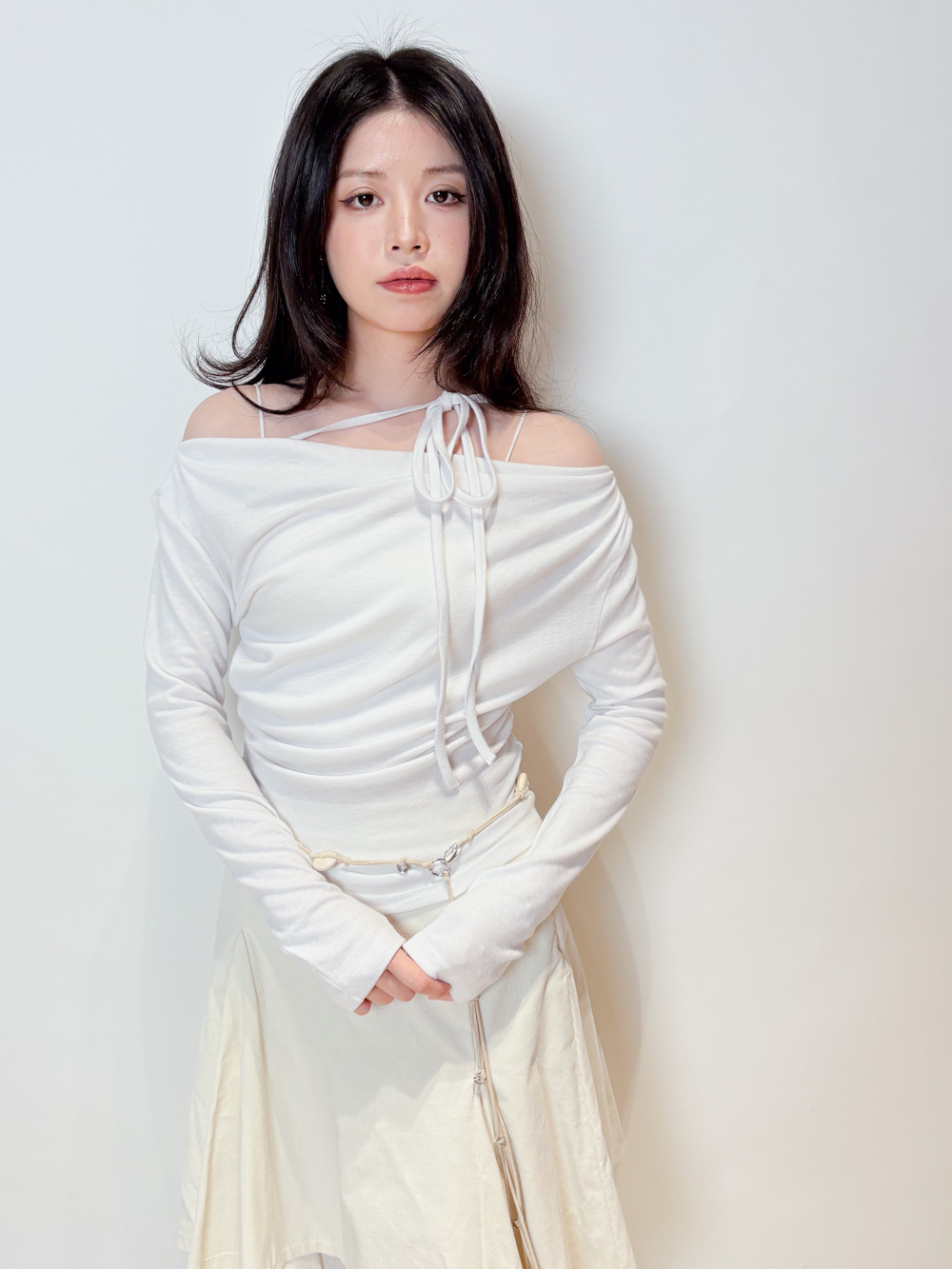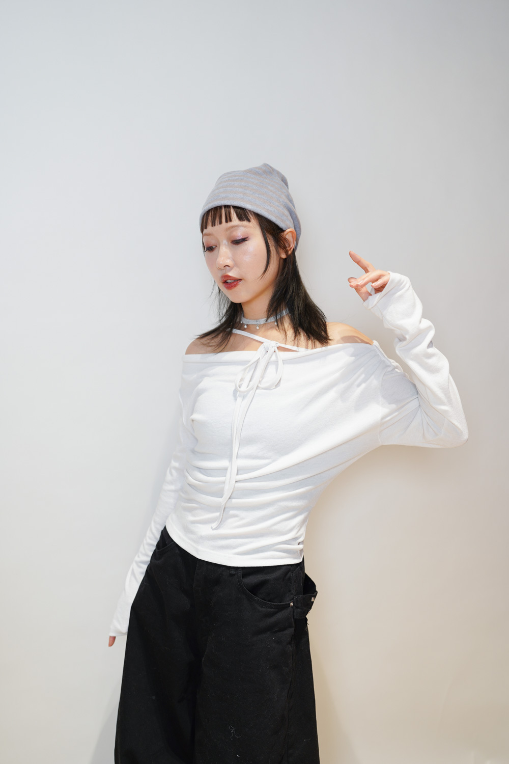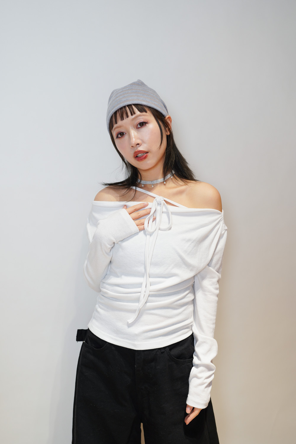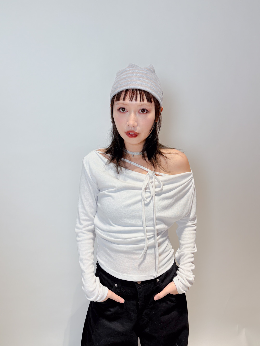 Happy price~front ribbon goddess top (WHITE/ GREY)