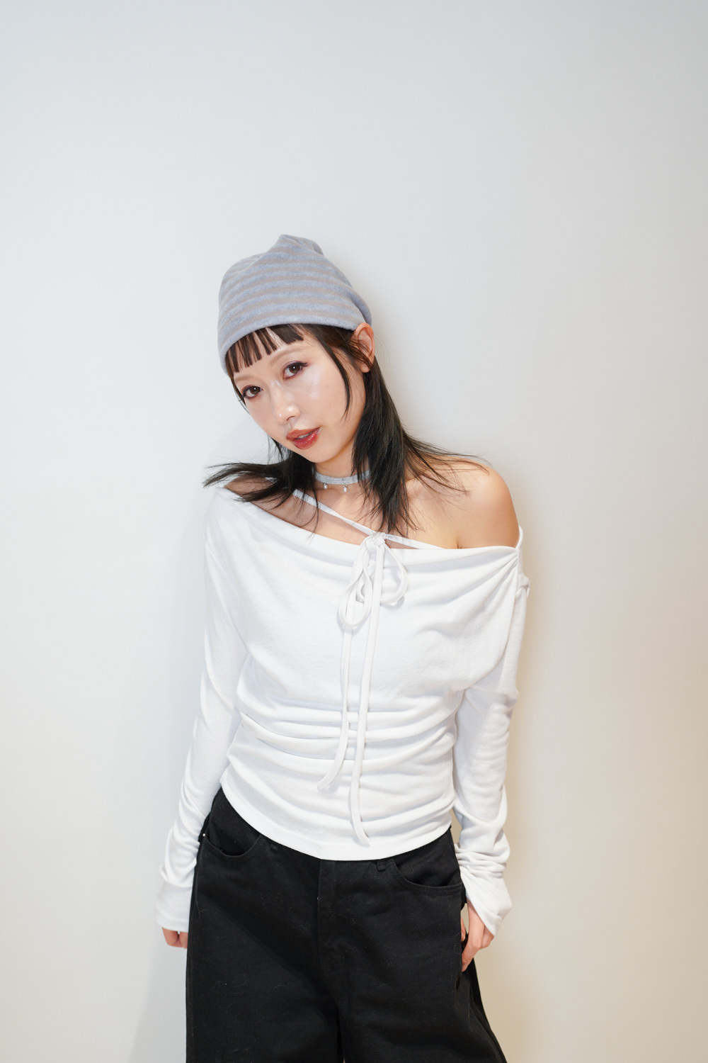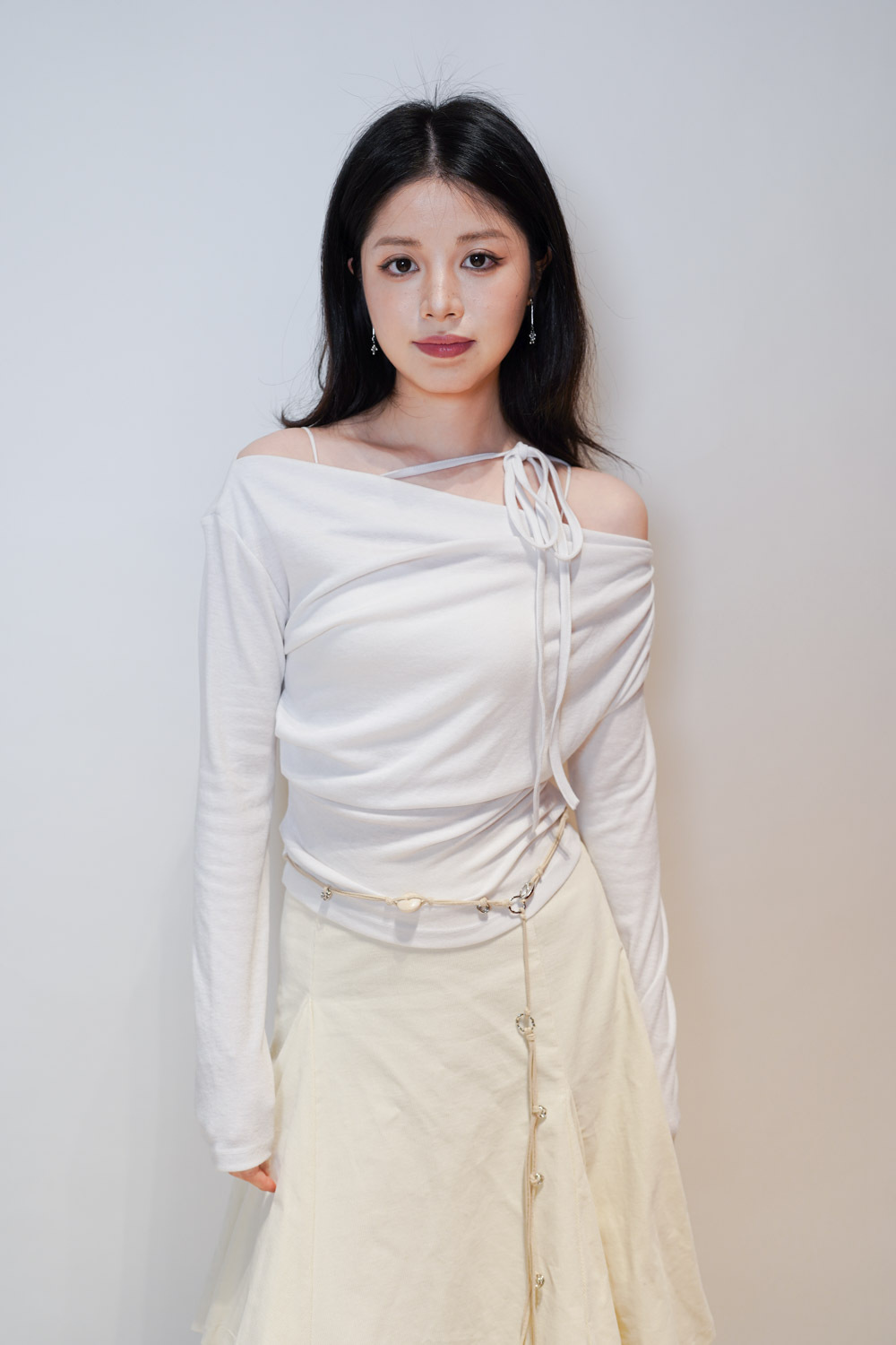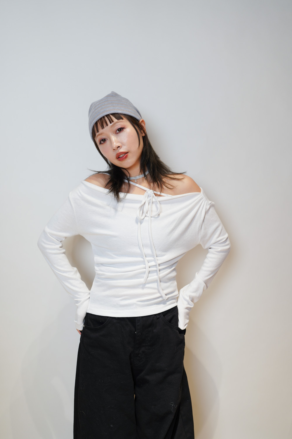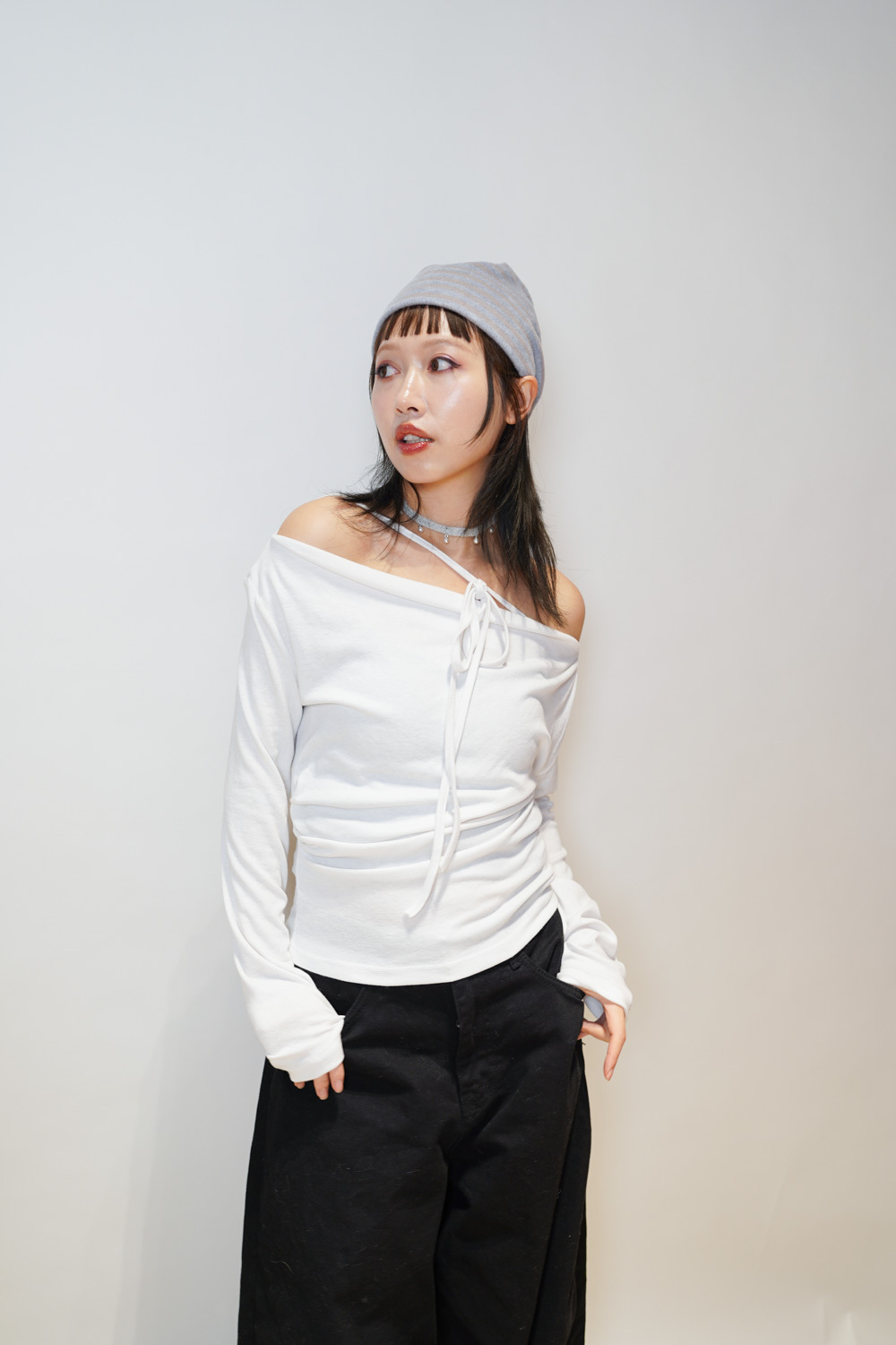 Happy price~front ribbon goddess top (WHITE/ GREY)