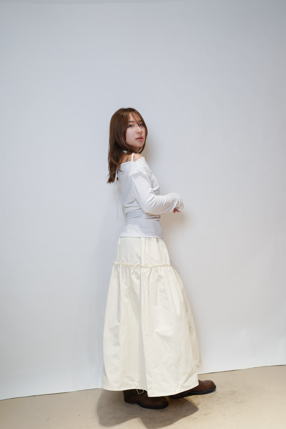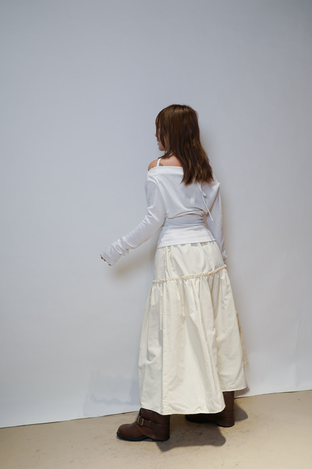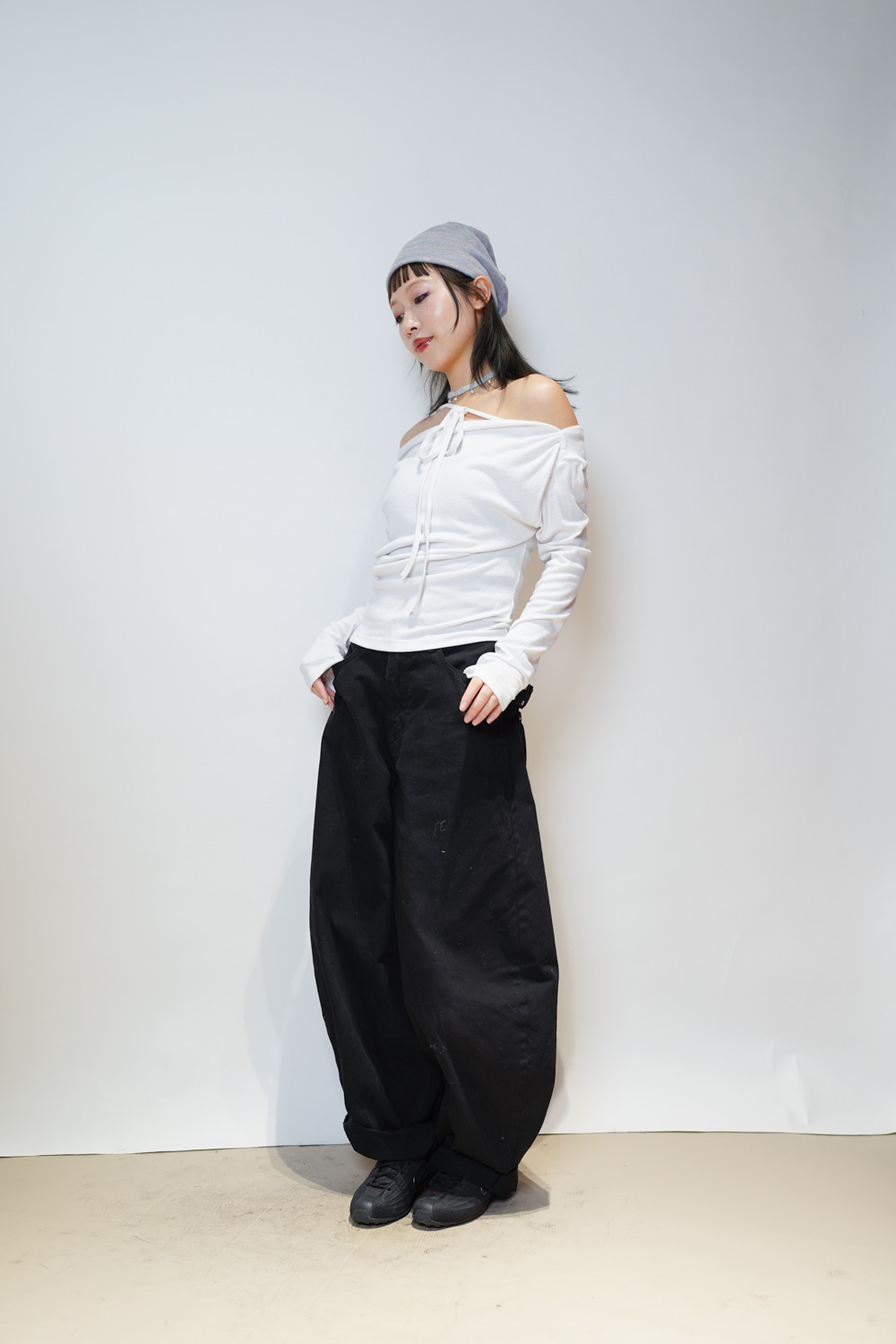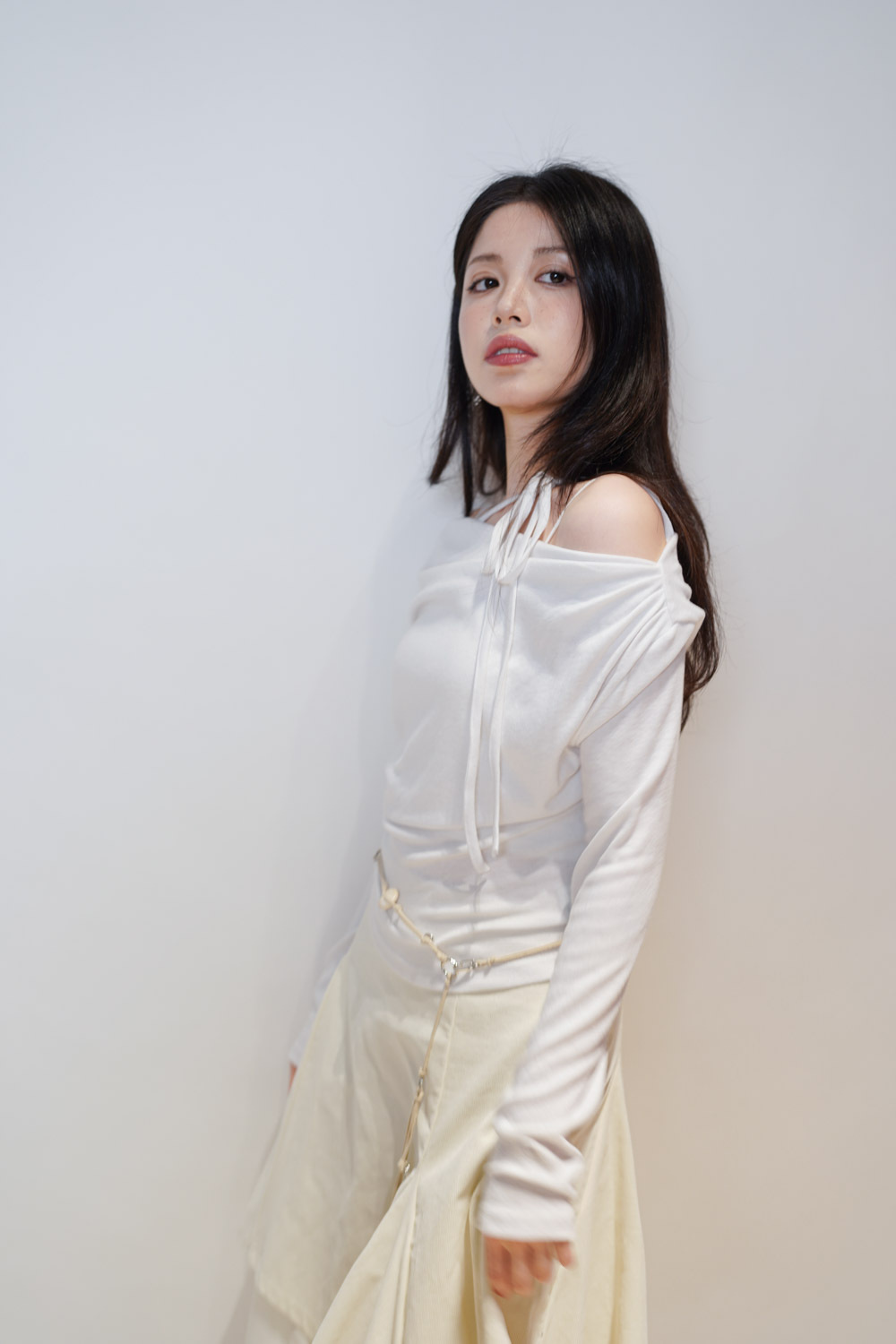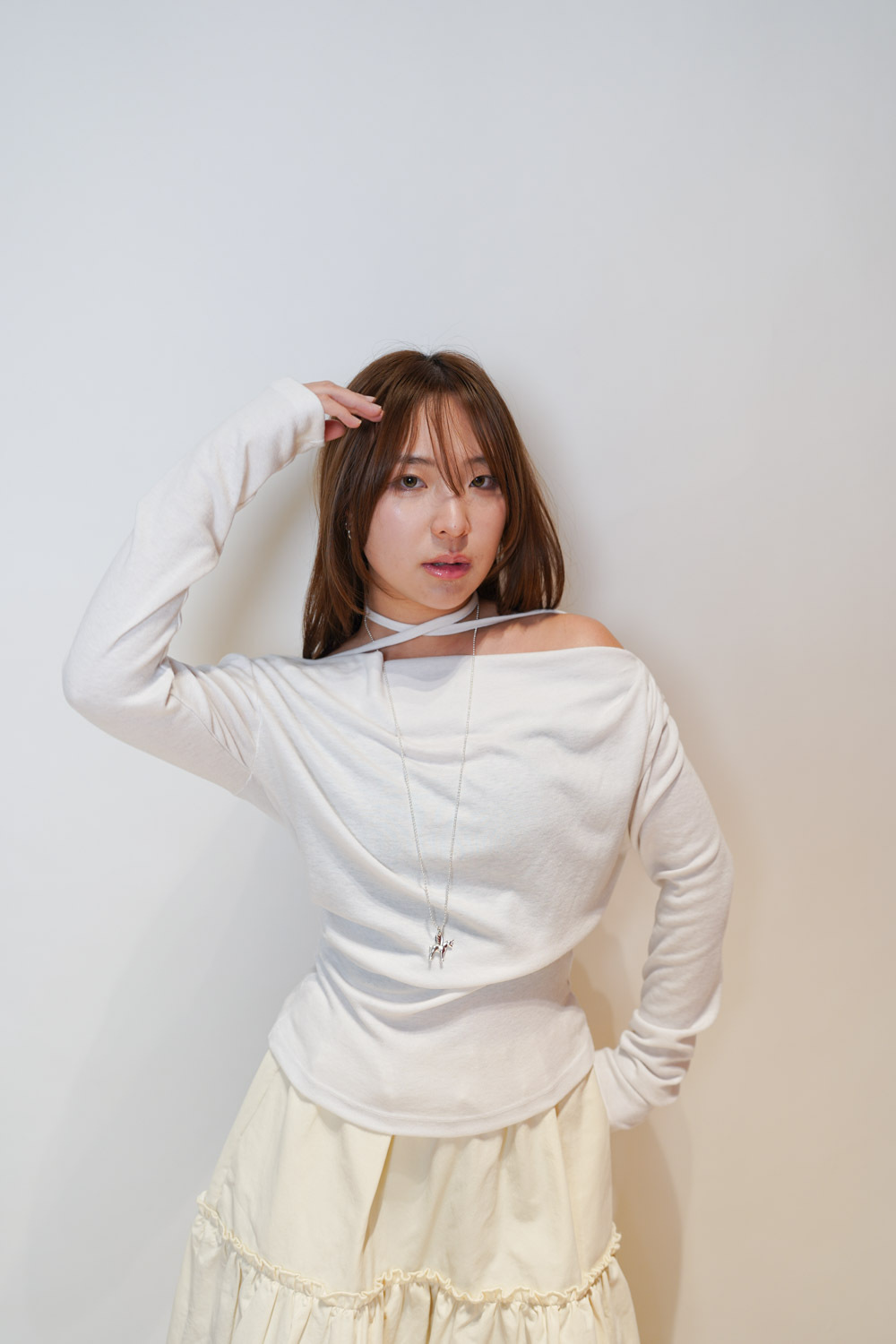 Happy price~front ribbon goddess top (WHITE/ GREY)