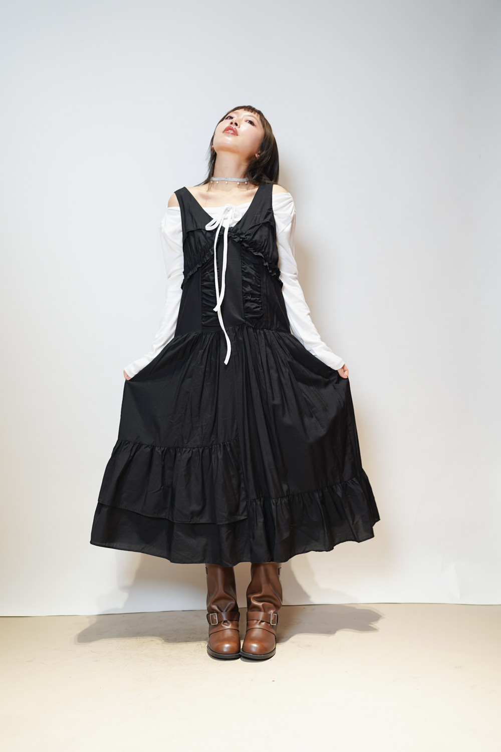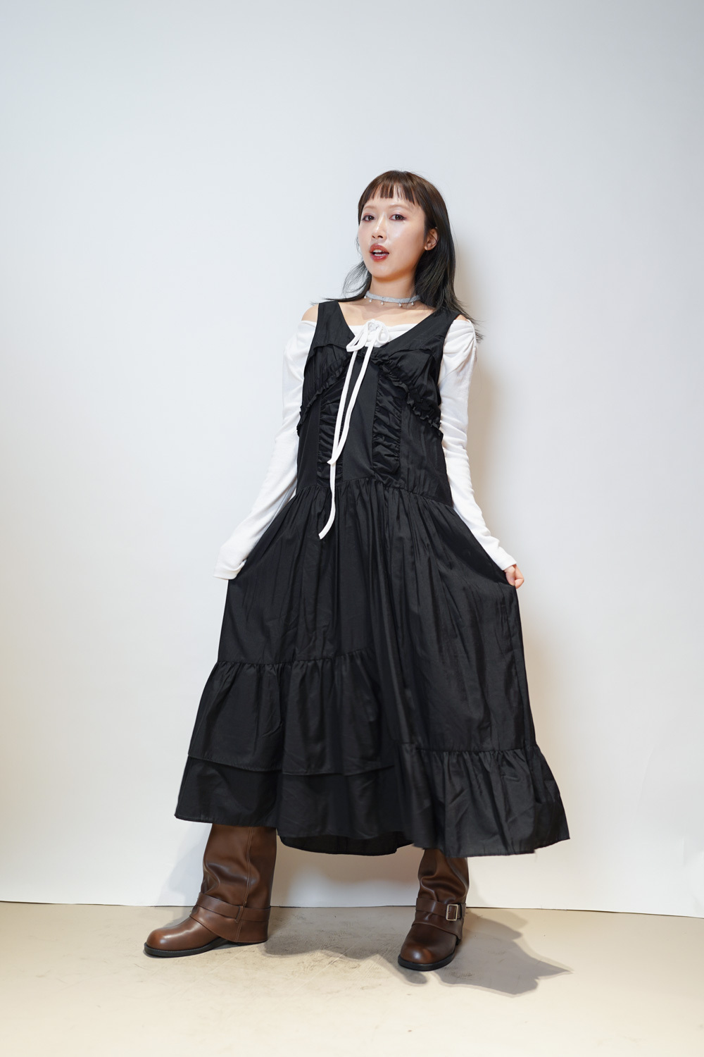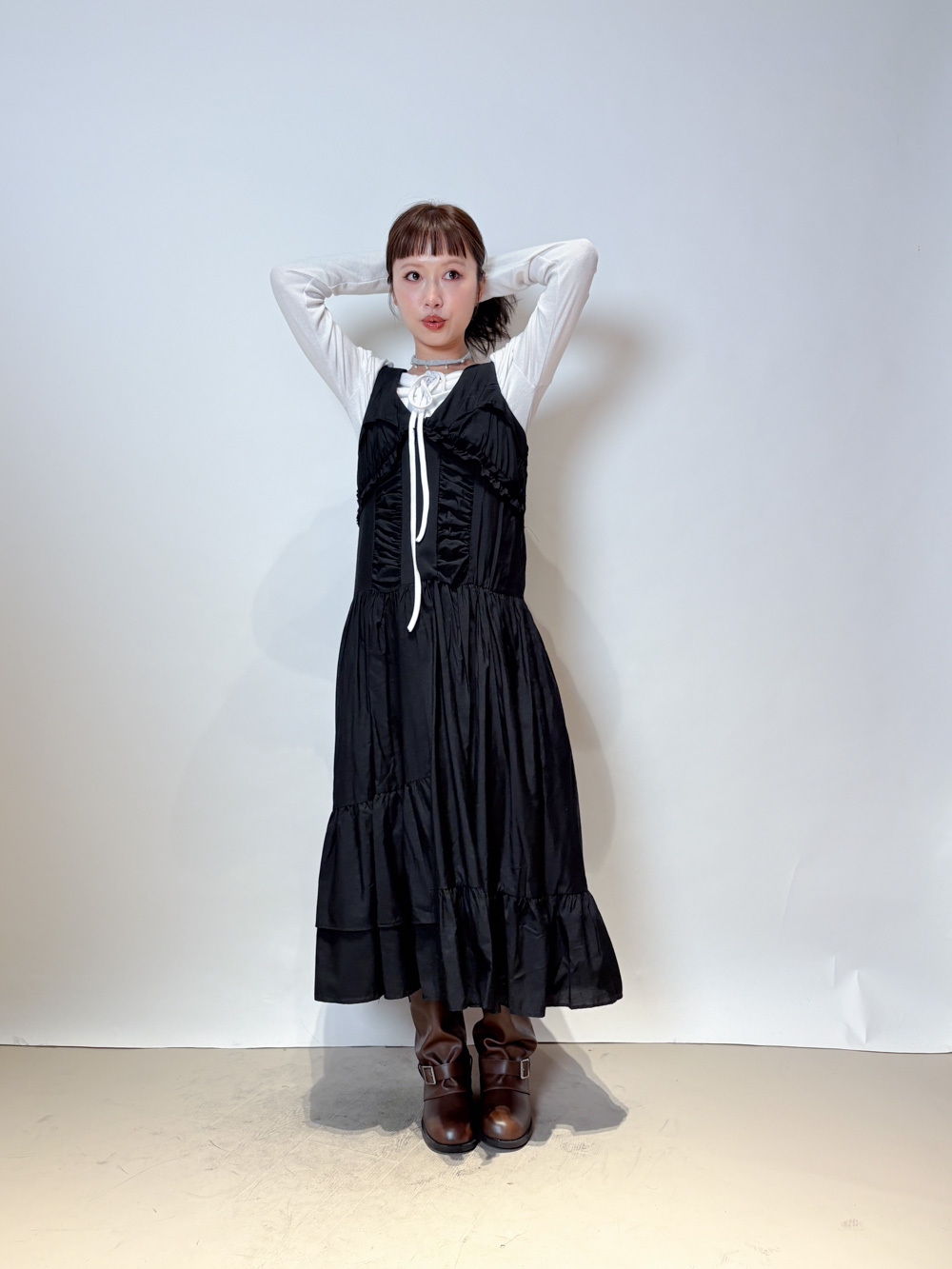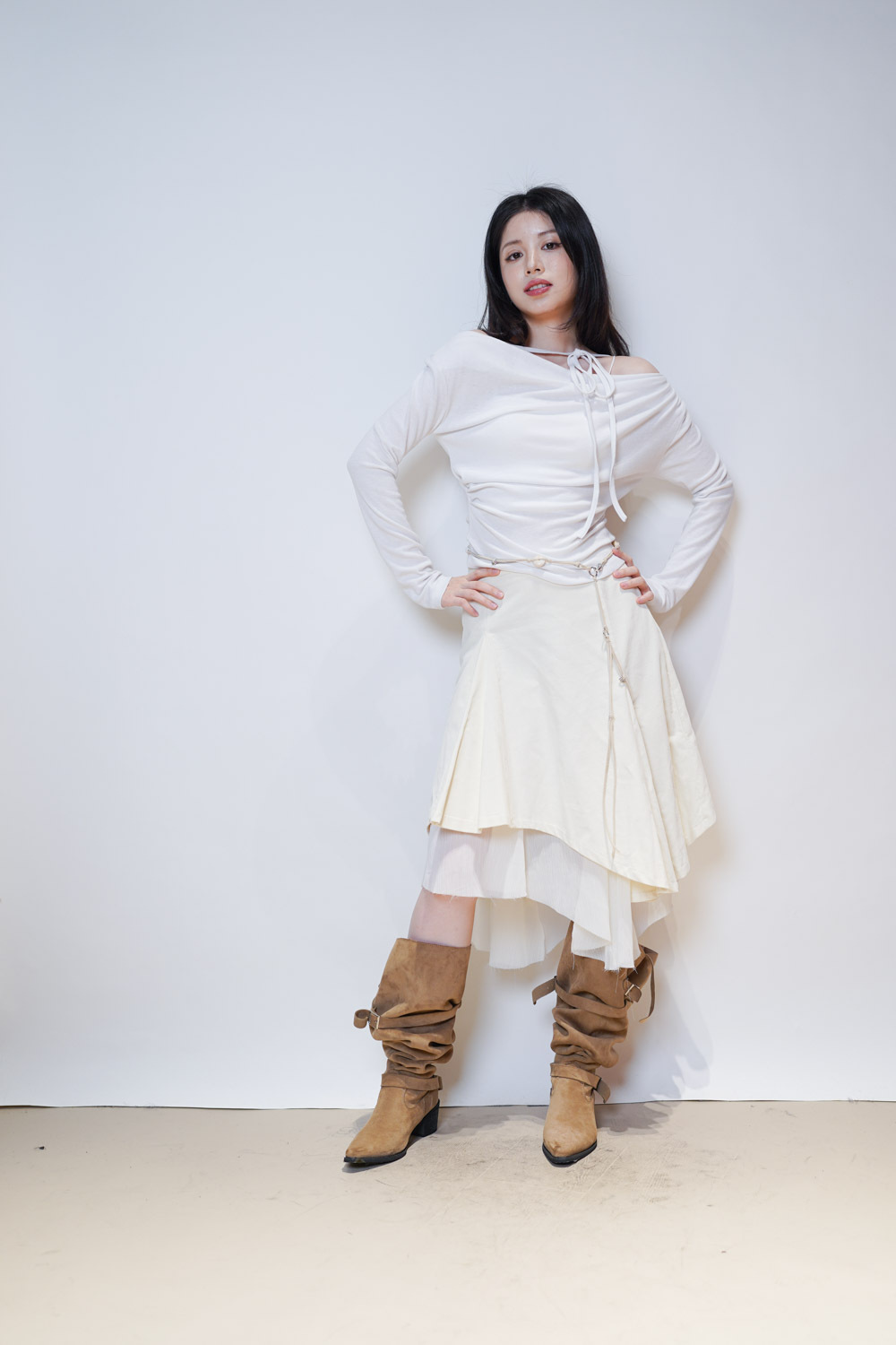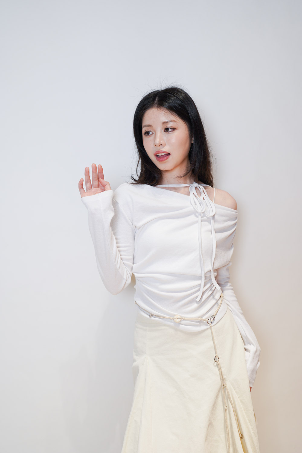 Happy price~front ribbon goddess top (WHITE/ GREY)